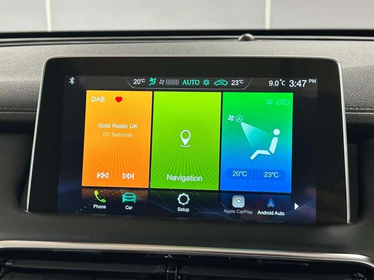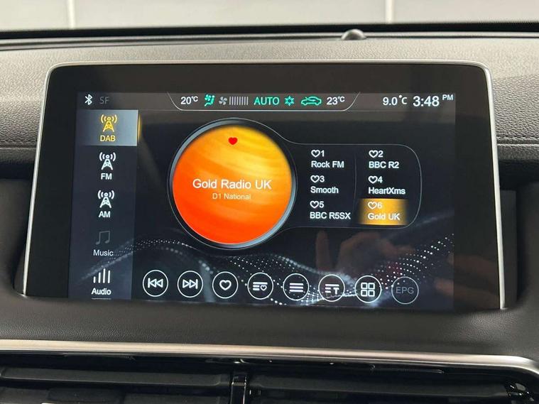 10.1" colour touchscreen, 12.3" Full digital driver information display, Adaptive cruise control, Android Auto, Apple CarPlay, Blind Spot Detection (BAS), Bluetooth connectivity, Driving modes, Emergency call service, Intelligent speed assist, Lane keep assist system (LAS) with Lane departure warning system (LDWS), PAS, Power tailgate, Rear cross traffic alert, Rear parking camera, Rear parking sensors, Satellite navigation system, Traffic jam assist, Trip computer, USB mobile phone charging function, 6 speaker audio system, DAB audio, Auto dimming rear view mirror, Automatic headlights, Body colour electric adjustable heated door mirrors, Electric folding door mirrors, Follow me home headlights, Front and rear aero wiper, Front and rear electric windows with one-touch up/down, Front fog lights, Intelligent high beam, LED Bi-Function headlights, LED centre brake light, LED daytime running lights, LED front and rear sequential indicators, Panoramic sky roof, Rain sensing wipers, Rear side wing doors, Silver roof rails, 12V power sockets, 2nd row 60/40 split fold seat, 2nd row seat with 2 stage incline adjustment, 3 rear headrests, 3 seat bench in 2nd row, 4 way electric adjustable passenger seat, 6 way electric adjustable drivers seat + lumbar support, Ambient lighting, Dual zone automatic air conditioning, Front centre sliding armrest with storage compartment, Front headrests, Heated front seats, Height and reach adjustable steering wheel, ISOFIX restraints on outer rear seats x2, Leather steering wheel, Metal sports pedals, Single passenger seat, Sports Style Front Seats with One-Piece Back, Steering wheel paddle shift, 3x3 point rear seatbelts, ABS/EBD, Active emergency braking with pedestrian/Bicycle detection, Anti rolling protection, Cornering brake control (CBC), Driver, passenger and 2nd row rear seat belt reminder, Dual front airbags, Electric parking brake with auto hold function, ESP, Front passenger airbag deactivation switch, Front seat belt height adjuster, Front seatbelts (3-point + pretensioner + load limiter), Front side airbags, Hill descent control, Hill launch assist, Manual rear child locks, Rear outer seatbelt pretensioner and load limiter, Side curtain airbags, Tyre pressure monitoring system, Alarm system and engine immobiliser, Keyless entry and push button start system, Remote central locking, Speed sensing door locks, 18" Hurricane diamond cut alloy wheels, Tyre repair kit,