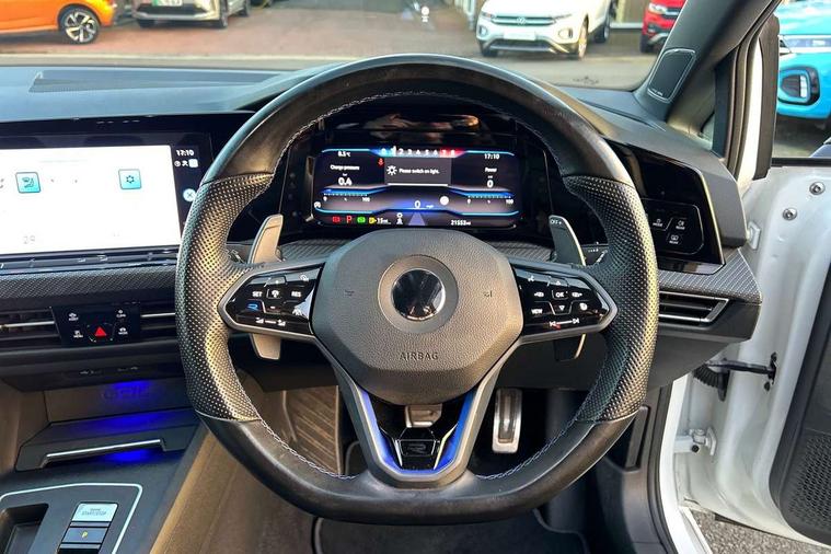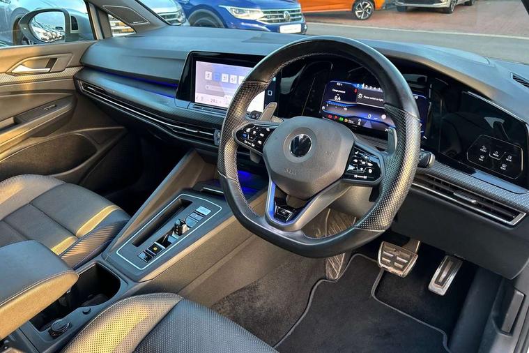 Adaptive cruise control (ACC) with speed limiter and front assist (reacting to vehicles pedestrians and cyclists), Car2X communication, Digital cockpit pro - 10.25" high resolution TFT dash display screen with customizable menus and information, Driver alert system, Driver profile selection, Dynamic road sign display, eCall - Emergency call service for SOS calls to emergency response, Lane assist, Lane change assistant, Mobile phone interface with wireless inductive charging function, Progressive steering, Speedo, rev counter, electronic odometer, trip, service interval display, exterior temperature and fuel gauge, Start/Stop function, Travel assist with emergency side assist with electrically foldable door mirrors, Warning buzzer and light for front seatbelts unfastened, Wireless app connect, 4Motion 4 wheel driver, Front differential lock, Petrol Particulate Filter, XDS electronic differential lock for improved traction and handling, Premium USB cable in choice of either Apple or Android smartphone compatibility, Ambient lighting, exterior illuminated styling elements at the sides, Auto dimming rear view mirror, Automatic headlamp activation with Coming home and Leaving home feature, Body colour bumpers, Body colour door handles, Body colour rear roof spoiler, Front and rear electric windows, Heat insulating glass windscreen, Heated rear windscreen, High level 3rd brake light, Highway light, Illuminated front grille, IQ.Light - LED Matrix headlights, dynamic headlight control with advanced high beam control matrix dipped main beam + LED DRL + 22 LED lights, LED front fog lights with 5 honeycomb design, LED License plate illumination, LED rear combination lamp inlcuding dynamic turn signal, Matt chrome effect door mirrors with integrated indicators, Rain sensor, Rear fog light on one side and reversing lights on both sides, Rear tinted glass 65% light absorbing from B pillar backwards, Rear windscreen washer and wiper with interval delay, Remote electrically heated, adjustable and foldable door mirrors, including door mirror puddle lights and reverse activated kerb-view adjustment on pa, Welcome light, 12V socket in front centre console, 12V socket in luggage compartment, 3 rear head restraints, 3 zone climate with controls in the rear, Aluminium gear knob, Ambient lighting - Customisable 30 colour ambient lighting, Black roof lining, Brushed stainless steel pedals, Centre console, Chrome plated surround to electric mirror button, window switch and air vent surrounds, Drivers and front passengers sun visors with vanity mirrors, Front + rear carpet mats, Front centre armrest with storage compartment, Front cupholders x 2, Front reading lights x 2 incorporating LED technology, Front seat lumbar support adjuster, Front sports seats, Glovebox, Height adjustable front seats, Height and reach adjustable steering wheel, Isofix child seat preparation for 2 rear child seats and front passenger seat, Luggage compartment lighting, R leather wrapped multi function sports heated steering wheel with extended paddle shift, Removable luggage compartment cover, Split folding backrest with centre armrest and unsplit rear seat bench, Woven fabric storage compartments in front and rear doors, R styling pack - Golf, 3 point height adj front seatbelts + pretensioners, 3 rear three point seatbelts, ABS, Blue brake callipers in front with R logo, Driver and front passenger airbag with front passenger airbag deactivation, Drivers and front passengers safety optimised head restraints, Electronic parking brake with auto hold, ESC (Electronic Stability Control), Extended pedestrian protection measures, Front and rear passengers curtain airbag system including front side airbags, Front disc brakes, Rear disc brakes, Two tone horn, Tyre pressure monitoring system, Alarm with interior protection and deactivation via infotainment system, Electronic engine immobiliser, Keyless entry with start/stop button on centre console, Black metal chrome decorative inserts in dash and front door trim panels, Soul dashboard, Tyre mobility kit Includes 12V compressor and tyre sealant,