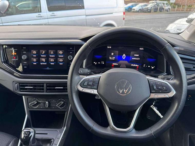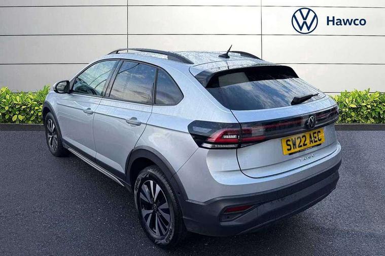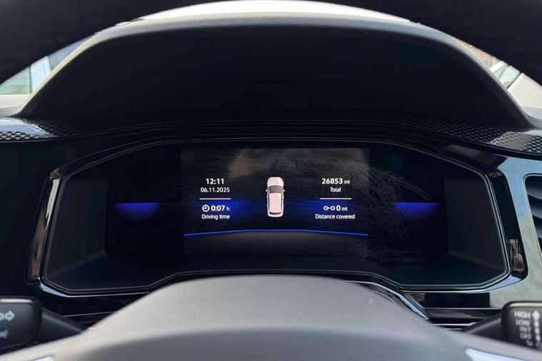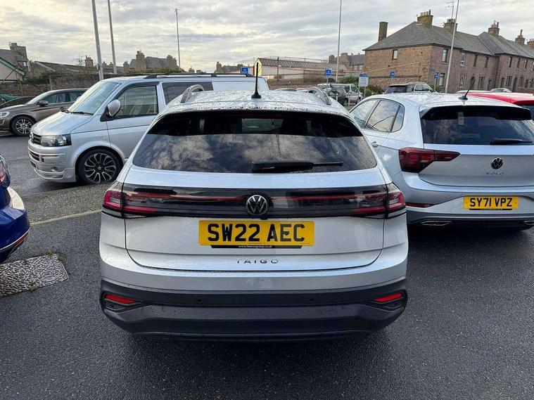 App-Connect including App-Connect Wireless, Driver alert system, e-Call (emergency call), Power Steering, Travel assist including emergency assist, Washer fluid level indicator, Wireless Charging including Bluetooth, Start-stop system with battery regeneration (recuperation - energy recovery during braking), Digital radio reception (DAB+), Diversity antenna for FM reception, WeConnect plus, Ambient lighting with logo projection, Aspherical driver's exterior mirror, Auto headlights, Body coloured bumpers, Body coloured exterior mirror housings and door handles, Electric windows, External USB type C socket and charging sockets, Front fog lamps with cornering function, Headlight range control, Heat insulating glass windscreen, LED headlamps, LED rear combination lamp, LED third brake light, Left convex exterior mirror, Power folding adjustable/heated exterior mirrors and front passenger exterior mirror lowering function, Rear fog light on one side, reversing light on both sides, Rear side wing doors, Rear wash/wipe with intermittent wipe setting, 'Slash/ Austin' Cloth upholstery, 12V socket in centre console, 2 front reading lights, 3 rear head restraints, 3 seat bench in 2nd row, Black carpets, Child seat anchor for child seat system i-Size, 2x top tether and child seat anchor in front on front passenger side, Door and side trim panels in titan black, Driver and front passenger seat height adjustment, Front centre armrest, Handbrake lever handle in leather, Height and reach adjustable steering wheel, Leather trimmed gear knob, Leather wrapped multifunction steering wheel, Luggage compartment floor, Luggage compartment light, Lumbar support for driver's and front passengers seat, Seat covers in titanium black, Single front passenger seat, Split folding backrest with centre armrest and unsplit rear seat bench, Storage compartment under front seats, Sun visors with illuminated vanity mirrors, Chrome Package - Taigo, Drivers assistance pack - Taigo, Light and Sight pack including High beam assist - Taigo, 2 x 3-point seatbelts/outer rear seats with ECE label, 3-point seat belts in front with pretensioner and height adjustment, 3-point seatbelt for centre rear seat, Driver and front passenger airbags with front passenger airbag de-activation, front side and curtain airbags, Driver and front passenger safety-optimised head restraints, Electronic stability control, Extended and predictive pedestrian/ cyclist protection, Front and rear disc brakes, Front curtain and side airbags with center airbag, Hill start assist, Manual rear child locks, Single tone horn, Tyre pressure loss indicator, Anti-theft alarm system with interior monitoring, backup horn, and towing protection, Anti-theft wheel bolts, Lava stone black gloss/matt decorative inserts in dash and front door panels, Low rolling resistance tyres,