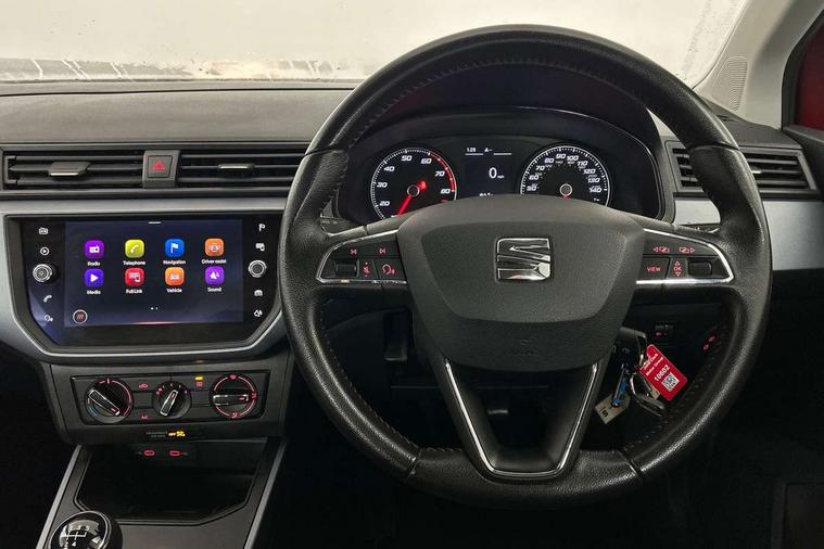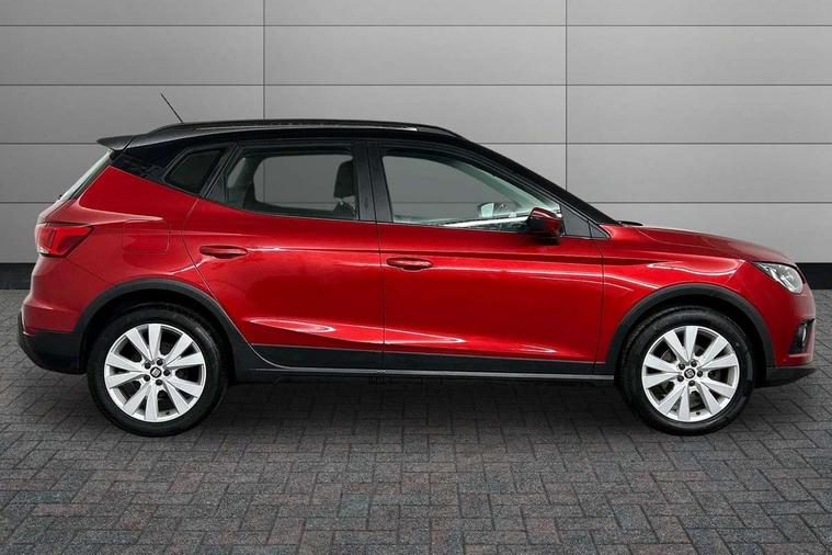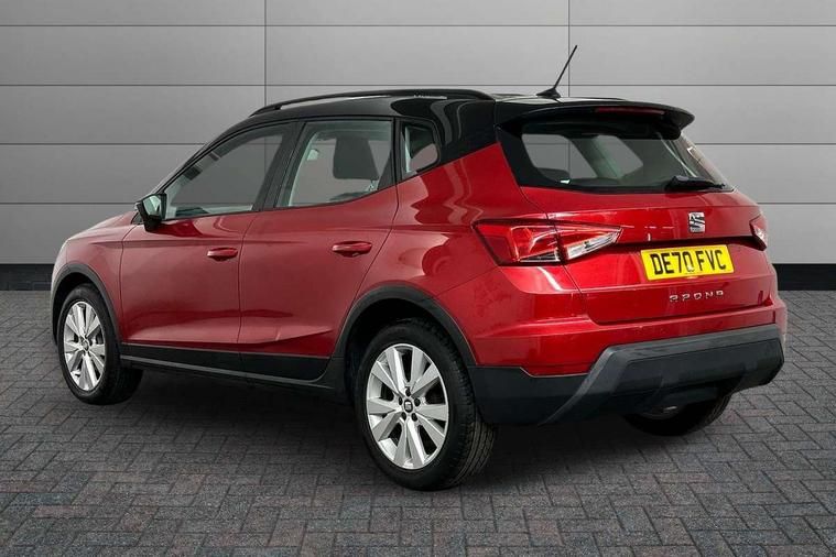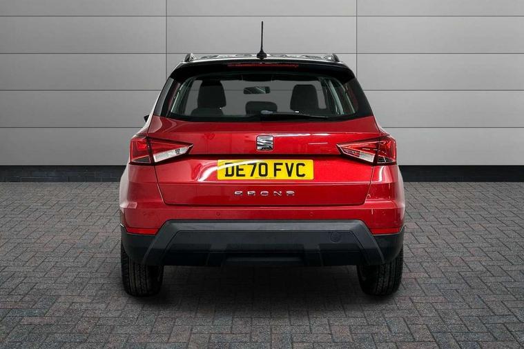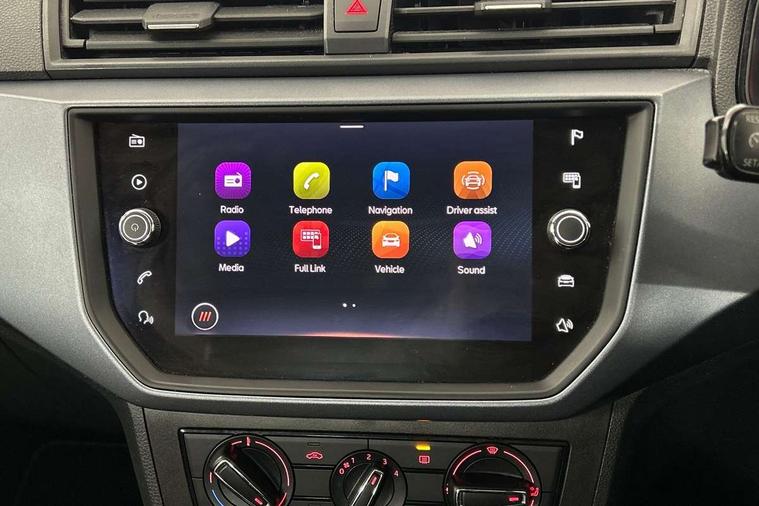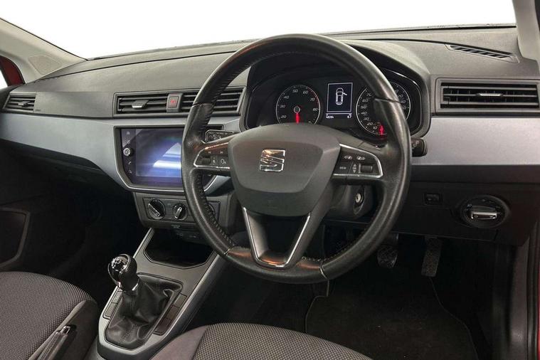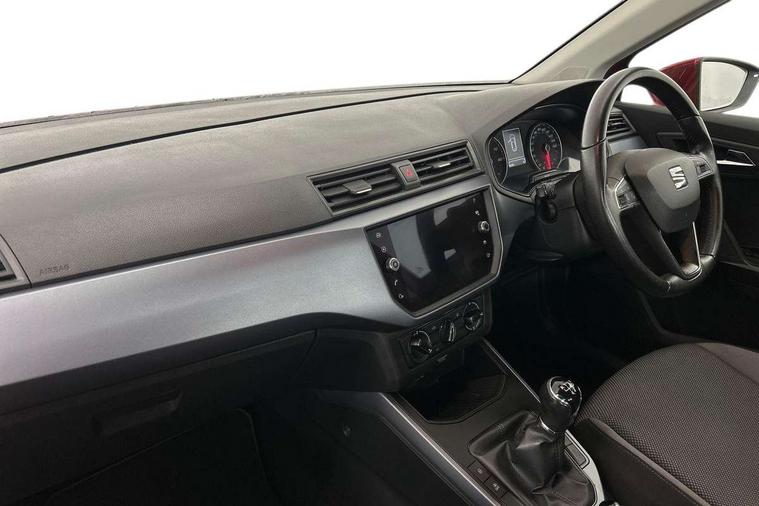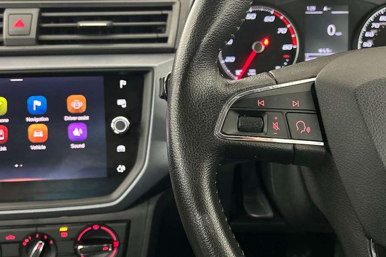Interior chrome line trim, Plastic grey dashboard, Connectivity pack plus - Arona, Interior chrome pack - Arona, 17" Dynamic alloy wheels, 2 folding remote keys with window open/close function, Electronic engine immobiliser, Locking wheel bolts, Remote central locking + deadlocks, 6 speakers, Bluetooth interface for hands free and audio streaming, DAB digital radio and AM/FM radio, Steering wheel mounted audio controls, 3 point seatbelts on all rear seats, ABS, Active front headrests, Child locks on rear doors, Driver and front passenger airbags with front passenger airbag de activation, front side and curtain airbags, Electronic stability control, Emergency Brake Assist (EBA) and front assist, Front and rear seatbelt reminder, Hill hold control, Multi-Collision braking, Tiredness recognition system, Traction control, Tyre pressure monitoring system, Anti theft roof antenna, Automatic activation of hazard warning lights, Automatic headlights, Black roof rails, Black window trims, Body coloured bumpers, Body coloured door handle inserts, Body coloured door mirrors, Dimming rear view mirror, Electric adjustable door mirrors, Electric front/rear windows with one touch/auto up/down, Electric headlight adjustment, Front fog lights with cornering function and rear fog light, Halogen tailights, Hidden exhaust pipe, LED daytime running lights, LED licence plate lighting, Protective side mouldings, Rear window wash/wipe, Twin halogen headlights, Visible VIN plate, Windshield wiper with intermittent control and potentiometer, 2 cupholders, 60/40 split folding rear seat, Air conditioning, Cloth upholstery, Double boot floor, Driver sunvisor with covered mirror + card holder, Dust/pollen filter, Front courtesy light with front reading lights, Gear shift indicator, Grey interior roof, Height adjustable front seats, Height/reach adjustable steering column, Illuminated boot, Instrument lighting with brightness control, ISOFIX points in outer rear seats with top tether anchorage points, Leather steering wheel/gear knob/handbrake, Passenger sunvisor with vanity mirror, Two front and three rear height adjustable headrests, 'Lights On' Reminder warning buzzer, Cruise control and speed limiter, Digital clock, Electric speed sensitive power steering, Full Link Smartphone Integration with Mirror Link, Apple Car Play, Google Android Auto with USB cable for Apple and Android compatibility, Low fuel warning light, Outside temperature display, Rear parking sensor, RPM counter, Seat connect with safety, service, remote and online, Trip computer, Comfort suspension,