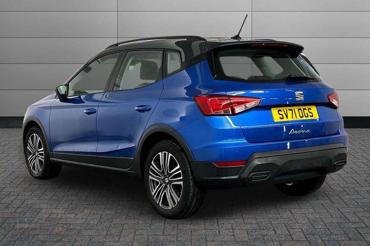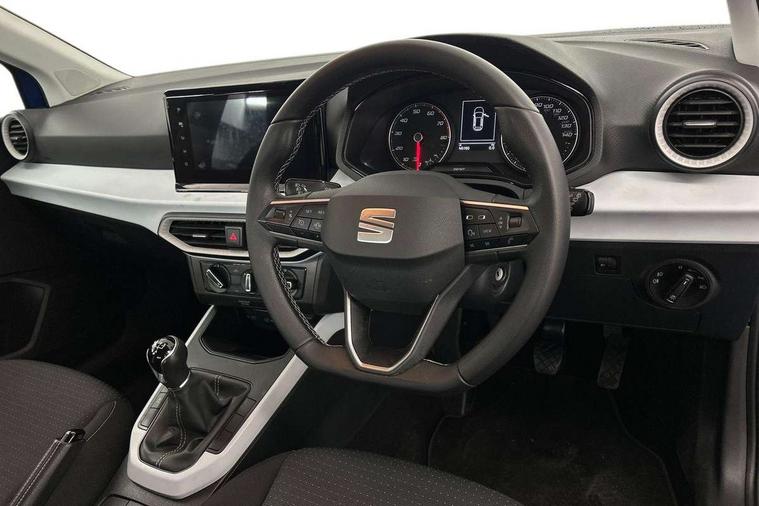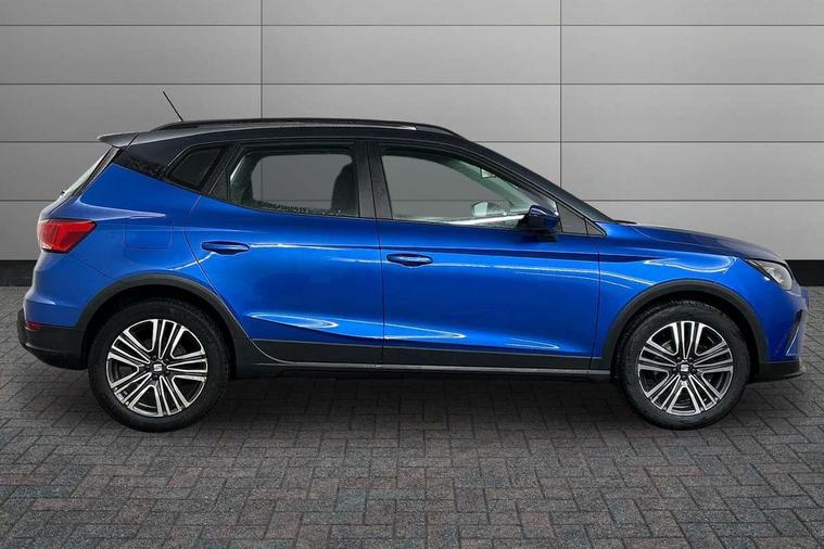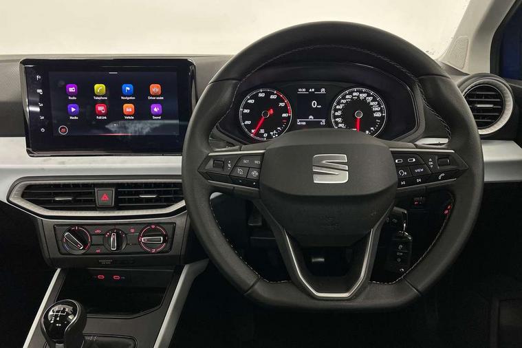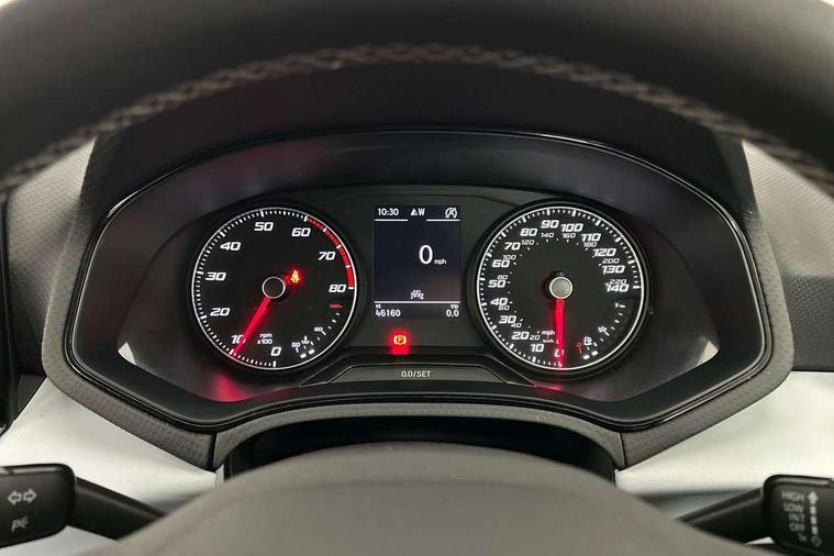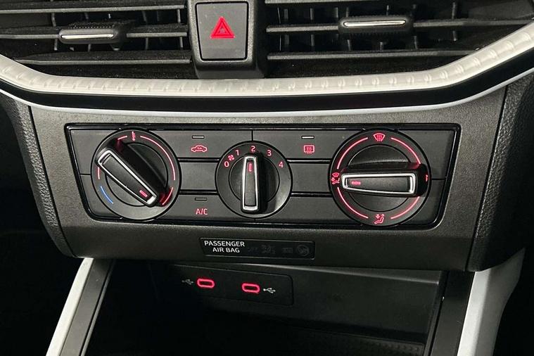 'Lights On' Reminder warning buzzer, Cruise control and speed limiter, Digital clock, Electric speed sensitive power steering, Full Link Smartphone Integration with Mirror Link, Apple Car Play, Google Android Auto with USB Type C cable for Apple and Android compatibility, Lane keeping system, Low fuel warning light, Outside temperature display, Rear parking sensor, RPM counter, Seat connect with safety, service, remote and online, Trip computer, Bluetooth interface for hands free and audio streaming, DAB digital radio and AM/FM radio, Steering wheel mounted audio controls, Anti theft roof antenna, Automatic activation of hazard warning lights, Black roof rails and window surrounds, Black window trims, Body coloured bumpers, Body coloured door handle inserts, Body coloured door mirrors, Dimming rear view mirror, ECO LED automatic headlights and LED daytime running lights, Electric adjustable door mirrors, Electric front/rear windows, Hidden exhaust pipe, Protective side mouldings, Rear spoiler, Rear window wash/wipe, Visible VIN plate, Windshield wiper with intermittent control and potentiometer, 2 cupholders, 60/40 split folding rear seat, Air conditioning, Cloth upholstery, Double boot floor, Driver sunvisor with covered mirror + card holder, Dust/pollen filter, Flat bottomed leather steering wheel/gear knob/handbrake, Front courtesy light with front reading lights, Gear shift indicator, Grey interior roof, Height adjustable front seats, Height/reach adjustable steering column, Honey mustatd coloured air vent, Illuminated boot, Instrument lighting with brightness control, ISOFIX points in outer rear seats with top tether anchorage points, Passenger sunvisor with vanity mirror, Two front and three rear height adjustable headrests, Connectivity pack plus - Arona, Interior chrome pack - Arona, 3 point seatbelts on all rear seats, ABS, Active front headrests, Child locks on rear doors, Driver and front passenger airbags with front passenger airbag de activation, front side and curtain airbags, Electronic stability control, Emergency Brake Assist (EBA) and front assist, Front and rear seatbelt reminder, Hill hold control, Multi-Collision braking, Tiredness recognition system, Traction control, Tyre pressure monitoring system, Electronic engine immobiliser, Locking wheel bolts, Remote central locking + deadlocks, Titan black dashboard, 17" Dynamic machined alloy wheels,