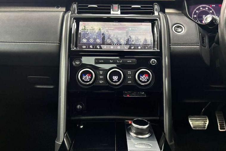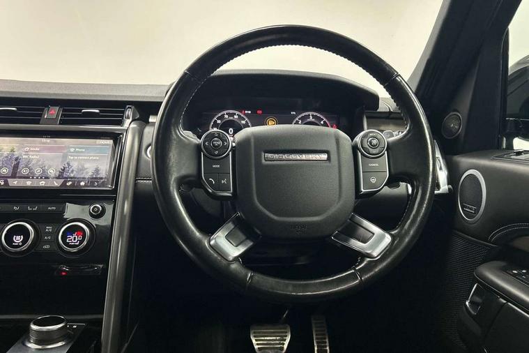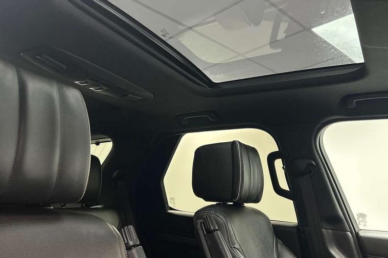 Bluetooth telephone connectivity, Front camera system, Gesture tailgate, InControl Touch navigation pro, Interactive Driver display instrument cluster, PAS, Pro services and wifi hotspot, Service interval indicator, Speed limiter, Surround camera system, Traffic sign recognition, Trip computer, Dynamic stability control, Electronic air suspension, 2 USB charging points in 2nd row, 2 USB charging points in 3rd row, Audio remote control, DAB Digital radio, InControl app, InControl protect, Meridian surround sound system with 16 speakers + subwoofer, radio/CD/DVD and voice recognition, Rear seat entertainment, Steering wheel mounted controls, USB/iPod connection, Auto dimming door mirrors, Auto dimming rear view mirror, Automatic headlamp levelling, Automatic headlights with follow me home lights, Body colour bumpers, Bright sill plates, Door mirror memory, Electric adjustable/heated/folding door mirrors + puddle lights, Electric front windows, Front fog lights, Headlight washers, Heated washer jets, Heated windscreen, High beam assistant, Rear electric windows, Signature Hi-line tail lights, 16 way driver/passenger electrically adjustable seats with memory, 4 zone climate control, Customer configurable interior mood lighting, Door bins, Electric 3rd row seats, Electric adjustable steering column, Electric front headrests, Fascia storage compartment, Front armrest, Front passenger seat isofix location point, Front winged headrests, Heated steering wheel, Intellignet power seat folding, Isofix rear child seat fastenings, Leather steering wheel, Loadspace cover, Premium carpet mats, Rear headrests, Row 3 reading lights, Shopping hook, Slide/recline 2nd row seats, Twin front cupholders, Upper glovebox, Windsor leather upholstery, Extended leather pack - Discovery, 3x3 point rear seatbelts, ABS, Autonomous emergency braking, Curtain airbags, Driver and passenger airbags, ESP, Hill descent control, Hill launch assist, Rear airbags, Side airbags, Traction control, Tyre pressure monitoring system, Anti theft alarm system, Immobiliser, Keyless entry, Locking wheel nuts, Remote central locking,
