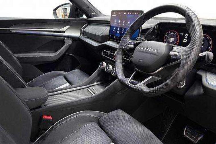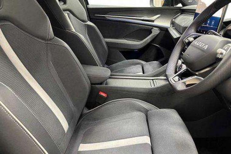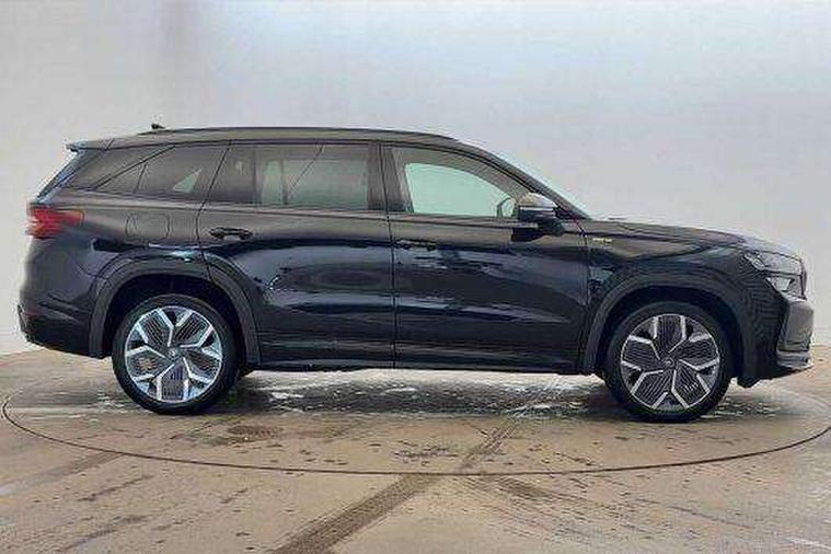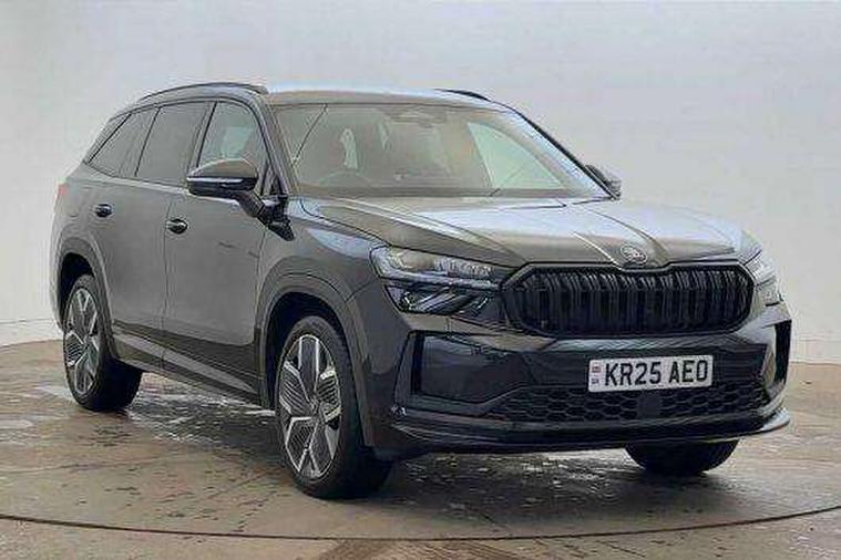 13" satellite navigation touchscreen display, Blind spot detection with door exit warning, Bluetooth system, ChatGPT functionality, Driver alert - Fatigue and drowsiness monitor, Dry display cleaner, Emergency call, Front and rear parking sensors, Front cross traffic assist, Lane assist, Off road modes, PAS, Rear traffic assist, Tailgate unlocking from outside, Traffic sign recognition, USB C Port x 2 in front centre console, Virtual Cockpit - 10.25" digital display, Voice control system, Wireless charging for two smartphones (15W) with cooling function, Wireless SmartLink for Apple CarPlay and Android Auto, Stop/start function, 2x USB-C in the rear, DAB Digital radio, Aero front windscreen wipers with intermittent function, Auto dimming rear view mirror, AWL (all weather lighting) and all weather light with cornering function, Black diffuser and decorative tailpipe with a unique dark chrome finish, Black roof rails, Black sports styling including front grille and window surrounds, Black wheel arch surrounds, Body colour door handles, Cornering light and poor weather light, Electric folding /adjustable/separted heated/folding door mirrors, auto dimming with boarding sports and memory function, Electric front and rear windows, Exterior black decorative trims, Front and rear sports bumpers including lower rear chrome strip, Gloss black door mirrors, Gloss black window frame and D pillar, Heat insulating glass in windshield, Heated rear window, Ice scraper in fuel tank cap, LED daytime running lights, LED third brake light in rear spoiler, Light assistant with automatic headlight control and coming home feature, Logo projection in door mirrors, Privacy glass, Rear roof spoiler, Rear side wing doors, Rear window wiper, Red decorative strip between rear LED lights, Safety reflectors on front and rear doors, Sportline badge on front fenders, Tailgate lettering in Black, Unique dark chrome design logo on alloy wheels, Window control switches with black trim, Windscreen wipers with rain sensor, Without engine designation, 1.5l bottle holder points in all door, 1x centre rear reading light, 2 seat bench in 3rd row, 3 configurable smart dials with 32mm coloured display, 3 seat bench in 2nd row, 4 foldable roof handles with rear coat hooks, Aluminium pedals, Ambient interior lighting - Dashboard, front-door stowage compartments, front and rear door panels and footwell lighting, Automatic gear selector on steering column, Chrome interior door handles, Driver/front passenger reading lights, Fabric headlining, Fixed bench 40:60:40 split folding backrests, Front and rear floor mats, Front centre armrest with jumbo box storage compartment, cup holder and 12V socket, Front sport seats, Height adjustable front headrests, Interior black decorative trims, Isofix child seat fittings in outer middle row rear seats and front passenger with top tether, Manually adjustable steering column, Pollen filter, Rear centre armrest with cupholders, Rear seat boot backrest release, Single front passenger seat, Skoda lettering on steering wheel, Storage pocket including mobile phone pockets on the backs of the front seats, Sunvisors with illuminated vanity mirrors, Three rear height adjustable headrests, Ticket holder on A Pillar, Tri zone climate control, Umbrella in door panel x1 made from sustainable materials, Upper and lower glovebox with card holder and coin compartment, USB C port by rear view mirror for charging only (15W), Acoustic package - Kodiaq, Performance package - Kodiaq, Sportline design selection pack - Kodiaq, Auto door release and activation of warning lights in the event of an accident, Driver and front passenger airbag with knee airbag and front passenger airbag deactivation, Electric child locks, Electronic parking brake, ESC (incl. ABS+EMD+MSR+ASR+EDL+HBA+DSR+RBS+ESBS+MCB+TSA+XDS), Front assist with braking reaction to vehicles, pedestrians and cyclists, Front disc brakes, Fuel cut off safety device, Height adjustable front 3 point seatbelts + pretensioners, Hill hold assist, Junction assist with automatic emergency braking, Rear disc brakes, Safety vest holder in door, Seat belt reminder for all seats, Three point rear seat belts, Two tone horn, Tyre pressure monitor, Alarm with interior monitoring and tilt sensor with safe function, Anti-theft wheel bolts, Immobiliser, Remote central locking with 2 keys, 20" Rila anthacite polished alloy wheel with black matte aero covers,