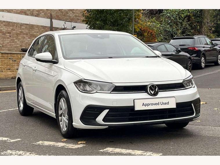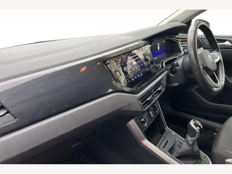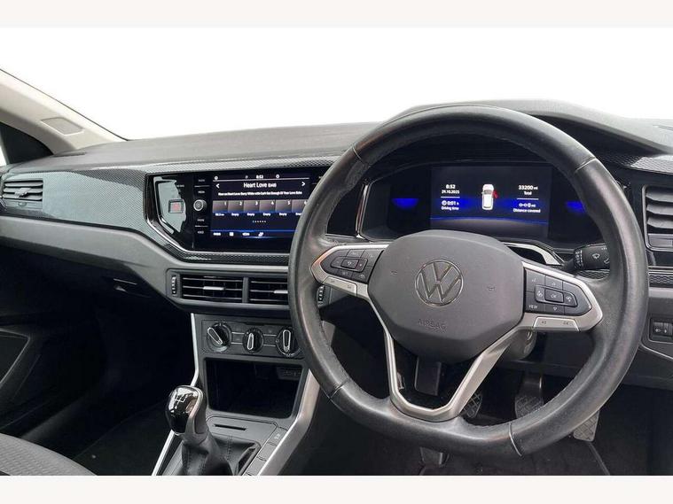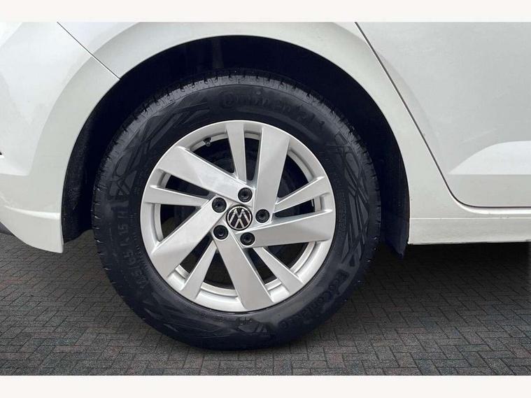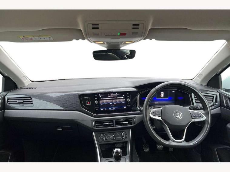 Adaptive cruise control without follow-to-stop and speed limiter, Bluetooth mobile phone interface, Driver alert system, Emergency call service, Front assist system, Power assisted speed sensitive steering, Preparation for We connect and We connect plus, Speedo and rev counter, electronic odometer, trip, service interval display and fuel gauge, Standard rear axle, Travel Assist - Lane keeping system and traffic jam assist, Travel assist including emergency assist, Trip computer, Warning signal and warning light for front and rear seatbelts not fastened, Washer fluid level indicator, Wireless app connect, Front wheel drive, Rear shock absorpion, Start-stop system with battery regeneration (recuperation - energy recovery during braking), DAB Digital radio, Diversity antenna for FM reception, Automatic dimming interior rear view mirror, Body colour bumpers, Body colour door handles, Body colour door mirrors, Electric front windows, Heat insulating darkened glass in side and rear windows, Heat insulating glass windscreen, Power folding adjustable/heated exterior mirrors and front passenger exterior mirror lowering function, Rain sensor, Rear electric windows, Rear fog light, Rear side wing doors, Rear windscreen washer and wiper with interval delay, Third brake light, 12V power socket in centre console, 2 front and 2 rear reading lights, 2 USB-C ports in the front, 2 USB-C charging sockets on the center console in the rear, 3 rear head restraints, 60/40 split folding rear seat and rear seat bench not split, Ceramique headliner, Chrome plated radiator grille inserts, air vent surrounds and light switch surrounds, Door and side trim panel, Driver and front passenger seat height adjustment, Driver/passenger sunvisors with illuminated vanity mirrors, Front centre armrest, Front seat backrest storage pockets, Front standard seats, Handbrake lever handle in leather, Hartley/Thomas cloth upholstery, Isofix child seat preparation easy-fit (for two outer rear seats, and front passenger seat) compatible with I-size, Leather trimmed gear knob, Luggage compartment cover, Luggage compartment floor, Luggage compartment lighting, Multifunction steering wheel, Single front passenger seat, Standard pedal cluster, Light and vision pack - Polo, 3 point height adj front seatbelts + pretensioners, 3x3 point rear seatbelts, ABS, Driver and front passenger airbag with front passenger airbag deactivation, Drivers and front passengers safety optimised head restraints, ESC (Electronic stability control) + EDL (Electronic Differntial lock) and ASR (Traction control), Extended and predictive pedestrian/ cyclist protection, Front curtain and side airbags with center airbag, Front disc brakes, Hill hold control, Manual child lock in rear doors, Rear drum brakes, Single tone horn, Tyre pressure loss indicator, Alarm with interior protection, Anti-theft alarm system with interior monitoring, backup horn, and towing protection, Anti-theft wheel bolts, Electronic engine immobiliser, Lava stone black gloss/matt decorative inserts in dash and front door panels, Low rolling resistance tyres,