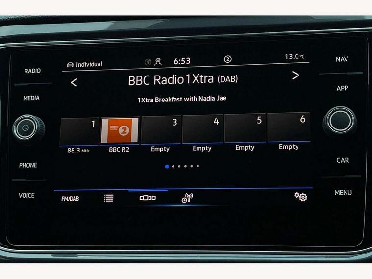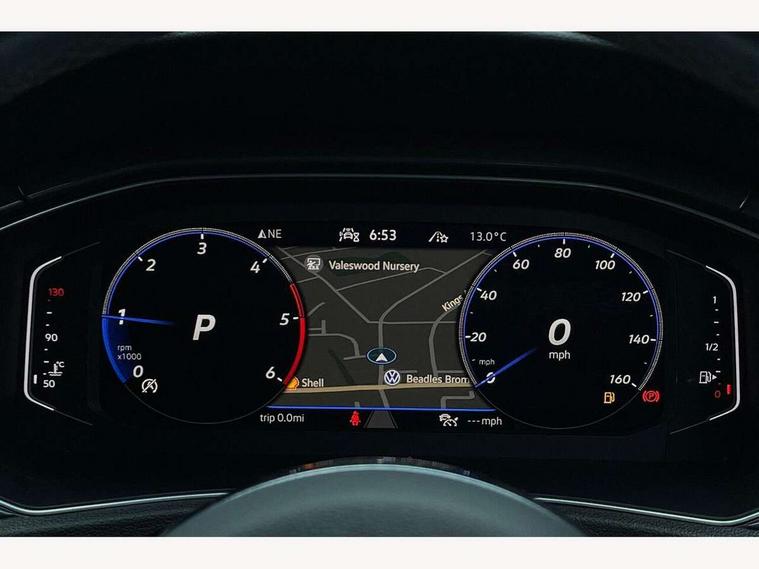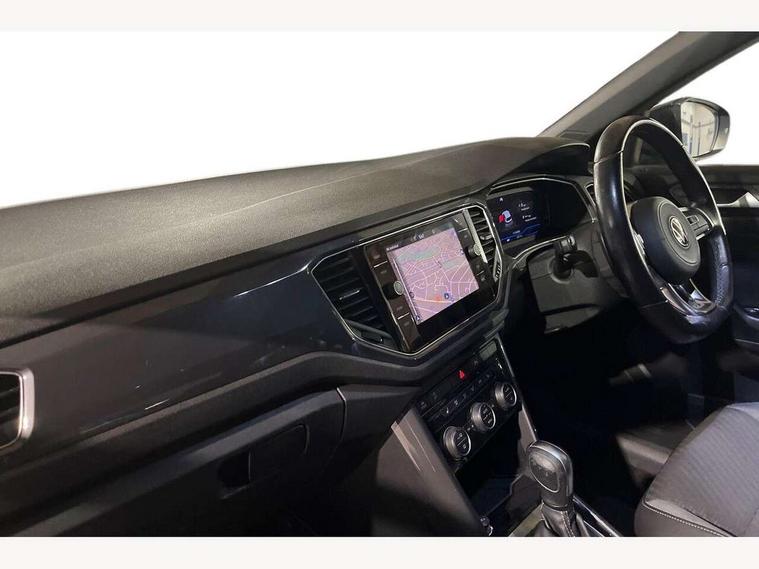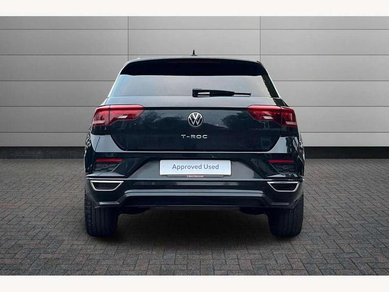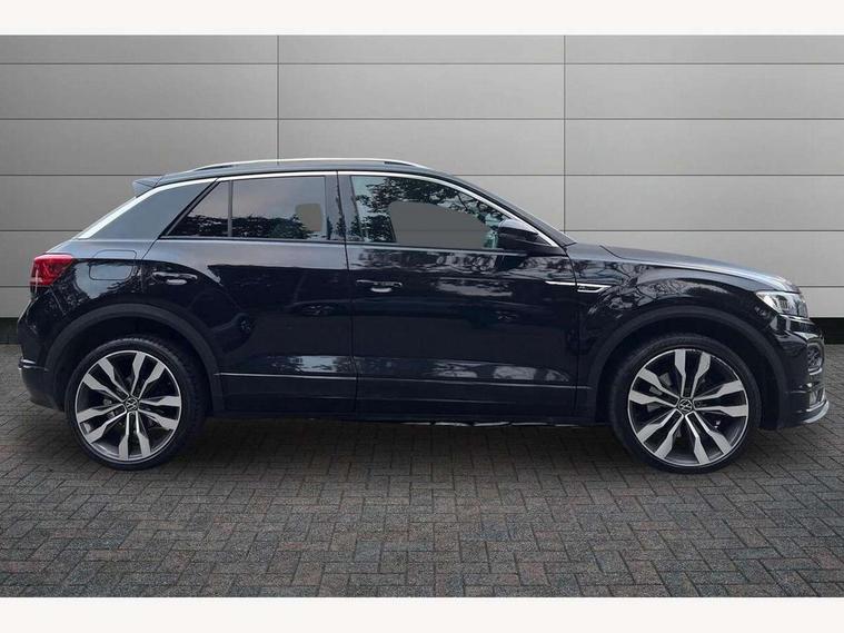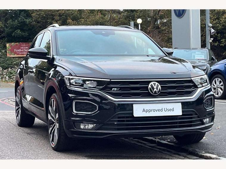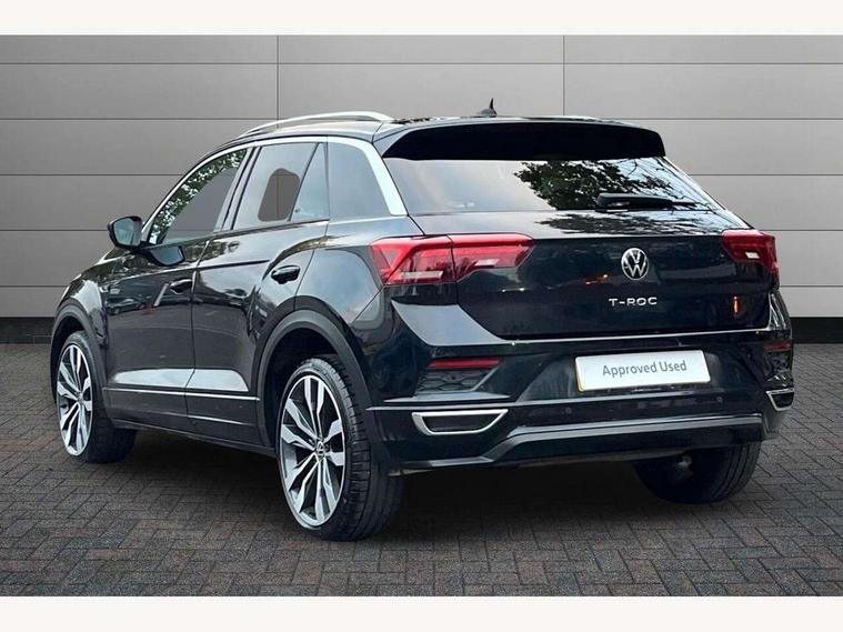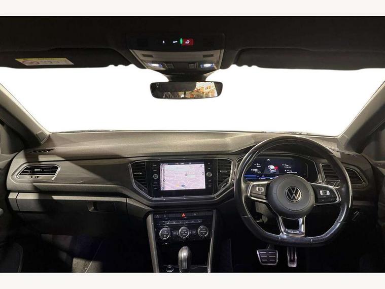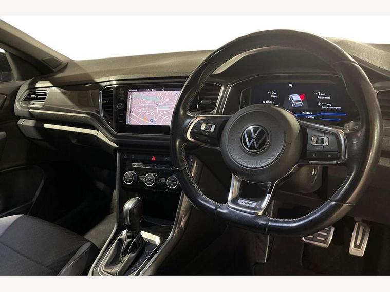 'Lights On' Reminder warning buzzer, Adaptive cruise control, Bluetooth telephone and audio connection for compatible devices, Car information display, Digital Cockpit Pro - Active info display, Driver alert system with audible and visual fatigue detection system, Driver tips and journey analysis, Dusk sensor, Emergency call service, Lane assist with warning text instrument cluster, Modified key software - reduce switch off time for key status change to Long no motion, Multifunction camera, Multifunction computer with visual gear change recommendation for fuel consumption, Navigation system discover media including streaming and internet, Service interval indicator, Think blue trainer driver tips and journey analysis, Traffic sign recognition, Voice activation, Warning sound and light for front seatbelts unfastened, Wireless app connect for apple carPlay, Battery regeneration during braking, Misfuel prevention device for diesel engine, Rear shock absorption for sports version, Start/stop function with battery regeneration, DAB Digital radio, Disk brakes in front, Diversity antenna for FM reception, Music playback - MP3, WMA and AAC files, Premium USB cable in choice of either Apple or Android smartphone compatibility, SD card slot, Simultaneous pairing of 2 compatible mobile devices, SMS functionality - read, compose and send SMS messages using touch-screen display, Storage compartment with longitudinal and height adjustable in armrest and two rear air vents, Three route options - Fast, Short, Eco, Title and cover art display, USB-C Interface and USB charging socket, Auto dimming interior rear view mirror, Automatic coming/leaving home lighting function and daytime running lights, Automatic hazard lights activation under emergency braking, Black grained lower door protectors, Body colored door lower parts, Body colour door handles, Body colour rear roof spoiler, Chrome effect left and right trapezoid exhaust tailpipe fascia surround, Chrome plated moldings, Chrome plated radiator grille inserts, air vent surrounds and light switch surrounds, Chrome trim on upper and lower radiator grille, Dynamic headlight range control with self adjusting whilst driving, Electrically foldable, adjustable and heated door mirrors with puddle lights and reverse activated kerb-view adjustment on passenger's door mirror, External USB type C socket and charging sockets, Front and rear electric windows, Front fog lights with static cornering function, Front windscreen wiper with intermittent wipe and 4 position delay, Fully galvanised body, Heated rear window, Heated windscreen washer jets, High level 3rd brake light, LED darkened rear light clusters, LED headlamps with automatic range adjustment and unique signature LED separate daytime running lights, LED rear number plate lights, LED tail lamp rear comination lamps, Privacy glass, R-Line design body coloured bumpers, Rain sensor, Rear tinted glass from B-pillar backwards approx 65% tinted, Rear wash/wipe with intermittent wipe setting, Silver anodised roof rails, Volkswagen roundel, 12V socket in centre console storage area, 3 rear head restraints, 4 load lashing points in luggage compartment, Aluminium pedals, Black roof lining and sun visors, Branded points of interest, Carbon flag cloth upholstery, Climate control - 2 zone electronic air conditioning with automatic air recirculation and allergy filter, Door and side trim panel, Door and side trim panel in foam film, insert in leatherette, Drawer under drivers seat, Front + rear carpet mats, Front centre armrest, Front cupholders x 2, Front seat back storage pockets, Front sports seats with R-Line logo on seat backrest, Glovebox, Heated front seats, Height adjustable front seats, Height/reach adjust steering wheel, Instrument lighting, white adjustable panel illumination, Interior light delay, Interior light in footwell, Isofix easy fit child seat preparation for 2 outer rear seats, Leather gearshift knob, Leather multi function sport steering wheel with gear change selection via paddle shift on steering wheel, LED interior light with switch off delay/dimmer and 2 front/rear LED reading lights, Load through provision with single cup holder when folded down, Luggage compartment cover, removable, Luggage compartment lighting, R Line badge, Scuff plates in door apertures, Split folding rear seat backrests with centre armrest, Stainless steel pedals, Storage compartment in left and right luggage area, Storage compartment in rear doors, Storage compartments in driver and front passenger doors, Sunvisors with illuminated vanity mirrors, Unique R Line door sill protectors, White ambient lighting, R line styling pack - T-Roc, Winter pack - T-Roc, 3 rear three point seatbelts, ABS, Curtain airbags, Driver and front passenger safety-optimised head restraints, Drivers and front passengers airbags with passengers deactivation switch, Drivers seatbelt reminder, Electronic parking brake with auto hold, Electronic stability control (ESC) includes ASR, EDL, EDTC and trailer stabilisation function, Front assist with city emergency braking and pedestrian monitoring, Front seat side impact airbags, Hill start assist, Predictive pedestrian protection, Rigid safety cell with front and rear crumple zones, Single tone horn, Three point height adjust front seatbelts + pretensioners, Tyre pressure loss indicator, Ventilated front and rear disc brakes, Volkswagen roadside assistance, Alarm with remote central locking and interior protection, Electronic engine immobiliser, Remote central locking with SAFELOCK, radio remote control with 2 remote control folding keys, Shadow grey decorative inserts in dash, centre console and door panel, 19" Suzuka alloy wheels with low rolling resistance tyres and anti wheel bolts,
