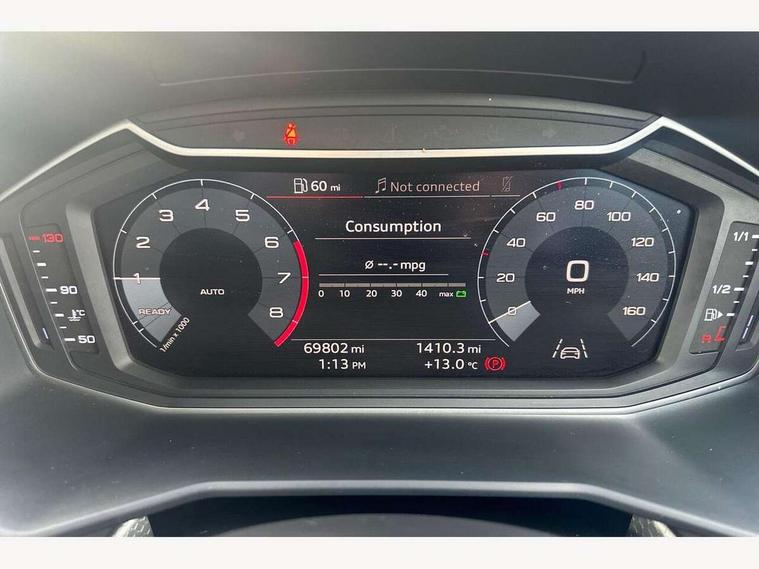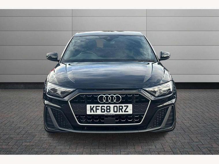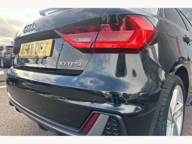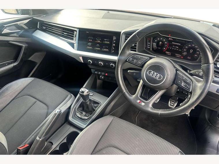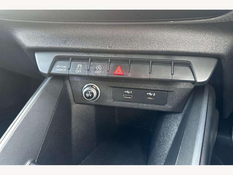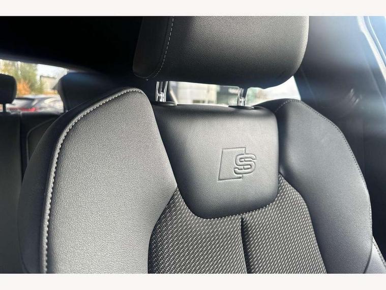 10.25" Digital instrument cluster display screen, Audi connect safety emergency and service including E-call, Audi drive select, Audi smartphone interface, Automatic start/stop system, Bluetooth interface, Driver's information system, Electromechanical power steering, Lane departure warning system, Service interval indicator, Speed limiter, Voice control system, Washer fluid level indicator, Sports suspension, 1 x SDXC card reader, 1 x USB type C and 1 USB type A charging points, Audi music interface, Bluetooth audio streaming, DAB Digital radio, MMI radio plus with 8.8" colour MMI display screen and MMI touch, Auto dimming rear view mirror, Body colour side sill mouldings, Body coloured bumpers, Body coloured door mirrors, Door sills with aluminium inlays and S Line logo, Electric front and rear windows, Front side air inlets in grained matt black and C frame in titanium black, Heat insulating glass windscreen and side windows, Heated rear windscreen, LED headlights with LED rear lights + dynamic rear indicators, Matt aluminium silver tailpipe trim, Matt black radiator grille frame, Matt platinum grey in front spoiler clip and rear diffuser clip, Rain and light sensors, Rear fog lights, Rear wiper, S line badges on front wings, S line exterior bumpers, S line roof spoiler, Side air inlet frames titanium black, Side front spoiler lips in grained matt black, 12V socket in centre console with two cup holders, 3 rear seats, Black cloth headlining, Driver and passenger seat with manual height adjust with forward and backwards adjustment, Front and rear black floor mats with contrast stitching in fine silver, Front head restraints, Height and reach adjustable steering wheel, ISOFIX child seat mounting in front passenger and rear outer seats, Leather gear knob with aluminium trim, Leatherette handbrake grip, Luggage compartment light with front and rear reading lights, Lumbar adjustment for front seats, Rear head restraints, Split folding rear seats, Stainless steel pedals, 3x3 point rear seatbelts, Audi pre-sense front with pedestrain and cyclist recognition, Brake assist function, Driver and front passenger airbag with front side and head airbags, Electronic Stability Control including ABS, EBD, ASR and EDL, Front and rear seatbelt reminder, Front passenger airbag deactivation switch, Hill hold assist, Seatbelt height adjustment for front seats, Seatbelt monitoring, Tyre pressure warning light, Warning triangle and first aid kit, Anti theft alarm, Anti theft wheel bolts and loose wheel warning, Immobiliser, Remote central locking with 2 remote folding keys, Aluminium trim for control switches, air vents and digital instrument cluster, Silver grey inlays polygon structure in diamond paint finish, Structured grey accent areas including air vents, door handle recesses and centre console in quartz paint finish,