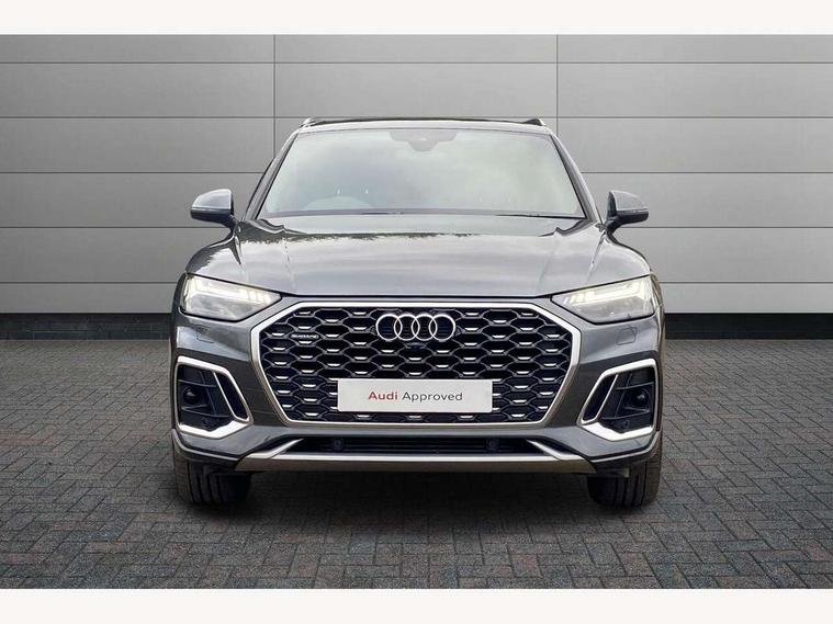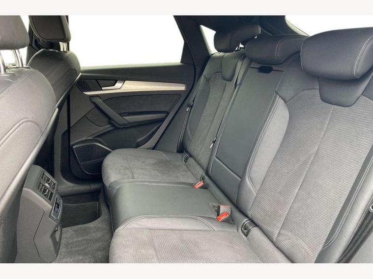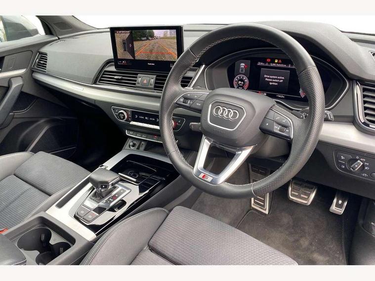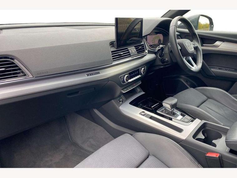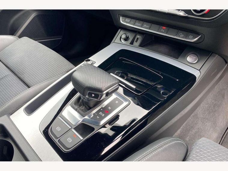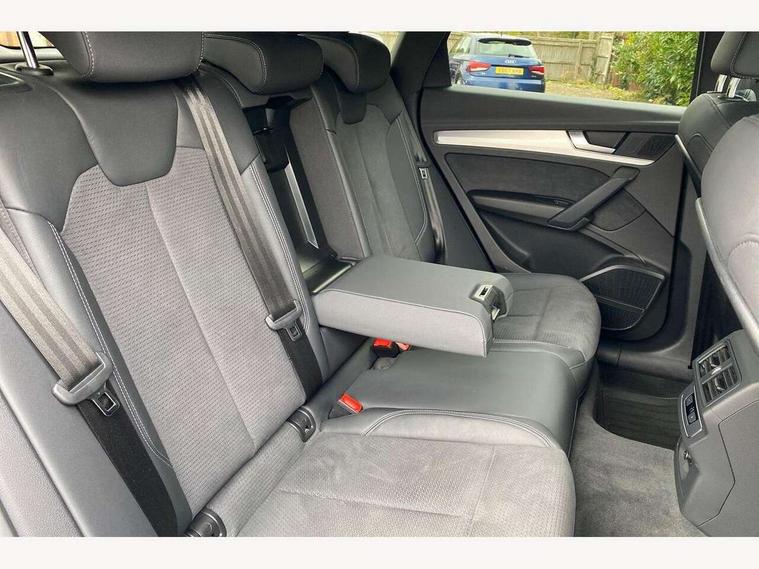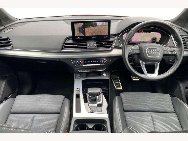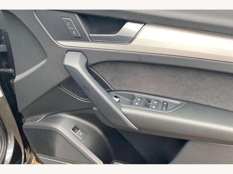 Audi connect safety and service (e-call), Audi connect with Amazon Alexa Integration, Audi drive select, Audi virtual cockpit plus with 12.3" screen and three different layout designs, Audi wireless smartphone interface, Automatic start-stop system with coasting functionality and efficiency programme, Bluetooth interface, Electro - mechanical power assisted steering, MMI navigation plus with 10.1" touch screen, Power tailgate, Reversing camera, Service interval indicator, Voice control system with Audi hotword activation "Hey Audi", Quattro on demand, S line sports suspension, 2 x USB charging port with aux input socket, DAB Digital radio, Acoustic windscreen, Aluminium roof rails, Audi matrix LED headlights with dynamic front and rear indicators, Auto dimming rear view mirror, Automatic headlights and windscreen wipers, Body colour door mirrors, Body colour rear diffuser with matt aluminium silver surrounds, Body colour underbody protection, Chrome plated exhaust trims, Door sills in Selenite silver, Electric adjustable/heated/folding door mirrors, Front air inlet surrounds in aluminium, Front and rear electric windows, Front radiator grille in honeycomb design, Headlight washers, Lower bumpers painted in contrast Manhattan grey, Rear chrome trim strip below lights, Rear privacy glass and rear side windows, Rear spoiler, Rear wiper, Roof bars, S Line badges on the front wings, S Line front and rear bumpers, S Line side skirts, 3 rear headrests, 40:20:40 split folding rear seat with rear centre armrest, Black cloth headlining, Comfort front centre armrest, Contrast stitching on seats, steering wheel and gear lever gaiter, Deluxe 3 zone electronic climate control, Front head restraints, Front/rear floor mats, Gear lever in black leather, Heated front seats, Height/reach adjustable steering column, Illuminated door sill trims with S logo, ISOFIX child seat mounting and top tether, Manual seat adjustment with 4-way electric lumbar support, Removable luggage compartment floor, Stainless steel pedals, Sunvisors with vanity mirrors, Trunk roller cover, High gloss pack - Q5, LED interior light pack - Q5, 3 point seatbelts on all seats, 6 airbags - Driver, front passenger, curtain and side airbags, Electrically operated child locks on rear doors, Electromechanical parking brake, Electronic stabilisation control including ABS, ASR and EDL, Front passenger airbag deactivation, Hill descent control, Hill hold assist, Multi collision brake assist, Pop-up bonnet for pedestrian protection, Pre sense city, Seat belt force limiter, Seatbelt monitoring, Tyre pressure warning, Warning triangle and first aid kit, Anti theft alarm, Anti-theft wheel bolts, Keyless Go access/ignition system, Matt brushed aluminium inlays,