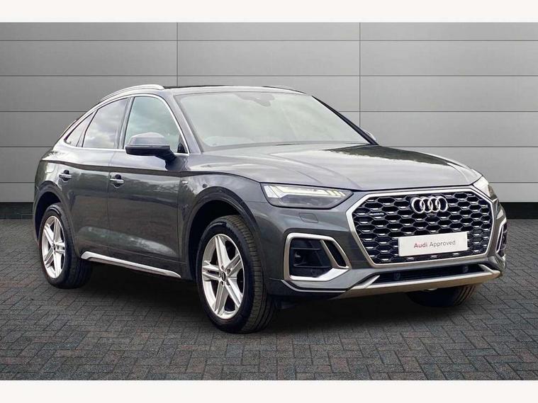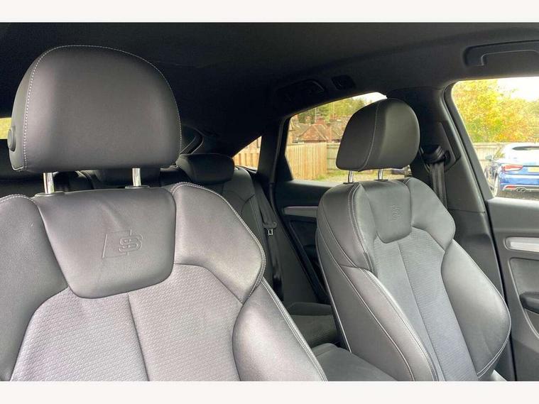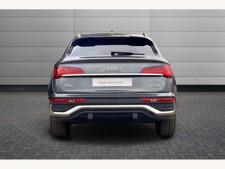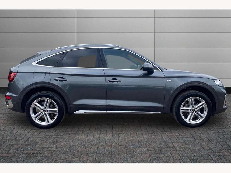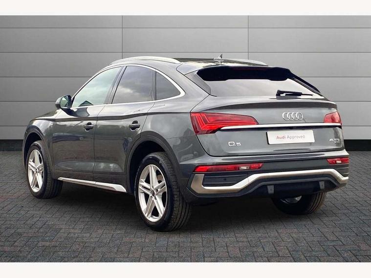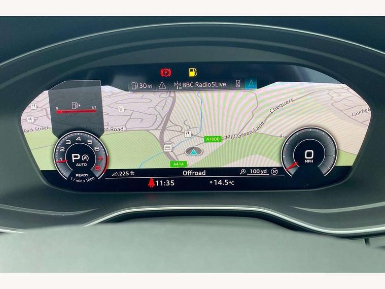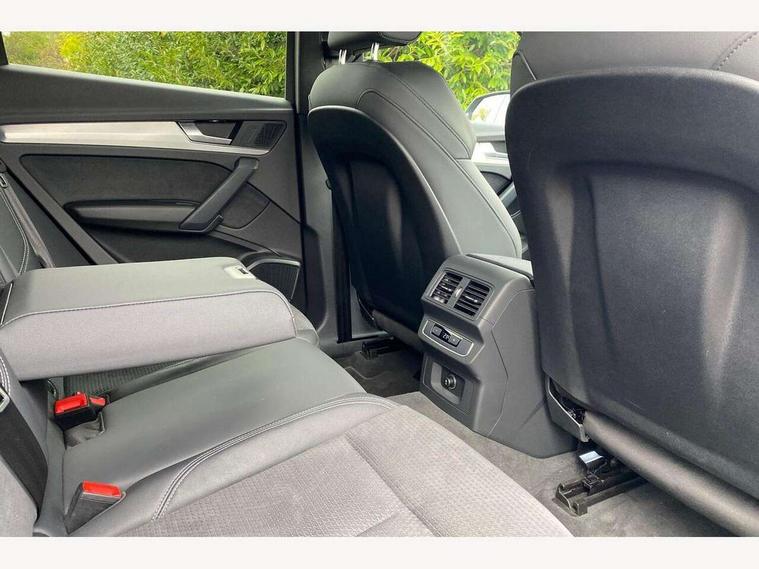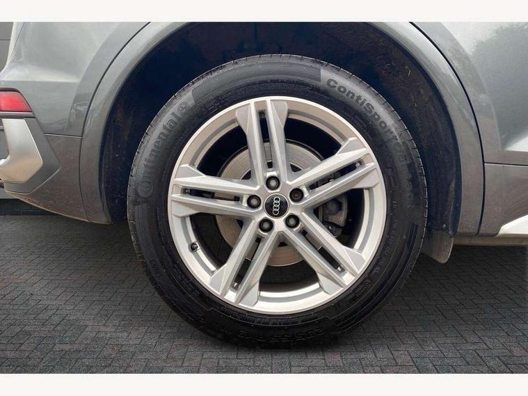 Audi connect safety and service (e-call), Audi connect with Amazon Alexa Integration, Audi drive select, Audi virtual cockpit plus with 12.3" screen and three different layout designs, Audi wireless smartphone interface, Automatic start-stop system with coasting functionality and efficiency programme, Bluetooth interface, Electro - mechanical power assisted steering, MMI navigation plus with 10.1" touch screen, Power tailgate, Reversing camera, Service interval indicator, Voice control system with Audi hotword activation "Hey Audi", Quattro on demand, S line sports suspension, 2 x USB charging port with aux input socket, DAB Digital radio, Acoustic windscreen, Aluminium roof rails, Audi matrix LED headlights with dynamic front and rear indicators, Auto dimming rear view mirror, Automatic headlights and windscreen wipers, Body colour door mirrors, Body colour rear diffuser with matt aluminium silver surrounds, Body colour underbody protection, Chrome plated exhaust trims, Door sills in Selenite silver, Electric adjustable/heated/folding door mirrors, Front air inlet surrounds in aluminium, Front and rear electric windows, Front radiator grille in honeycomb design, Headlight washers, Lower bumpers painted in contrast Manhattan grey, Rear chrome trim strip below lights, Rear privacy glass and rear side windows, Rear spoiler, Rear wiper, Roof bars, S Line badges on the front wings, S Line front and rear bumpers, S Line side skirts, 3 rear headrests, 40:20:40 split folding rear seat with rear centre armrest, Black cloth headlining, Comfort front centre armrest, Contrast stitching on seats, steering wheel and gear lever gaiter, Deluxe 3 zone electronic climate control, Front head restraints, Front/rear floor mats, Gear lever in black leather, Heated front seats, Height/reach adjustable steering column, Illuminated door sill trims with S logo, ISOFIX child seat mounting and top tether, Manual seat adjustment with 4-way electric lumbar support, Removable luggage compartment floor, Stainless steel pedals, Sunvisors with vanity mirrors, Trunk roller cover, High gloss pack - Q5, LED interior light pack - Q5, 3 point seatbelts on all seats, 6 airbags - Driver, front passenger, curtain and side airbags, Electrically operated child locks on rear doors, Electromechanical parking brake, Electronic stabilisation control including ABS, ASR and EDL, Front passenger airbag deactivation, Hill descent control, Hill hold assist, Multi collision brake assist, Pop-up bonnet for pedestrian protection, Pre sense city, Seat belt force limiter, Seatbelt monitoring, Tyre pressure warning, Warning triangle and first aid kit, Anti theft alarm, Anti-theft wheel bolts, Keyless Go access/ignition system, Matt brushed aluminium inlays,
