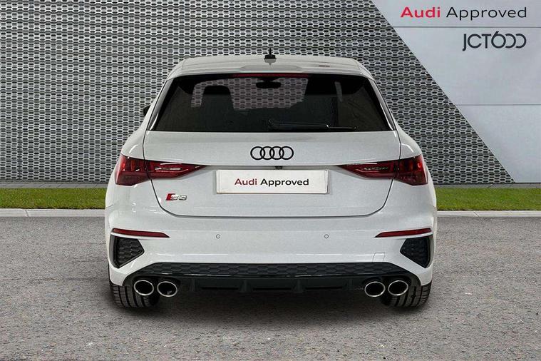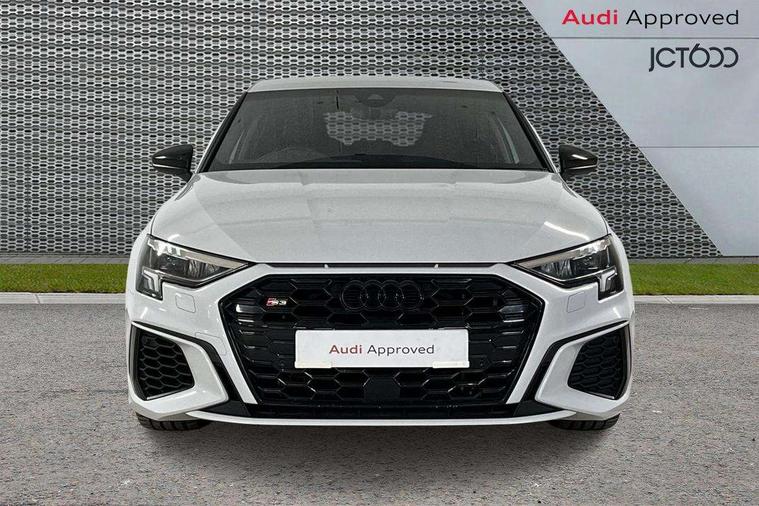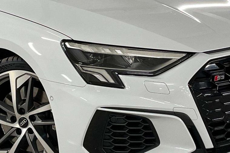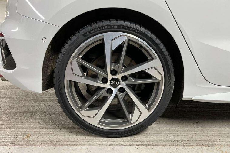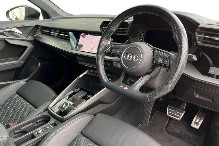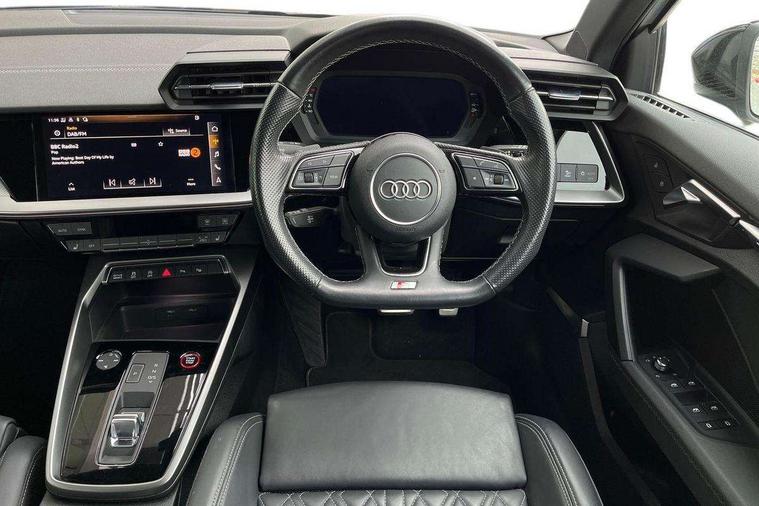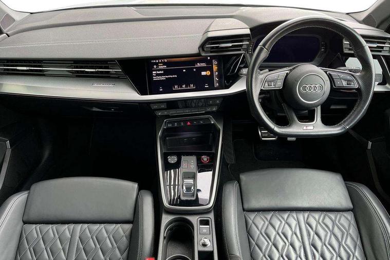 Audi connect emergency call and service, Audi drive select (Auto, Comfort, Dynamic, Efficiency and Individual), Audi smartphone interface, Audi Virtual Cockpit - 10.25" digital and colour instrument cluster, Automatic start/stop system with recuperation, Bluetooth interface, Collision avoidance assistant, Electromechanical power speed sensitive steering, Lane departure warning system, MMI Navigation Plus with high resolution 10.1" colour touch screen display, Service indicator, Voice control system with natural language interaction, 2x USB Type C ports (for charging and data transfer), 6 passive loudspeakers, CD player, DAB Digital radio, Acoustic glass windscreen, Aluminium window trim, Auto dimming frameless rear view mirror, Electrically adjustable/heated/folding/auto dimming door mirrors with integrated LED indications + kerb view function for passenger side, Front electric windows, Illuminated door sills with aluminium inserts at the front with S logo, LED daytime running lights, LED headlights with LED rear lights and dynamic rear indicators, Light and rain sensors, Model and engine designation badges at rear, Privacy glass - dark tinted rear window, rear door and side windows, Rear electric windows, S line bumpers, S roof spoiler, 12V socket and storage compartment in front centre console, 40/20/40 split folding rear seat bench with cupholder, Black cloth headlining, Dual zone electronic climate control, Front and rear centre armrest in leather, Front and rear headrests, Front/rear floor mats, Height and reach adjustable steering wheel, Interior lighting - glove compartment light and right hand side, Luggage compartment floor covering, Manual boot compartment lid, Manually adjustable front sport seats, Seat side bolsters, Stainless steel pedals and front footrest, Twin leather upholstery with front sports seats S embossed logo, Aluminium interior elements pack - A3, S line styling pack - A3 Saloon, 3x3 point rear seat belts, Driver and front passenger airbag with passenger airbag deactivation, Electronic Stabilisation Control (ESC) including ABS, ASR and EDL, First aid kit with warning triangle and 2 safety vests, Front side airbags with head airbags and interaction airbag, Hill hold assist, Pre-sense front with pedestrian and cyclist detection, Seatbelt monitoring, Tyre pressure loss indicator, Anti theft alarm, Anti-theft wheel bolts, Electronically operated child lock, Immobiliser, Remote control central locking, Aluminium air vent surrounds, Aluminium trim elements, Dark spectrum aluminium inlays, accent surfaces in the dashboard and centre console in platinum grey silk effect paint finish,
