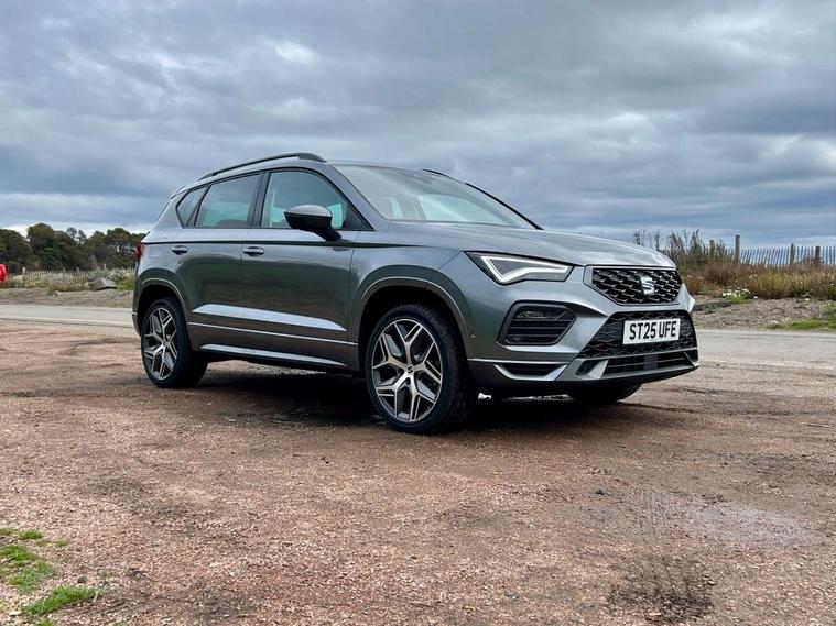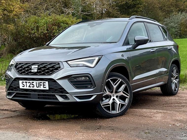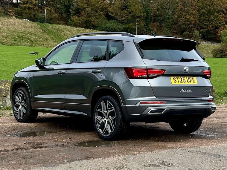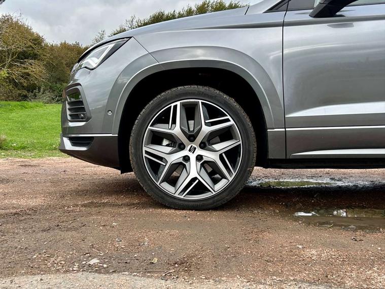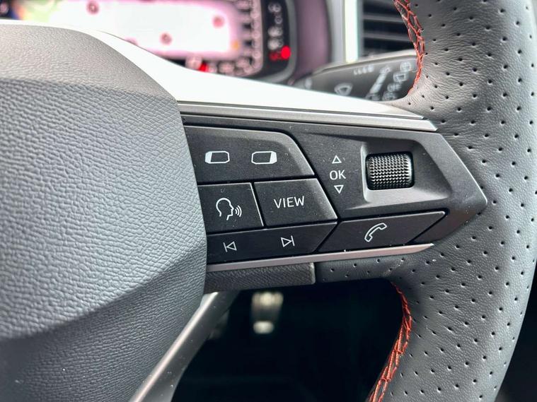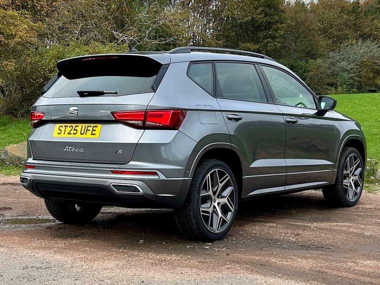 10" Digital cockpit, Cruise control system with speed limiter, E-call, Outside temperature gauge, Progressive power assisted steering, SEAT drive profile with driving experience button - Normal, Sport, Eco and Individual mode, steering and throttle response, Self parking functionality (includes front and rear parking sensors), Start/stop system, Tailgate, Trip computer, wired and wireless full link smartphone integration, Wireless phone charger, Steering wheel mounted audio/phone controls, Black roof rails, Black side window trim, Body colour bumpers, Body coloured wheel arch surrounds, Chrome front grille frame, Dark tinted rear windows, Daytime running lights, Door mirrors with welcome light silhouette, Dynamic headlight range control with self adjusting whilst driving, Electric adjustable/heated/folding door mirrors, Front and rear electric windows, Full LED headlamps with lens and LED front fog lamps with cornering function, Illuminated aluminium front door sill, LED 3rd brake light, LED rear tail lights with dynamic indicators, Rear exhaust tailpipe, Rear fog lights, Rear side wing doors, Rear spoiler, Rear wash/wipe, Variable front intermittent wipers, 12v socket in front, 3 seat bench in 2nd row, 60/40 split folding rear seat, Aluminium pedals, Dual zone climate control, Electric adjustable driver seat with memory function, Front and rear head restraints, Front centre armrest, Front seat back storage pockets, Heated front seats, Height adjustable passenger seats with lumbar adjustment, ISOFIX points in outer rear seats with top tether anchorage points, Leather sports steering wheel and gear knob, Leather upholstery with front comfort seats, Manual lumbar support on driver seat, Rear armrest and easy back seat release mechanism from boot, Single front passenger seat, Convenience pack - Ateca, Interior lighting pack - Ateca, Navigation system pack with DAB - Ateca, Safety and driving pack with attention and drowsiness assist - Ateca, 3x3 point rear seatbelts, ABS, Traction control system (TCS), Electronic stability control (ESC) and Electronic differential lock system (XDS), Airbags - Driver and front passenger airbag with deactivation, front side, two curtain and driver's knee airbags, Electric parking brake with auto hold function, Front and rear seatbelt reminder, Front assist with autonomous emergency braking, Hill hold control, Manual rear child locks, Single tone horn, Tiredness recognition system, Tyre pressure monitoring system, Alarm, Keyless entry, Locking wheel bolts, Remote central locking, Chrome interior detailing, 19" Exclusive machined alloy wheels with decorative inserts 36/7 in cosmo grey,