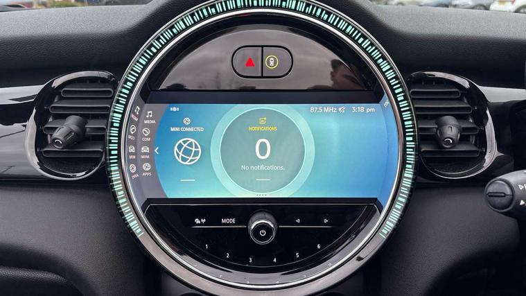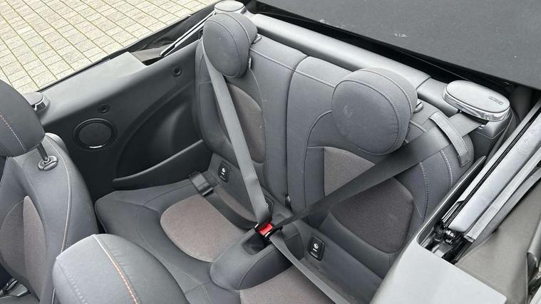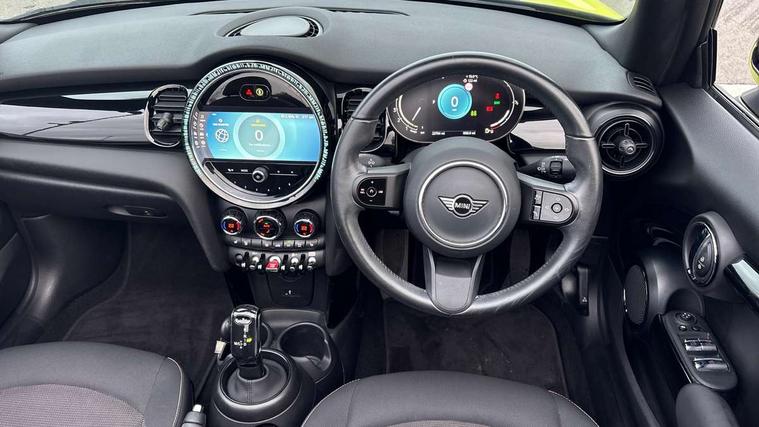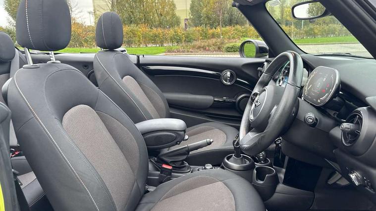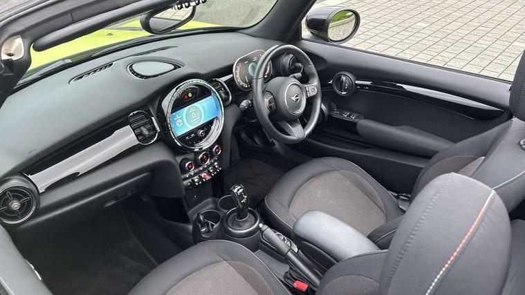 Apple CarPlay, Automatic start/stop function with brake energy recuperation, Compatible mobile phone bluetooth with audio streaming, Cruise control with brake assist, Electro-mechanical speed dependant steering assistance, Instrument cluster, Mini E-call, MINI TeleServices, On board computer, Rear park distance control, Service interval indicator, Double Vanos system, Fully variable valve control, High precision injection, Performance Control, Steptronic transmission with double clutch, FM tuner and DAB digital radio, Automatic headlight activation switch, Body colour fuel filler cap, Chrome border high gloss black slats radiator grille, Dynamic brake lights, Electric windows, Fully electric black softtop with integrated sunroof functionality, Heated rear window, Heated windscreen washer jets, LED headlight with closed ring and daytime driving lights, Left exhaust tailpipe with chrome finisher, Metal door sill strips with MINI imprint, Model logo Cooper on right of tailgate, Rain sensor window wipers, Rear boot, Rear fog lights, Rear LED lights with union jack design, Side scuttle panel with integrated indicator, Sun/heat protection glass, Third brake light, White indicator lenses, 12V Accessory socket in centre console, 2 seat bench in 2nd row, 4 lashing eyes in luggage compartment, 50/50 split folding rear seats, Chrome interior highlights, Colour line - Carbon black, Cupholders, Easy Load boot handles, Front and rear head restraints, Front and rear isofix with front passenger airbag deactivation, Glove compartment, Height and length steering column adjustment, Interior lighting with 12 different colours running across the dashboard, underneath door bezel illuminated laser engraved design on central display, Leather gearshift lever and handbrake gaiters, LED reading lights, vanity mirror lights, front foot well light and spotlight on front seats, Manual air conditioning, Mechanical seat adjustment, driver seat height adjust, forward/back and front seats backrest, Multifunction steering wheel, Single front passenger seat, Sports steering wheel, Storage compartments in doors, Sunvisors with vanity mirrors, Three spoke steering wheel with speed limiter and audio/communication controls, Velour floor mats, Convertible pack with comfort access - Mini Convertible, Navigation pack without Apple car play - Mini Convertible, 3 point seatbelts on all four seats, 6 Airbags - front, side and seat belt tensioners, Active rollover protection, Anti-lock braking system (ABS), DSC - Dynamic Stability Control, Front and rear disc brakes, Hill start assist, Single tone fanfare horn, Tyre pressure monitoring system, Alarm system with tilt sensor, monitoring doors, bonnet interior and tailgate, Electronic vehicle immobiliser, Keyless Go, Piano black interior trim, Tool kit, Tyre repair kit,
