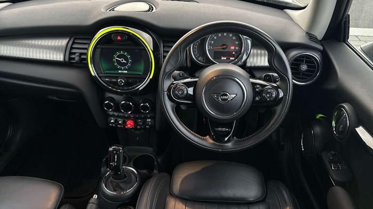Compatible mobile phone bluetooth with audio streaming, Instrument cluster, Mini E-call, MINI TeleServices, On board computer, Service interval indicator, Performance Control, Steptronic sport transmission with double clutch and steering wheel paddles, 6.5" touchscreen with LED ring, FM tuner and DAB digital radio, Automatic headlight activation switch, Bonnet scoop, Chrome border honeycomb structure radiator grille with S badge, Chrome plated fuel cap, Dynamic brake lights, Electric front+rear windows, Heated rear window, Heated windscreen washer jets, LED headlight with closed ring and daytime driving lights, Metal door sill strips with Cooper S imprint, Model logo Cooper S on right of tailgate, Rain sensor window wipers, Rear fog lights, Rear LED lights with union jack design, Rear window wiper, Side scuttle panel with integrated indicator, Sun/heat protection glass, Two central exhaust tailpipes with chrome finisher, White indicator lenses, 12V Accessory socket in centre console, 4 lashing eyes in luggage compartment, 60/40 split folding rear seat, Chrome interior highlights, Cupholders, Front and rear isofix with front passenger airbag deactivation, Glove compartment, Height and length steering column adjustment, Interior lighting with 12 basic colours selectable via toggle switch in roof, Leather gearshift lever and handbrake gaiters, LED reading lights, vanity mirror lights, front foot well light and spotlight on front seats, Manual air conditioning, Mechanical seat adjustment, driver seat height adjust, forward/back and front seats backrest, Mini logo projection on floor from drivers exterior mirror, MINI Yours leather steering wheel with silver contrasting stitching with MINI Yours badge, Multifunction steering wheel, Storage compartments in doors, Storage pocket on back of front seats, Sunvisors with vanity mirrors, Tool kit, 3 point seatbelts on all four seats, 6 Airbags - front, side, head and seat belt tensioners, Anti-lock braking system (ABS), DSC - Dynamic Stability Control, Front and rear disc brakes, Hill start assist, Two tone horn, Tyre pressure monitoring system, Alarm system with tilt sensor, monitoring doors, bonnet interior and tailgate, Electronic vehicle immobiliser, Start/stop toggle with keyless go, Chrome line interior,