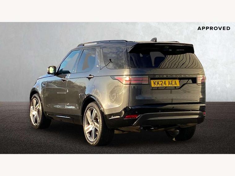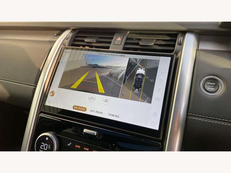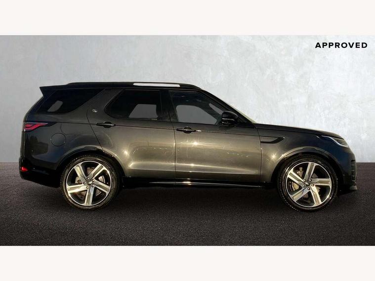 11.4" touchscreen, 3D surround camera, Adaptive cruise control, Android Auto, Apple car play, Blind spot assist, Driver condition monitor, Electric power assisted steering (EPAS), Emergency services call system, Front and rear parking aid, Interactive driver display, Lane keep assist, Power inner tailgate, Power tailgate/boot lid, Push button start, Rear collision monitor, Rear traffic monitor, Remote, Remote boot release, Service interval indicator, Speed proportional steering, Sportshift selector, Stop/start system, Traffic sign recognition with adaptive speed limiter, Trip computer, Wade Sensing, Adaptive dynamics, Dynamic stability control, Electronic air suspension, Front axle open differential, Digital Audio Broadcast radio-DAB, Dynamic volume control, Pivi pro connected, USB/aux input socket, Acoustic laminated windscreen, Animated directional indicators, Auto dimming interior rear view mirror, Automatic headlight levelling, Automatic headlights, Body colour bumpers, Body colour door handles, Centre high mounted stop light, D300 badge, Electric heated/power fold memory door mirrors with approach lights and auto dimming driver side, Electric windows with one touch open/close and anti-trap, Heated rear window, Heated windscreen, LED darkend tail lights, Matrix LED headlights with signature DRL, Narvik black Discovery script, Privacy glass, Puddle lights, Rain sensing windscreen wipers, Rear fog lights, Rear side wing doors, Rear wash/wipe, Trailer stability assist, Variable intermittent wiper, 12V power sockets, 12V USB charging socket in loadspace, 2 seat bench in 3rd row, 3 seat bench in 2nd row, 60/40 electric heated folding rear seats with manual slide and powered recline, centre headrest and armrest, Central hinged twin lidded storage, Configurable cabin lighting, Ebony morzine headlining, Electric adjustable steering column, First and second row door bins, Footwell lights, Front and rear 12V with front USB, Front passenger seat isofix location point, In-facia storage, Isofix child seat preparation for front passenger seat, Leather steering wheel, Loadspace cover, Loadspace Hook, Loadspace light, Lockable glovebox, Lower centre console storage, Luggage tie downs in loadspace, Multi function steering wheel, Overhead lighting console, Premium carpet mats, Rear ISOFIX, Shopping bag hook, Single front passenger seat, Storage glovebox, Sunvisors with illuminated vanity mirrors, Third row storage, Treadplates with metal inserts, Twin front cupholders with cover, USB with 12V socket in centre console, Black exterior pack - Discovery Dynamic SE/HSE, Online pack with data plan - Discovery, 3x3 point rear seatbelts, Anti-lock braking system (ABS), Brake pre-fill technology, Cornering brake control, Curtain airbags, Customer configurable autolock, Driver and passenger airbags, EBD - Electronic brakeforce distribution, Electronic traction control, Emergency brake assist, Emergency braking, ESP, Front side airbags, Gradient acceleration control, Hill descent control, Hill launch assist, Power operated child locks, Rear airbags, Roll stability control, Seat belt reminder, Torque vectoring brake, Tyre pressure monitoring system, Immobiliser, Intrusion sensor, Keyless entry, Locking wheel nuts, Remote central locking, All terrain tyres,