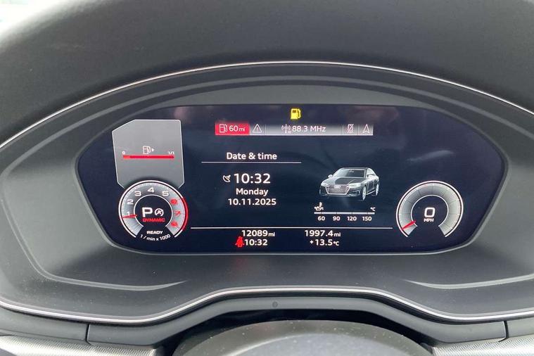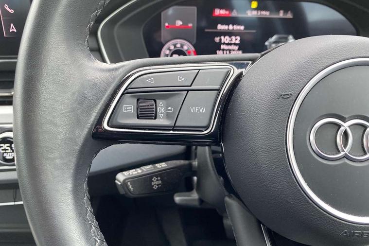 Audi connect safety and service (e-call), Audi connect with Amazon Alexa Integration, Audi drive select, Audi parking system plus with front and rear sensors, Audi smartphone interface, Audi virtual cockpit, Automatic start-stop system with coasting functionality and efficiency programme, Bluetooth interface, Cruise control system with speed limiter, Electric boot lid release, Electromechanical power steering, Email, calendar and text messages displayed via MMI, MMI Navigation plus with MMI touch includes 10.1" high resolution colour MMI display, 3D map, Rear view camera, Voice control system, 54 litre fuel tank, Comfort dynamic suspension, 2 USB charging ports, 8 passive loudspeakers, DAB digital radio reception, Auto dimming rear view mirror, Body coloured door mirrors, Electrically folding auto dimming/adjustable/heated door mirrors with LED side indicators and kerb view function for passenger side, LED headlights and rear lights with LED daytime running lights, LED third brake light, New design rear diffuser, Rain and light sensors, Rear boot, Rear side wing doors, Variable intermittent front wash/wipe, Windscreen with acoustic glazing, 3 spoke high multi-function leather sport steering wheel with paddle shift and height and reach adjustable, 4 way electric lumbar support for driver and front passenger, 40/20/40 split folding 3 rear seat bench in 3 parts with rear centre armrest, Deluxe 3 zone electronic climate control, Door sill trims with aluminium inlay, Front and rear head restraints, Front centre armrest, Heated front seats, Interior lighting, ISOFIX child seat mounting and top tether, Manual seat adjustment, Single front passenger seat, High gloss package - A4, 3 rear seatbelts, 6 airbags - Driver, front passenger, curtain and side windows, Electronic Stabilisation Control (ESC) including ABS, ASR and EDL, Hill hold assist, Multi collision brake assist, Pop-up bonnet for pedestrian protection, Pre sense city, Rear door child safety locks, Seatbelt monitoring, Warning triangle and first aid kit, Anti theft alarm, Anti theft wheel bolts, Central locking, Keyless Go, Tool kit, Tyre repair kit,