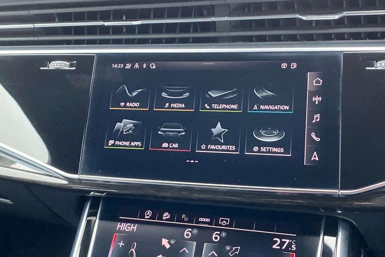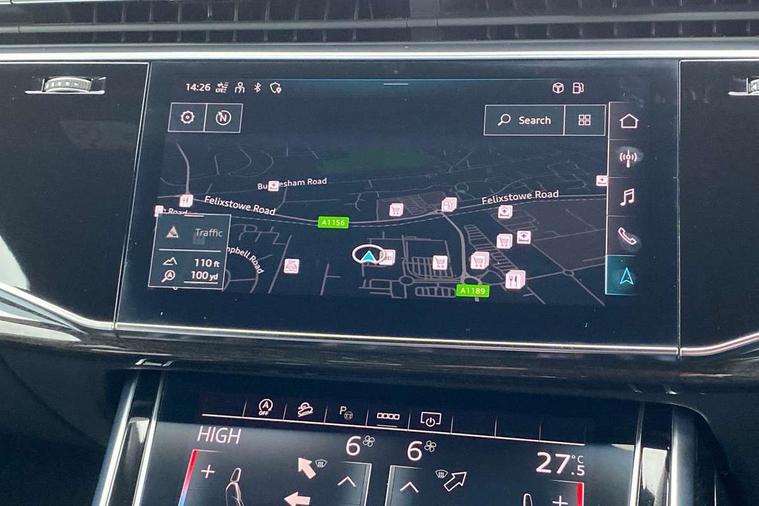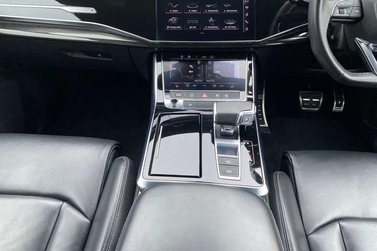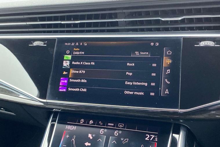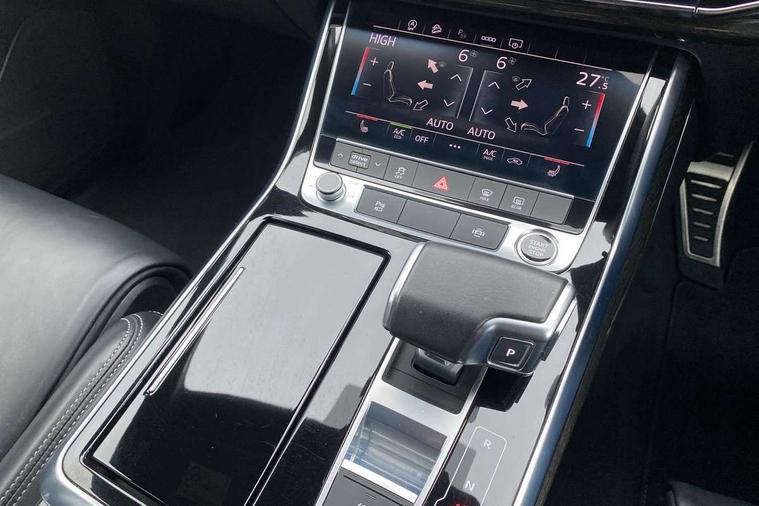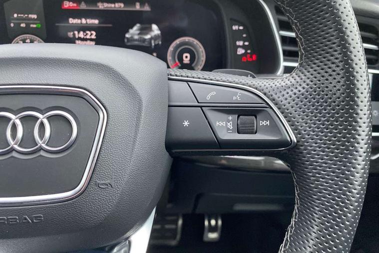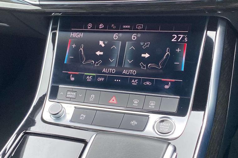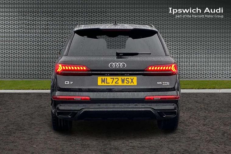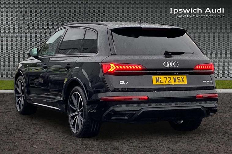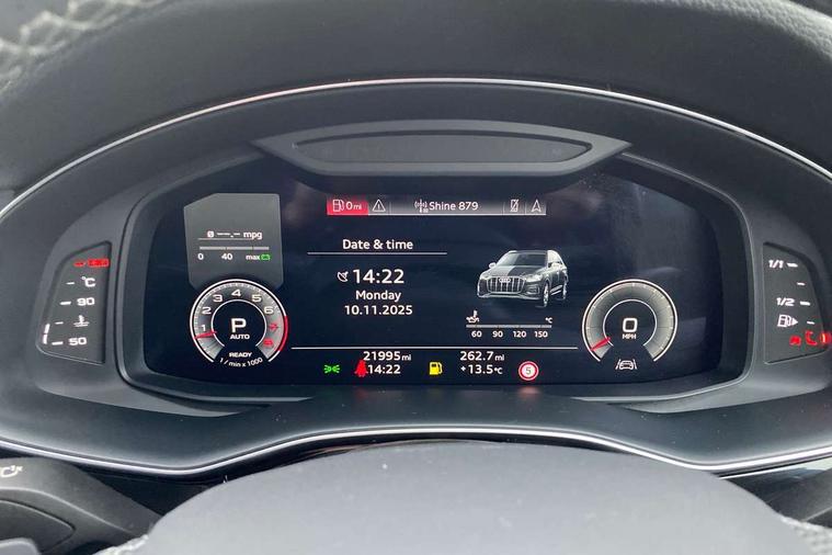 Audi connect safety and service (e-call), Audi connect with Amazon Alexa Integration, Audi drive select (Auto, Comfort, Dynamic, Efficiency, Individual, Off-road and All road), Bluetooth interface, Camera based traffic sign recognition, Electromechanical steering, MMI navigation plus with MMI touch screens includes 10.1" and 8.6" screens with haptic feedback, Natural voice recognition, Parking system plus with 360 degree display (front, rear and side sensors) - acoustic and visual park assist system, Power operated tailgate, Rear view camera, Smartphone interface includes wireless Apple carplay/Android Auto, Start/stop system, 48V Mild hybrid technology, 85 litre fuel tank, Adaptive air sports suspension, Quattro all wheel drive with self locking centre differential, Audi music interface - front 2 USB-C ports with charger and data functions, Audi sound system with 6 channel amplifier, 180 watt amplifying capacity and 10 loudspeakers including subwoofer, DAB digital radio module, 3rd brake light, Audi matrix LED headlights with dynamic front and rear indicators, Auto dimming frameless rear view mirror, Black roof rails, Bumpers in contrast paint scandium grey finish includes door trim and wheel arch trim strips, inlays in door strip contain quattro embossing, Electrically adj heated/folding + automatically dimming exterior mirrors with memory + automatic kerb side function for passenger side exterior mirror, Heat insulating glass in windshield, Integrated LED indications in door mirrors, LED daytime running lights, LED rear tail lights, Privacy glass - dark tinted rear and rear side windows from B-pillar backwards, Rear side wing doors, Rear wiper, 2 seat bench in 3rd row, 3 seat bench in 2nd row, 4 zone deluxe automatic climate control, 7 seat layout with ISOFIX points for the front passenger seat and rear passenger seat, Black cloth headlining, Comfort front centre armrest, Electric adjustable front seat with 4 way lumbar support, driver memory functionality, Folding rear seats, Front head restraints, Front/rear floor mats, Heated front seats, Illuminated door sill trims with S logo, LED interior ambient lighting, Luggage compartment cover, Luggage compartment sill protection in stainless steel, Rear head restraints, Single front passenger seat, Stainless steel pedals, Sunvisors with illuminated vanity mirrors, Titanium black styling pack - Q7/SQ7, 3 point seatbelts on all rear seats, Audi pre sense front, Child locks on rear doors, Driver and front passenger, front side and curtain airbags, Electromechanical parking brake, Electronic Stabilisation Control (ESC) including ABS, ASR and EDL, Extended pedestrian protection measures, Hill hold assist, Seatbelt monitoring, Tyre pressure loss indicator, Warning triangle and first aid kit, Anti theft alarm, Anti-theft wheel bolts and wheel loosening detection, Keyless Go, Remote central locking, Polished oak trim with grey finish inlay, Tool kit, Tyre repair kit,