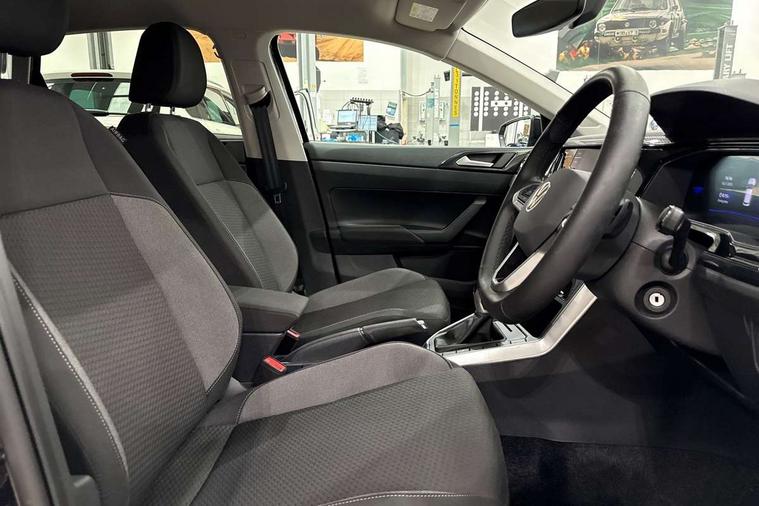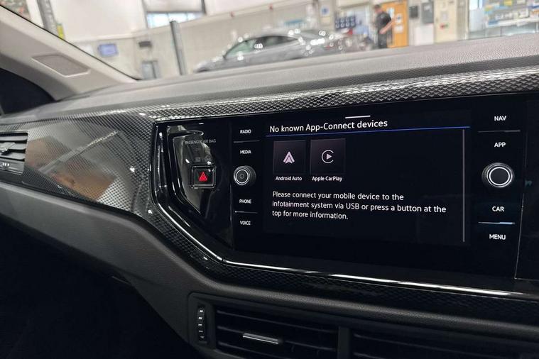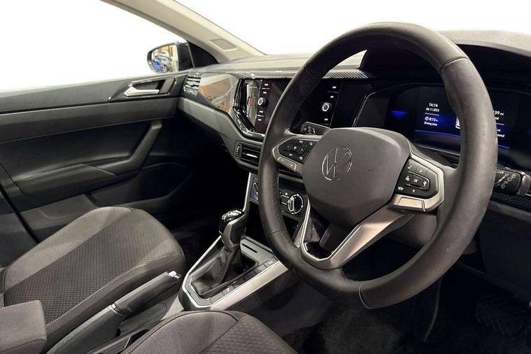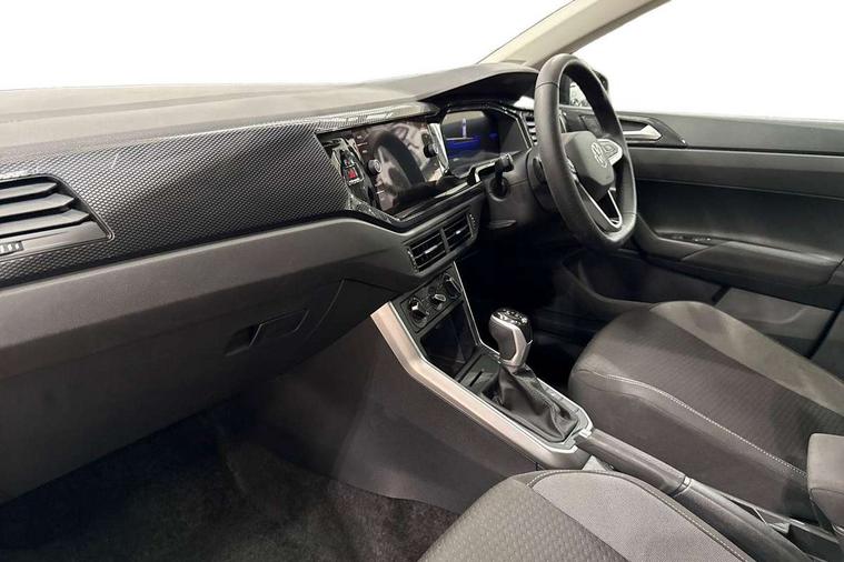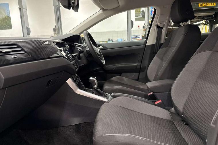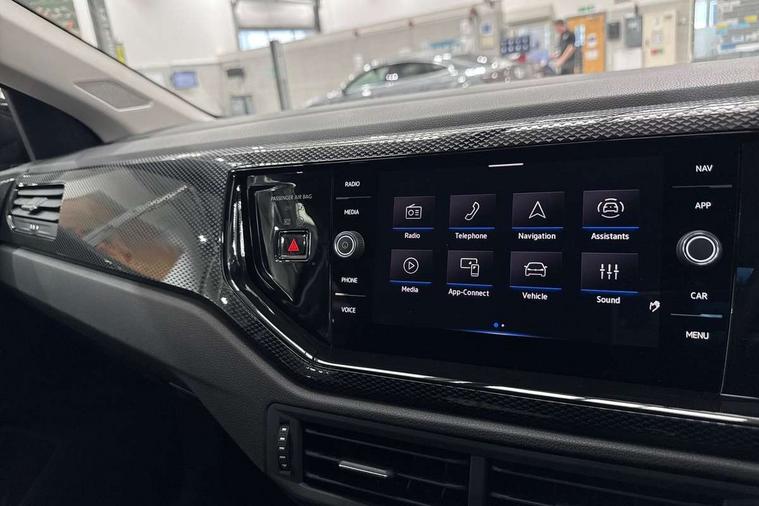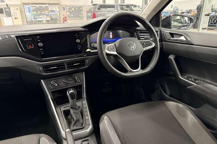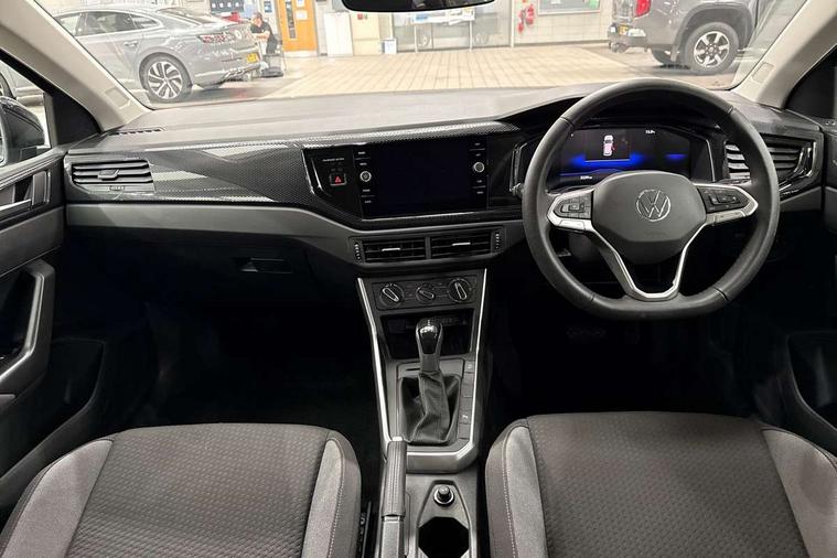 Advanced driver attention and drowsiness monitor, Bluetooth mobile phone interface, Dynamic road sign display, Emergency call service, Multifunction front facing camera for distance control, Park distance control, Power assisted speed sensitive steering, Predictive adaptive cruise control without follow-to-stop and speed limiter, Preparation for navigation system with media and internet package, Preparation for We connect and We connect plus, Rear view camera, Speedo and rev counter, electronic odometer, trip, service interval display and exterior temperature gauge, Standard rear axle, Travel Assist - Lane keeping system and traffic jam assist, Travel assist including emergency assist, Trip computer, Warning signal and warning light for front and rear seatbelts not fastened, Washer fluid level indicator, Wireless app connect, Front wheel drive, Rear shock absorpion, Start-stop system with battery regeneration (recuperation - energy recovery during braking), DAB Digital radio, Diversity antenna for FM reception, Front and rear 6 speakers, Automatic dimming interior rear view mirror, Automatic headlight control with LED separate daytime running lights with coming/leaving home function, Body colour bumpers with chrome inserts, Body colour door handles, Body colour door mirrors, Electric front windows, Engine badge deletion, Headlight range adjustment, Heat insulating and laminated safety glass windshield, LED Headlights, LED rear combination lamps, Power folding adjustable/heated exterior mirrors and front passenger exterior mirror lowering function, Rain sensor, Rear electric windows, Rear fog light, Rear side wing doors, Rear tinted glass from B-pillar backwards approx 65% tinted, Rear windscreen washer and wiper with interval delay, Third brake light, 12V power socket in centre console, 2 front and 2 rear reading lights with switch off delay and dimmer, 2 USB-C ports in the front, 2 USB-C charging sockets on the center console in the rear, 3 rear head restraints, 60/40 split folding rear seat and rear seat bench not split, Ceramique roof lining, Chrome plated radiator grille inserts, air vent surrounds and light switch surrounds, Door and side trim panel, Driver and front passenger seat height adjustment, Driver/passenger sunvisors with illuminated vanity mirrors, Front centre armrest, Front seat backrest storage pockets, Front standard seats, Handbrake lever handle in leather, Hartley/Thomas cloth upholstery, Headliner in recycled material, Isofix child seat preparation easy-fit (for two outer rear seats, and front passenger seat) compatible with I-size, Leather trimmed gear knob, Luggage compartment cover, Luggage compartment lighting, Removable luggage compartment floor, Single front passenger seat, Standard climatic zones, Standard pedal cluster, Three spoke leather wrapped multifunction steering wheel with shifting paddles, Light and vision pack - Polo, 3 point height adj front seatbelts + pretensioners, 3 point seat belt for centre rear seat, 3 point seatbelts, outer rear with ECE lable, ABS, Driver and front passenger airbag with front passenger airbag deactivation, Drivers and front passengers safety optimised head restraints, ESC (Electronic stability control) + EDL (Electronic Differntial lock) and ASR (Traction control), Extended and predictive pedestrian/ cyclist protection, Front assist with autonomous emergency braking (for Adaptive Cruise Control ACC up to 130 mph), Front curtain and side airbags with center airbag, Front disc brakes, Hill hold control, Manual child lock in rear doors, Rear drum brakes, Single tone horn, Tyre pressure loss indicator, Alarm with interior protection, Anti-theft alarm system with interior monitoring, backup horn, and towing protection, Anti-theft wheel bolts, Electronic engine immobiliser, Lava stone black gloss/matt decorative inserts in dash and front door panels, 16" Torsby alloy wheels, Low rolling resistance tyres,