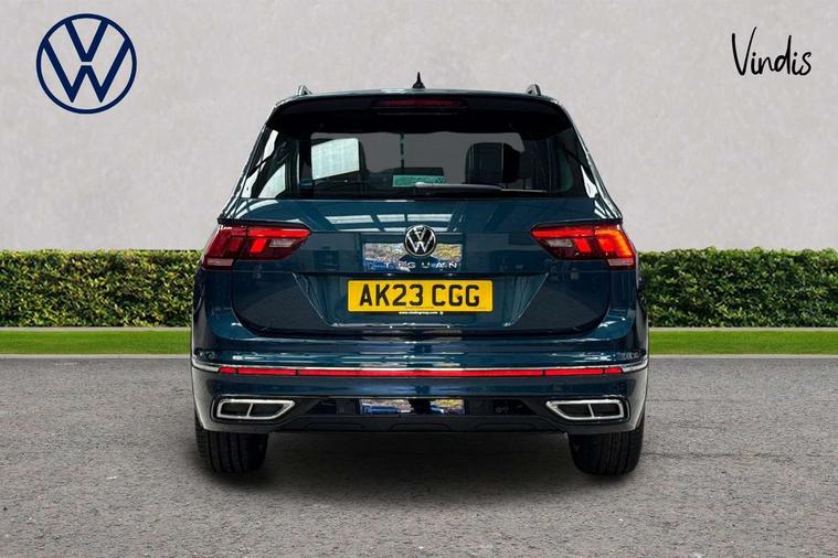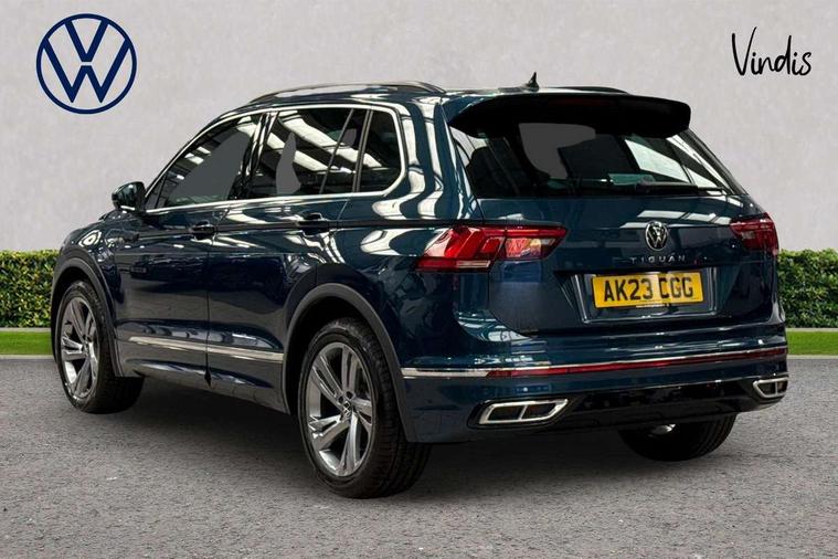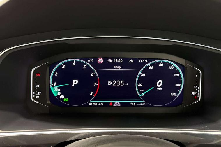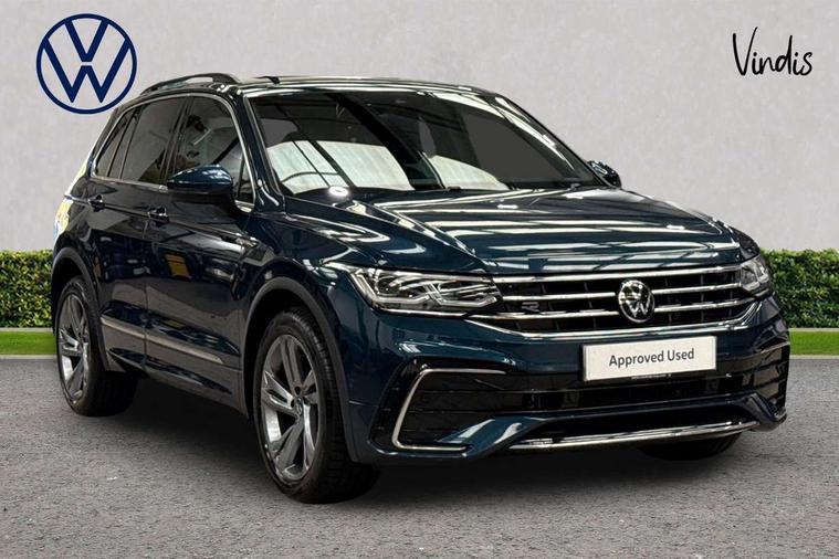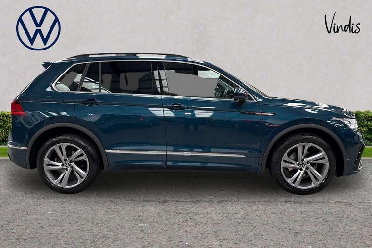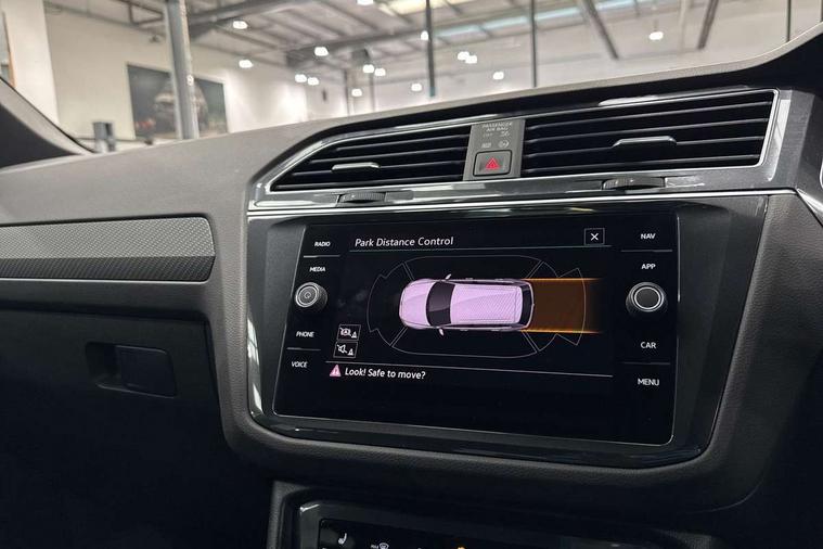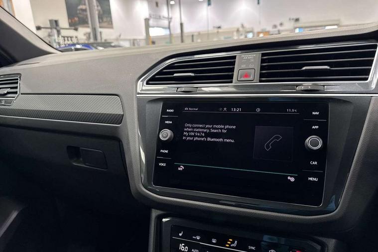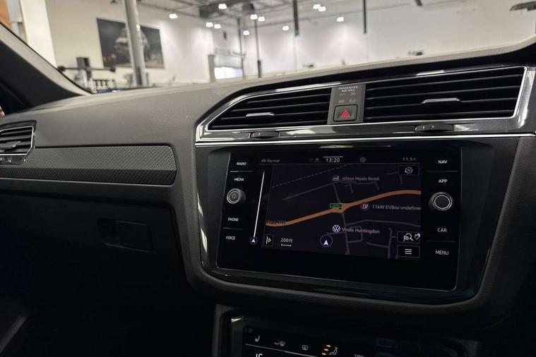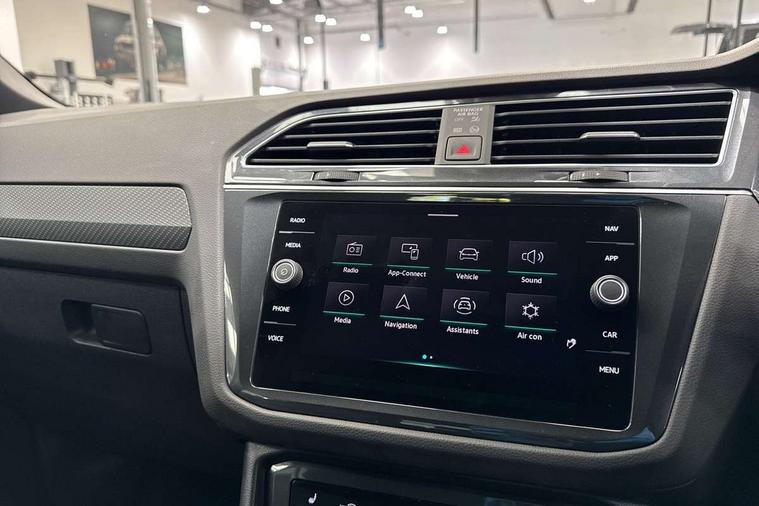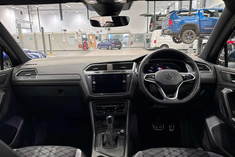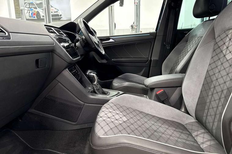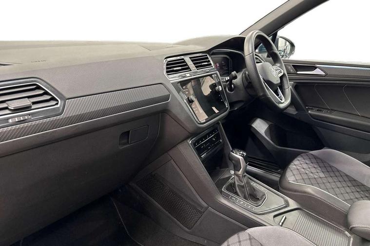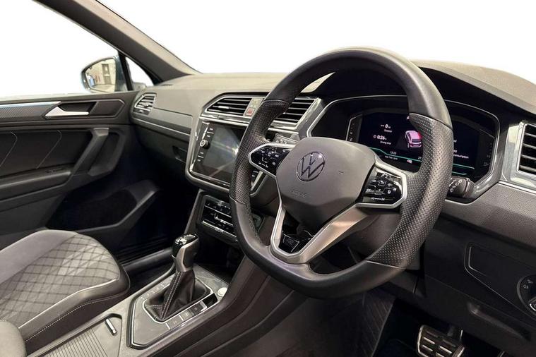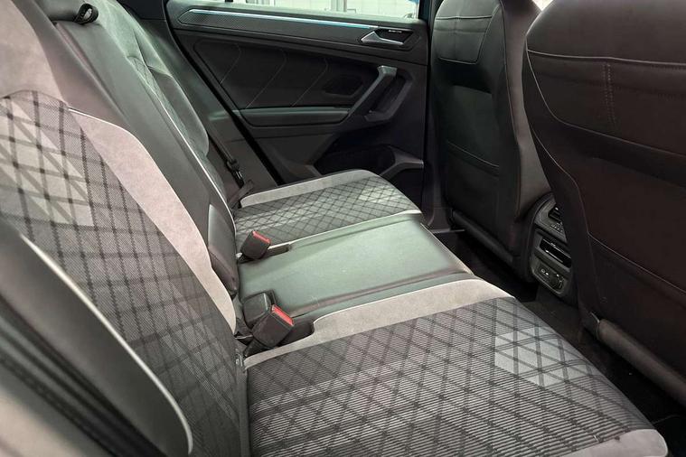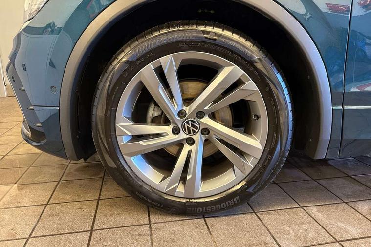 Adaptive cruise control ACC stop and go including speed limiter, App-Connect incl. App-Connect Wireless for Apple CarPlay and Android Auto, Bluetooth phone integration system, Comfort drive travel assist, Digital cockpit pro, Driver alert system, Driver profile selection, Dynamic road sign display, eCall emergency call system, Electromechanical speed sensitive power steering, Emergency assist, Front and rear parking distance sensors, Instrument cluster mph speedometer Great Britain, Lane keeping system Lane Assist, Lights on warning, Multifunction front facing camera, Outside temperature display, Premium multifunction display with multi colour display, Preparation for subsequent activation Navigation feature Discover Media includes Streaming and Internet, Remote control boot opening, Rev counter, Service interval indicator, Speed limit display, Start/stop system with regenerative braking, Tailgate/trunk lid unlocking from outside, Trip computer, Warning sound and light for doors and tailgate open, Battery regeneration during braking, Sports suspension, 8 Speakers, Digital radio reception DAB+, Diversity antenna for FM reception, Radio, Auto dimming interior rear view mirror, Automatic headlight control system, Body colored bumpers in R-Line style, Body colored exterior mirror housings, Body colour door handles, Chrome moldings on the side windows, Coming/leaving home lighting function, Dynamic headlight range control, Front and rear electric windows, Heated rear window, High level 3rd brake light, Laminated safety glass windshield, heat and sound insulating, LED headlamps with LED separate daytime running light and dynamic cornering light, LED rear combination lamps, LED rear number plate lights, License plate carrier in front and rear, Poor weather light and cornering light, Power adjustable, folding and heated door mirrors with surround lighting, front passenger exterior mirror lowering function, Privacy glass for rear side windows and rear window, R Line body kit, R Line side sills, Rain sensor, Rear exhaust tailpipe, Rear fog lamp, Rear side wing doors, Rear spoiler in R style, Rear windscreen washer and wiper with interval delay, Side and rear windows in heat insulating glass, Trailer Stability Programme, Unique R Line badging, Windscreen wipers/ intermittent wipe + 4 position delay, 12V outlet in center console rear and in luggage compartment, 12V outlet in front and tray, 2 LED front reading lights, 2 LED rear reading lights, 3 bench rear seats in 2nd row, 3 rear headrests, Air Care Climatronic 3 zone automatic climate control with enhanced air filter and controls in the rear, Art Velours greyson sports cloth upholstery, Backrest release for left front seat, Black headlining, Brushed stainless steel pedals and footrest, Carpet mats in front and rear with decorative stitching in Gray, Climate control unit rear with touch function, Door and side trim panel in foam film, insert in leatherette, Driver + front passenger lumbar support, Front footwell illumination, Front scuff plates in aluminum with R-Line logo, Front seats head restraints (x-adjustment), Height adjustable front seats, Height/reach adjust steering wheel, Isofix Preparation 2 Rear child seats, Leather gear knob, Rear bench seat asymetrically split folding, longitudinally movable and folding with load-through hatch and center armrest, Remote unlocking for rear seat backrest, Single front passenger seat, Sun visors with illuminated vanity mirrors, Top front comfort seats, Winter pack - Tiguan, 3 point seat belt for centre rear seats, 3 point seat belts with seat belt pretensioners for the outer rear seats, Curtain airbags for front and rear passengers, Driver/Front Passenger airbags, Drivers knee airbag, Electronic parking brake with auto hold, Electronic Stability Control with driver steering recommendation, ABS, ASR, EDL, EDTC and trailer stabilization, Front assist with autonomous emergency braking (for Adaptive Cruise Control ACC up to 130 mph), Front disc brakes, Front passenger airbag deactivation, Front side airbags, Height adjustable front 3 point seatbelts + pretensioners, Manual child proof rear door locks, Pedestrian monitoring system, Proactive passenger protection system in combination with front assist, Rear disc brakes, Two tone horn, Tyre pressure loss indicator, Warning sound and light for front seat belts if unfastened, Warning triangle, Anti theft alarm system with interior monitoring, backup horn and towing protection, Anti theft wheel bolts, Electronic engine immobiliser, Keyless locking and starting system keyless access with safelock, Chrome elements on the mirror switch power window switches and door pulls, Decorative inserts Carbon Gray for dashboard and front door trim panels, Interior door handle in matte chrome, 19" Valencia alloy wheels with AirStop tyres, Tool kit, Tyre mobility kit Includes 12V compressor and tyre sealant,