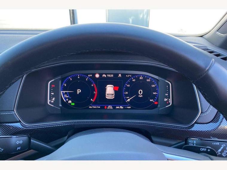 'Lights On' Reminder warning buzzer, 10.25" Digital cockpit pro, Advanced driver attention and drowsiness monitor, Car information display, Driver profile selection including ECO function, Dynamic road sign display, E-Sim card for online connectivity, eCall emergency call system, Front and rear parking sensors, Front assist, forward collision warning, autonomous emergency braking and speed limiter, Low washer fluid warning light, Mobile phone interface with inductive charging, Multifunction computer with visual gear change recommendation for fuel consumption, Multifunction front facing camera for distance control, Operating permit alteration, Power assisted steering, Predictive adaptive cruise control, Preparation for navigation system with media and internet package, Preparation for We connect and We connect plus, Semi-automated driving assistance, travel assist including lane keeping system Lane Assist and emergency assisst, Side assist, Speedo, rev counter, electronic odometer, trip, service interval display, exterior temperature and fuel gauge, Warning sound and light for doors and tailgate open, Warning sound and light for front seatbelts unfastened, Wireless Car net app connect with Apple CarPlay, combined functionality of Apple CarPlay/Android Auto and MirrorLink, Wireless charging, Misfuel prevention device, Start-stop system with battery regeneration (recuperation - energy recovery during braking), 2 USB C ports in front, 2 USB charging sockets on the centre console in the rear charging capacity upto 45W, Diversity antenna for FM reception, Music playback - MP3, WMA and AAC files, Radio, Advanced high beam control dynamic light assist, Automatic dimming interior rear view mirror, Automatic hazard lights activation under emergency braking, Automatic headlight control and coming home and leaving home feature, Black roof rails, Body colour door handles, Body coloured bumpers, Cornering light and poor weather light, Dynamic headlight range control, Electric folding door mirror, adjustable, heated with front passenger exterior mirror lowering function, Exterior mirror housings in black, Exterior mirrors convex on the left and aspherical on the right, Front and rear electric windows, Front door sill protectors with R-Line logo, Galvanised body, Heat insulating and laminated safety glass windshield, Heat insulating darkened glass in side and rear windows, Illuminated molding between headlamps, IQ.Light LED matrix headlamps with LED separate daytime running light, LED rear tail lights with dynamic turn signal, LED third brake light, Lower door sills and door pillars in black, Privacy glass for rear side windows and rear window, Rain sensor, Rear fog light on one side, reversing light on both sides, Rear side wing doors, Rear window aerial, Rear window wiper with intermittent control, Reflectors in all doors, Scuff plates, Tailgate with integrated roof spoiler, 12V Accessory socket in centre console, 2 Front and rear reading lights incorporating LED technology, 3 rear head restraints, 3 seat bench in 2nd row, 60/40 split folding rear seat backrest, Air care climatronic 2 zone air conditioning system, Ambient lighting and logo projection, Brushed stainless steel pedals, Chrome plated radiator grille inserts, air vent surrounds and light switch surrounds, Cloth upholstery, Comfort front sport seats, Door and side trim panel, Driver and front passenger sunvisor with vanity mirror, Dust and pollen filter, Front + rear carpet mats, Front centre armrest, Front centre armrest with storage compartment, Front footwell illumination, Front seat back storage pockets, Glove compartment door with light, Heated front seats, Heating and fresh air system with 4 stage blower, Height/reach adjust steering wheel, Instrument lighting white adjustable panel illumination, Interior light with switch off delay and dimmer, Isofix anchors for child seats on outer rear seats and front passenger seats, Leather gearshift handle, Leather wrapped multifunction steering wheel with paddle shift, Luggage compartment floor, Luggage compartment lighting, Manual front seats with height adjustment, Padded dashboard, Removable luggage compartment cover, Single front passenger seat, Storage compartment in drivers and front passengers door, Titanium black roof lining, Unsplit sliding rear seat bench, Without drawers under front seats, 3 point outer rear seat belts with ECE label, 3 Point seatbelt for centre rear seat, Anti-lock Braking System (ABS) with Hydraulic Brake Assist (HBA), Automatic post collision braking system, Disc brakes in front, Disc brakes in rear, Driver and front passenger safety-optimised head restraints, Drivers and Front Passengers airbags with front passengers airbag deactivation switch, ESC with EDL and ASR (traction control), Extended and predictive pedestrian/cyclist protection, Front and rear passenger curtain airbag system including front side airbags, Height adjustable front 3 point seatbelts + pretensioners, Hill start assist, Pre crash preventive occupant protection, Proactive passenger protection system in combination with front assist, Rear door child safety locks, Rigid safety cell with front and rear crumple zones, Single tone horn, Tyre pressure loss indicator, Volkswagen roadside assistance, Alarm with interior protection, Anti theft alarm system, Anti theft wheel bolts, Electronic engine immobiliser, Remote tailgate unlocking using key fob, Black decorative trims, Titanium Black Decorative inserts - R Line, 18" York alloy wheels in black, Low rolling resistance tyres,