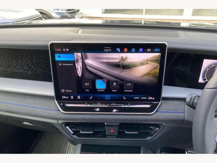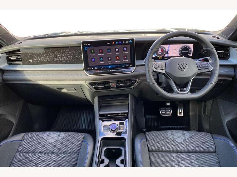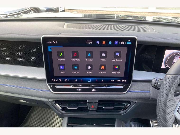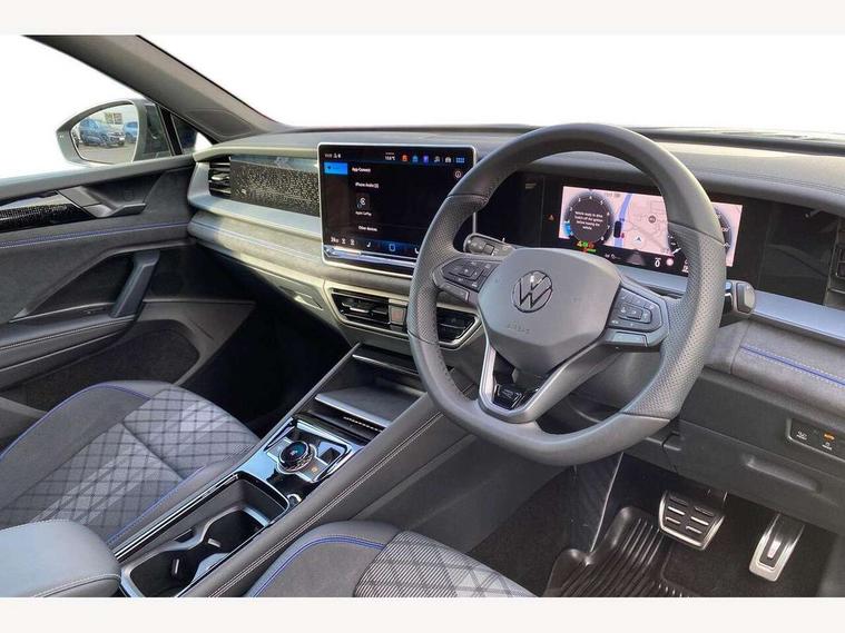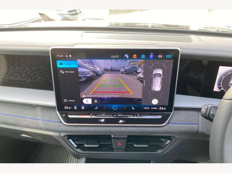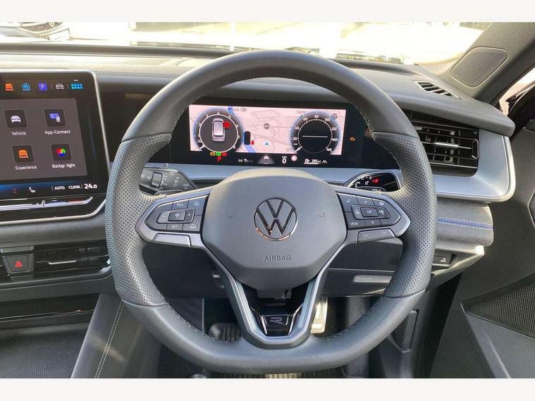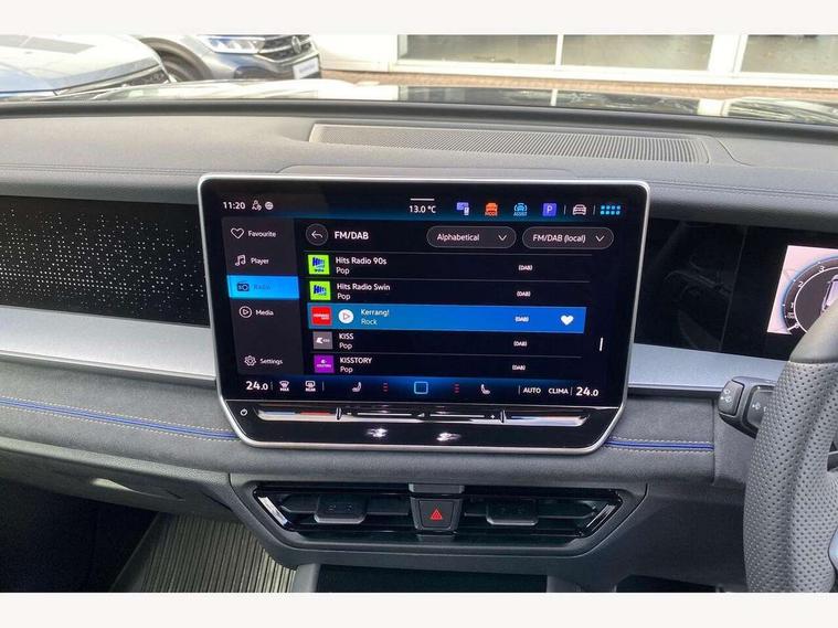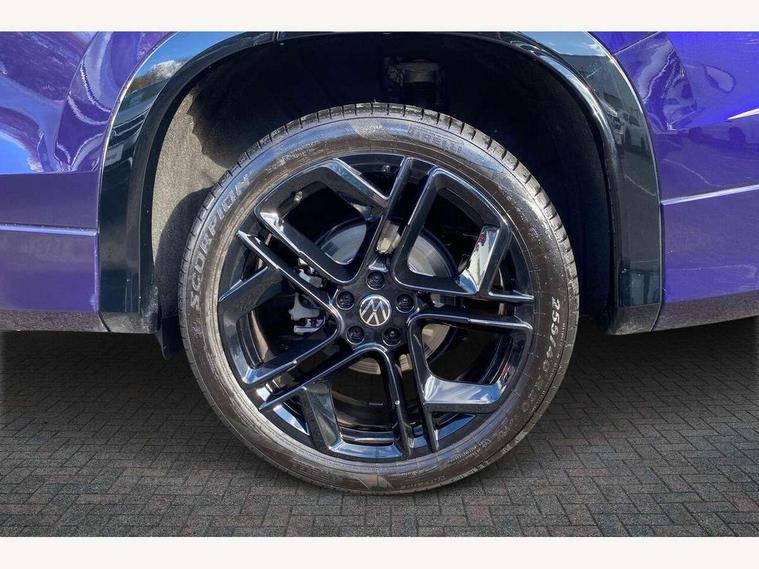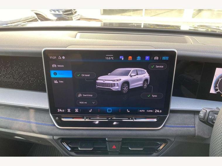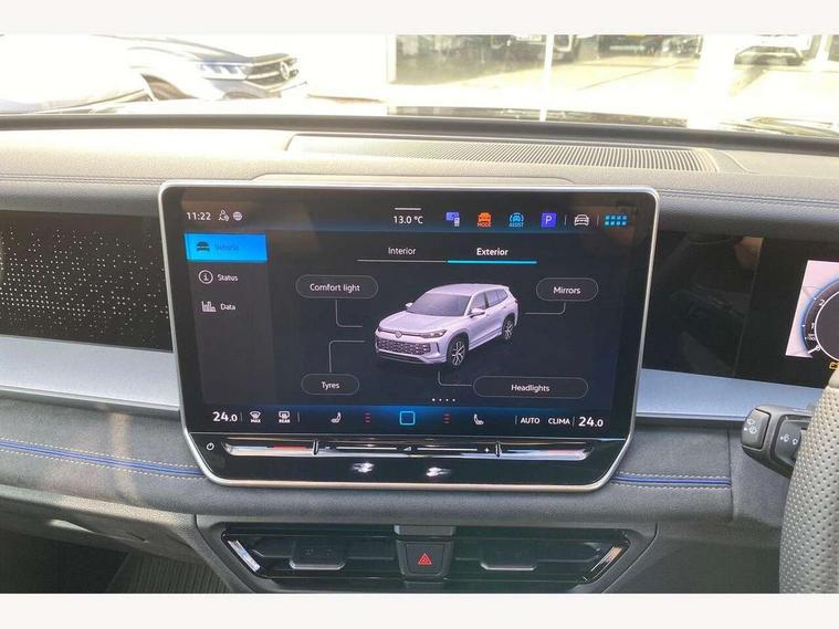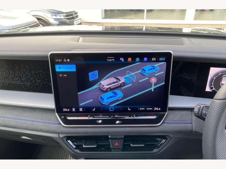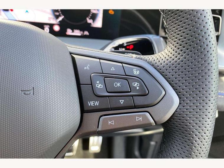 Adaptive cruise control (ACC), Digital Cockpit Pro - 10.25" high resolution dash display screen with customisable menus and information, Driver alert system, Driver attention monitoring system, Dynamic road sign display, E-Sim card for online connectivity, eCall emergency call system, Lane change system, Side assist, Rear traffic alert and Exit warning system, Multifunction front facing camera, Oncoming vehicle braking when turning including swerve support, Start/stop system with regenerative braking, Voice activation spoken voice commands for telephone and navigation system, Warning signal and warning light for front and rear seatbelts not fastened, Wireless App-Connect, Front wheel drive, Digital radio reception (DAB), Diversity antenna for FM reception, Air intake with Chrome trim, Auto dimming interior rear view mirror, Automatic headlight control system, Body colour door handles, Chrome moldings on the side windows, Coming/leaving home lighting function, Dynamic headlight range control with dynamic cornering light, Exterior mirrors convex on the left and aspherical on the right, Heat insulating glass in side and rear windows, Illuminated Volkswagen logo rear with animation, Laminated safety glass winshield, heat insulating, LED 3rd brake light, LED separate signature day time running light, Puddle lights, Rain sensor windscreen wipers, Rear fog light on one side, reversing light on both sides, Rear side wing doors, Rear wiper, Reverse activated passenger's door mirror, Surround lighting with welcome light, Volkswagen logo in front, illuminated lighting animation with wake up/goodbye scenario and illuminated door handles, 10 colour interior ambient lighting, 12V outlet in center console rear and in luggage compartment, 3 rear headrests, 3 rear seat bench in 2nd row, backrest split folding with centre armrest and 2 seats in 3rd row of seats, Black roof lining, Brushed stainless steel pedals, Carpet mats, front and rear, Centre console with illuminated storage compartment with sliding cover and two drinks holders, Chrome elements on the mirror switch and power window switches and door pulls, Door and side trim panel insert in Art velour, Flat luggage compartment floor, Front centre armrest, Front scuff plates in alumium, ISOFIX anchors for child seats on outer rear seats and front passenger seat compatible with i-Size, Mechanical rear seat release, Power adjustable lumbar support in front, Single front passenger seat, Sports comfort seats in front, Sun visors with illuminated vanity mirrors, 3 Point seat belts in front with pretensioners, 3 point seatbelts in outer rear with ECE label, Autonomous emergency braking front assist with pedestrian and cyclist monitoring, Driver and front passenger airbag with front passenger airbag deactivation, Electronic parking brake with auto hold, First aid kit with warning triangle and safety vest, Front and rear curtain airbags, Front and rear side airbags, Front centre airbag, Front disc brakes, Hill start assist, Rear disc brakes, Two tone horn, Decorative material set R-Line, Interior door handle in matte chrome,