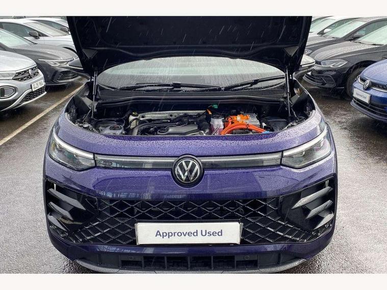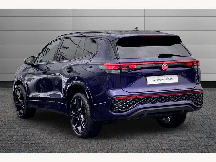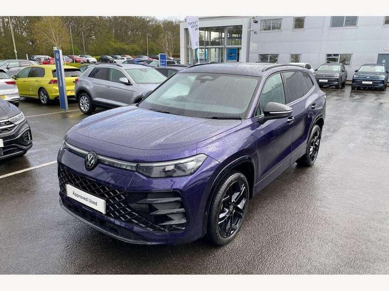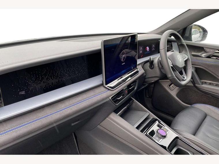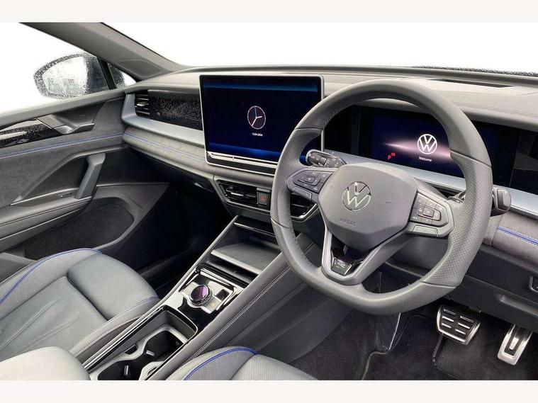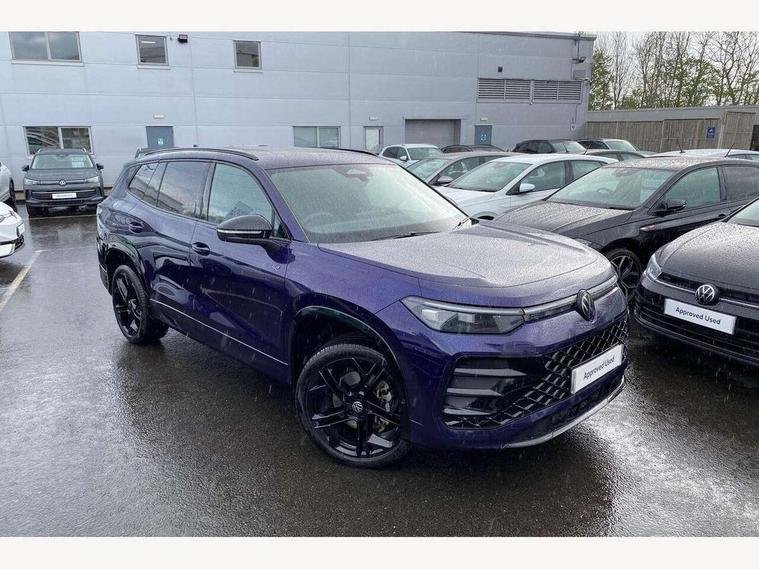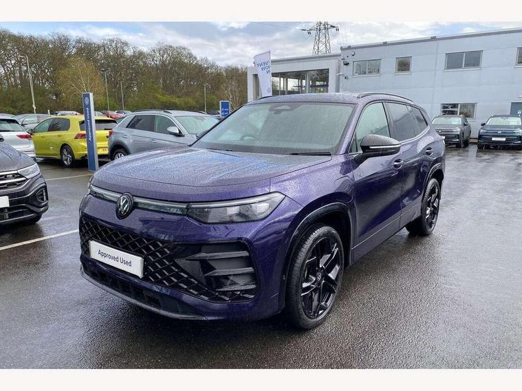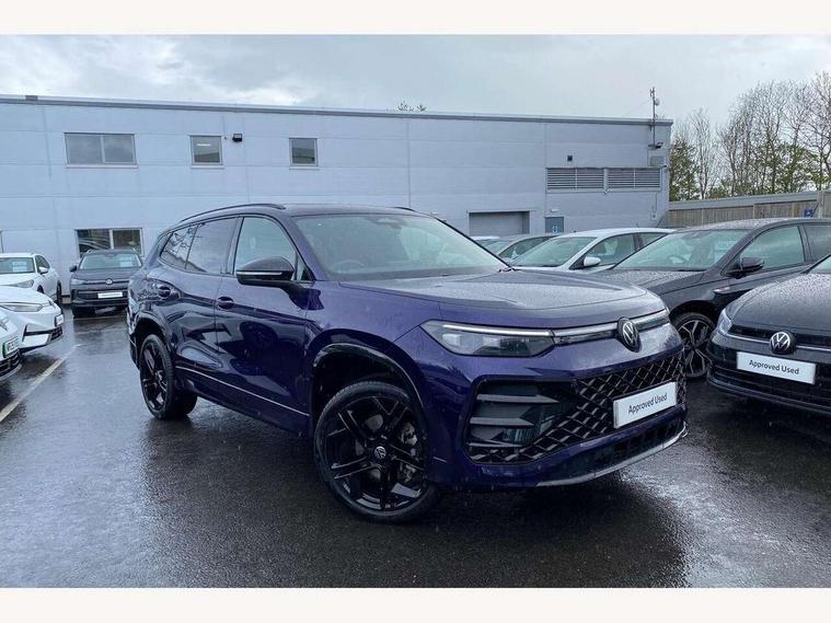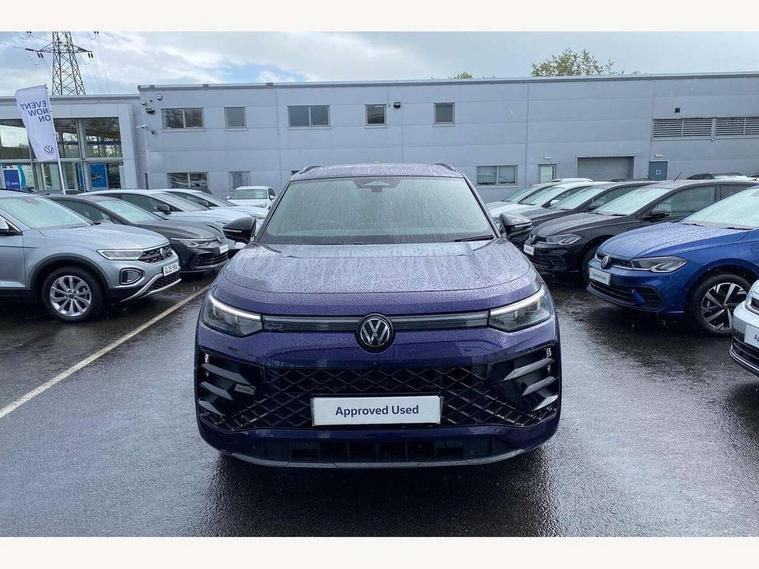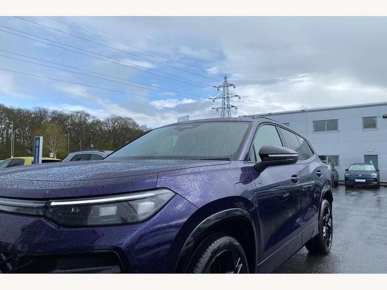 Adaptive cruise control (ACC), Digital Cockpit Pro - 10.25" high resolution dash display screen with customisable menus and information, Driver alert system, Driver attention monitoring system, Dynamic road sign display, E-Sim card for online connectivity, eCall emergency call system, Lane change system, Side assist, Rear traffic alert and Exit warning system, Multifunction front facing camera, Oncoming vehicle braking when turning including swerve support, Progressive steering, Start/stop system with regenerative braking, Voice activation spoken voice commands for telephone and navigation system, Warning signal and warning light for front and rear seatbelts not fastened, Wireless App-Connect, Adaptive chassis control DCC pro includes driving mode selection, Charging cable Mode 2 Type 2 / G (10A), Charging cable Mode 3 Type 2 / 3 (16A), Front shock absorption G08, Front wheel drive, Rear shock absorption, Digital radio reception (DAB), Diversity antenna for FM reception, Air intake with Chrome trim, Auto dimming interior rear view mirror, Automatic headlight control system, Body colour door handles, Chrome moldings on the side windows, Coming/leaving home lighting function, Dynamic headlight range control with dynamic cornering light, Exterior mirrors convex on the left and aspherical on the right, Heat insulating glass in side and rear windows, Illuminated Volkswagen logo rear with animation, Laminated safety glass winshield, heat insulating, LED 3rd brake light, LED separate signature day time running light, Puddle lights, Rain sensor windscreen wipers, Rear fog light on one side, reversing light on both sides, Rear side wing doors, Rear wiper, Reverse activated passenger's door mirror, Surround lighting with welcome light, Tilting and sliding panoramic sunroof with rear panoramic sunroof, Volkswagen logo in front, illuminated lighting animation with wake up/goodbye scenario and illuminated door handles, 10 colour interior ambient lighting, 12V outlet in center console rear and in luggage compartment, 3 rear headrests, 3 rear seat bench in 2nd row, split folding, longitudinally movable and folding with load-through hatch, Black roof lining, Brushed stainless steel pedals, Carpet mats, front and rear, Centre console with illuminated storage compartment with sliding cover and two drinks holders, Chrome elements on the mirror switch and power window switches and door pulls, Door and side trim panel insert in Art velour, Flat luggage compartment floor, Front centre armrest, Front scuff plates in alumium, ISOFIX anchors for child seats on outer rear seats and front passenger seat compatible with i-Size, Mechanical rear seat release, Power adjustable lumbar support in front, Single front passenger seat, Sports comfort seats in front, Sun visors with illuminated vanity mirrors, Comfort package with park assist pro - Tayron, 3 Point seat belts in front with pretensioners, 3 point seatbelts in outer rear with ECE label, Autonomous emergency braking front assist with pedestrian and cyclist monitoring, Driver and front passenger airbag with front passenger airbag deactivation, Electronic parking brake with auto hold, First aid kit with warning triangle and safety vest, Front and rear curtain airbags, Front and rear side airbags, Front centre airbag, Front disc brakes, Hill start assist, Rear disc brakes, Two tone horn, Decorative material set R-Line, Interior door handle in matte chrome,