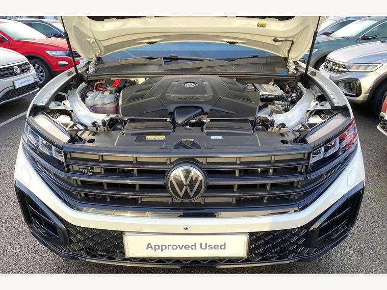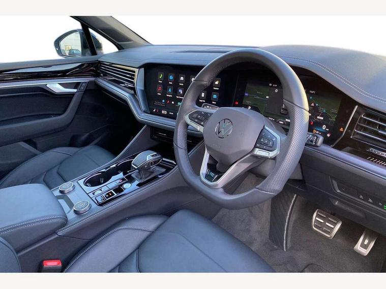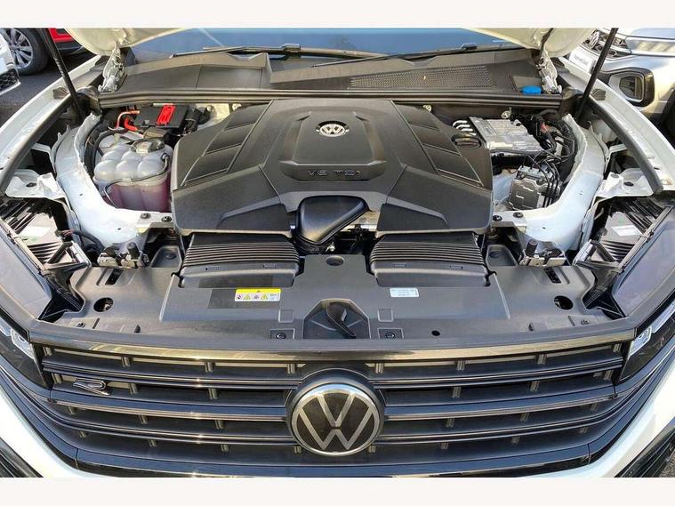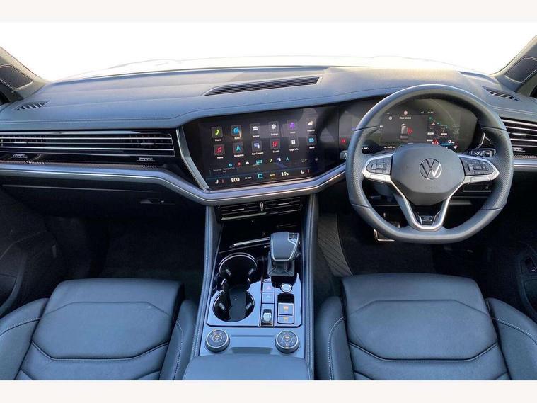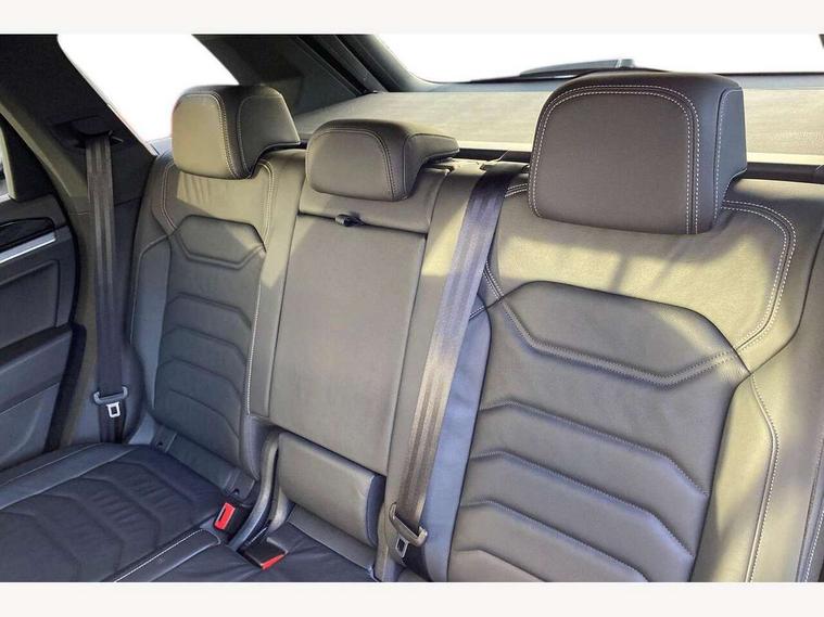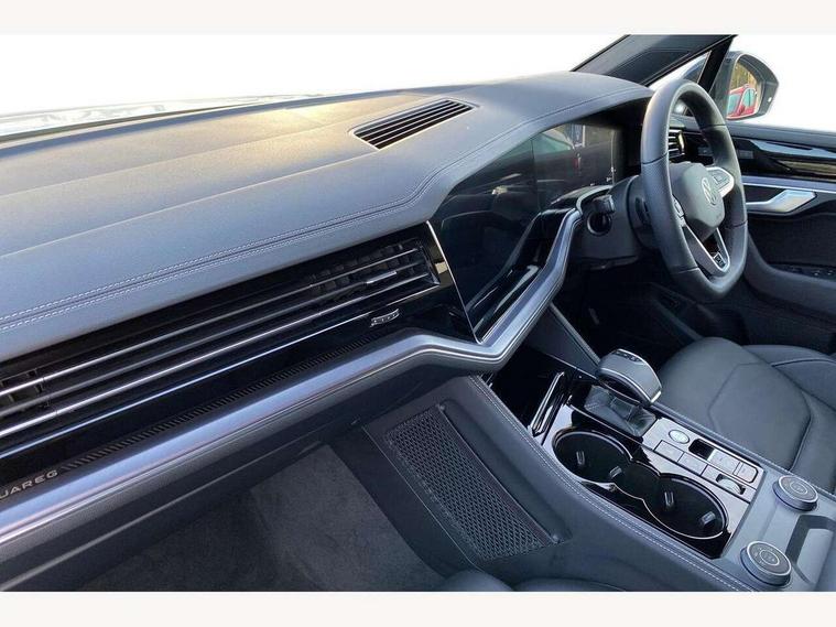 15" Screen Top infotainment system Premium (MIB3), Adaptive cruise control, Advanced driver attention and drowsiness monitor, Driver profile selection, Dynamic road sign display, E-Sim card for online connectivity, eCall emergency system, Innovision cockpit, Intelligent park assist, Mobile phone interface with inductive charging, Multi-colour Active Info display, Park Assist - Sensor controlled steering aid to assist parallel or bay parking, PAS, Warning signal and warning light for front and rear seatbelts not fastened, Wireless app connect, Adaptive chassis control, DAB Digital radio, Diversity antenna for AM/ FM reception, We Connect and We Connect Plus functionality, Automatic coming/leaving home lighting function, Automatic headlights, Black door mirrors, Black style comfort bumpers, Dynamic headlight range control with dynamic cornering light, Electric front tilt/slide panoramic sunroof and fixed rear sunroof, Electrically power adjustable, heated, folding, auto dimming, front passenger exterior door mirror lowering function, External USB type C socket and charging sockets, Gloss black roof rails, HD LED Matrix beam plus digital headlight projection with variable light distribution, Headlight washers, Highway light, LED 3rd brake light, LED daytime running lights, LED rear combination lamp with variable lighting functions and special styling, Poor weather light, Rain sensor, Rear exhaust tailpipe, Rear fog light with back up light on both sides, Rear light bar and illuminated logo, Rear side wing doors, Rear wiper, Stainless steel door sill protection, 12V socket in centre console, 3 rear headrests, 3 seat bench in 2nd row, 4 zone climate control, Airbag label on sun visor and B-pillar, Brushed stainless steel pedals, Double sun visors with illuminated vanity mirrors, Front + rear carpet mats, Front centre armrest, Leather wrapped multifunction sports steering wheel, heated, with touch control and shift paddles, Mechanical rear seat release, Power adjustable lumbar support in front, Power seats in front, right side with memory features and seat cushion depth adjustment, Rear seat backrest and split folding with center armrest, Single front passenger seat, Memory pack plus - Touareg, 3 point seatbelts, outer rear with ECE lable, ABS, Child locks on rear doors, Curtain airbags, Driver and front passenger safety-optimised head restraints, Driver/Front Passenger airbags, Extended pedestrian protection measures, Front assist, Front seat side impact airbags, Generative braking with start and stop system, Height adjustable 3 point front seatbelts with pre tensioners, Passenger airbag deactivate switch, Three 3 point rear seatbelts, Two tone horn, Tyre pressure loss indicator, Warning triangle and first aid kit, Alarm system with interior protection, Easy open and close sensor controlled luggage compartment opening and closing with remote unlocking, Keyless Access Keyless locking and starting system with SAFELOCK, Aluminium decorative inserts, Black decorative trims, Gloss black decorative inserts in centre console, Tool kit,