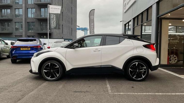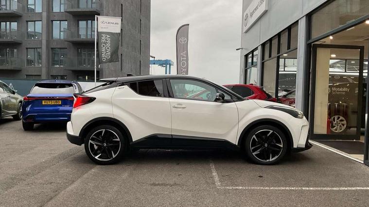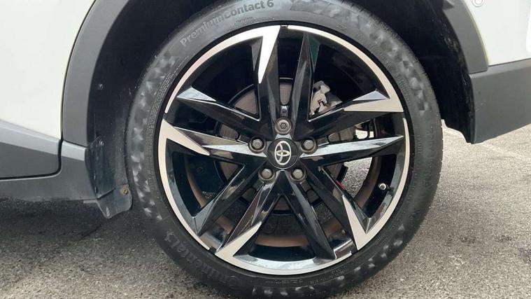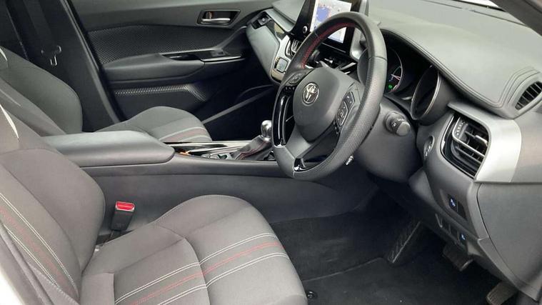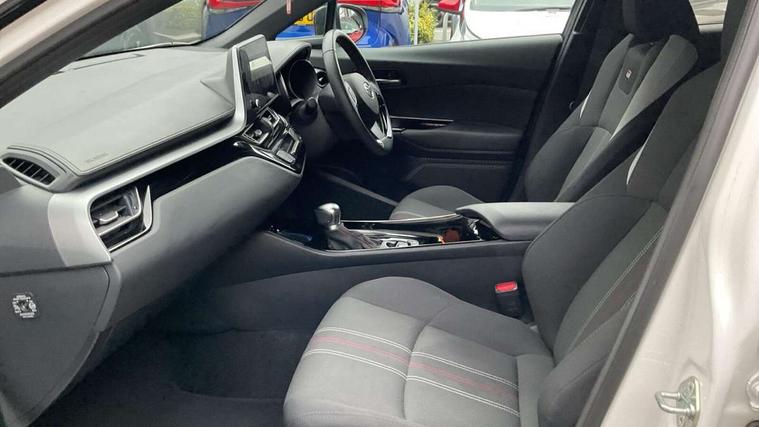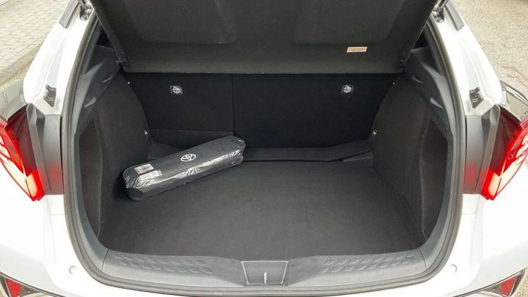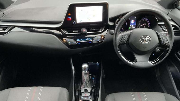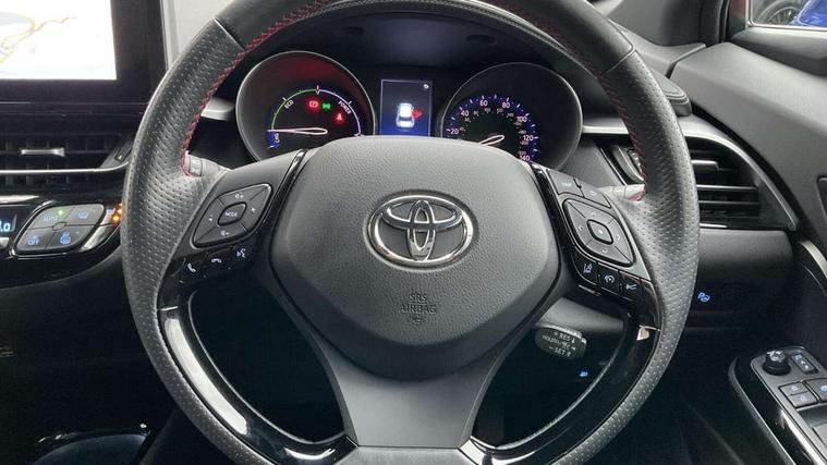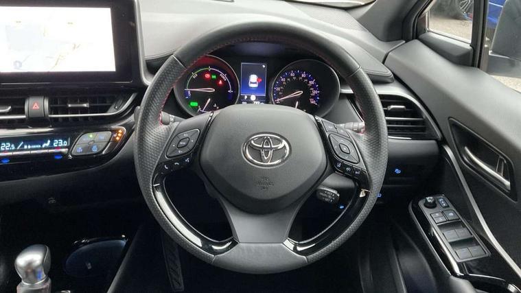 4.2" coloured TFT screen for multi-information display, Adaptive cruise control, Bluetooth connectivity, E-call, Electric power steering, Hybrid system indicator, Lane departure alert with steering control, Remote boot door release in cabin, Remote boot door release in key, Reversing camera, Road sign assist - RSA, Simple Intelligent parking assist, Touch 2 Go navigation system, Trip computer, Voice recognition, Vehicle Stability Control (VSC), 6 speakers, AM/FM radio, DAB Radio (Digital Audio Broadcasting), Toyota touch 2 multimedia system with 8" display, USB connector, Wi-fi connectivity, Adaptive front light system, Adaptive LED Headlights, Anti-jam protection on power windows, Auto high beam, Auto up and down function on all power windows, Automatic headlight levelling, Automatic headlights, Automatic headlights cut-off, Black and body coloured rear bumper, Black upper front grille, Body colour door handles, Body colour door mirrors, Body coloured front bumper, Boot door release with push button, Chrome front lower bumper, Electric heated door mirrors, Follow me home headlights, Front and rear power windows, Front spoiler lip in black, Honeycomb lower front grille, LED daytime running lights, LED fog lights, LED front light guide, LED High mounted stop light, LED rear brake lights, LED rear combination lights, Noise reduction layer on front windows and windscreen, Power adjustable door mirrors, Privacy glass, Rain sensor, Rear sequential indicators, Rear side wing doors, Rear spoiler, Rear tailgate, Rear window defogger, Rear window wiper, Shark fin antenna, UV-filter on driver and passenger windows, UV-filter on rear windows, 12v power outlet - front, 3 rear headrests, 3 seat bench in 2nd row, 3 spoke perforated leather steering wheel, 60/40 split folding rear seat, Adjustable rear headrests, Adjustable speed limiter switch on steering wheel, Assist grips front and centre pillar, Audio and telephone switches on steering wheel, Black front door assist grips, Blue ambient lighting on front cup holders, Blue ambient lighting on front doors, Boot light, Chrome interior door handles, Driver and front passenger personal light, Driver and front passenger Whiplash Injury Lessening seats, Driver and passenger seatback pockets, Dual zone automatic air conditioning, Fabric upholstery, Floor mats, Front cupholders, Front head restraints, Front sports seats, Glovebox with internal light, Hard tonneau cover, Heated driver and front passenger seats, Hooks for luggage holding net, Humidifying Nanoe air purifier, Illuminated entry system, Isofix attachments on outer rear seats, Leather gearshift, Light on driver sun visor, Light on passenger sun visor, Manual telescopic steering wheel, Manual tilt steering wheel, Manually height adjustable driver seat, Manually height adjustable front passenger seat, Manually reclining driver seat, Manually reclining front passenger seat, Manually sliding driver seat, Manually sliding front passenger seat, Microphone on front personal light, Mirror on driver sun visor, Mirror on passenger sun visor, Multimedia switches on steering wheel, Pollen filter, Power adjustable lumbar support on driver seat, Shopping bag hooks, Single front passenger seat, Slow opening on lower glovebox, Voice recognition switch on steering wheel, Tech with parking sensor pack - C-HR, 16 Disk front wheel brake, 3x3 point rear seatbelts, ABS+EBD+Brake assist, Electronic parking brake, Front and rear seatbelt reminder, Front passenger airbag on/off switch, Hill start assist control (HAC), Pre collision system with pedestrian detection, Pre-tensioners and force limiters, Rear door child safety locks, SRS Airbags - Driver + Front passenger, front side, front and rear curtain and driver's knee airbags, Toyota safety sense, Tyre pressure monitoring system, Acoustic vehicle alert system (AVAS), Glass-breaking alarm sensors, Immobiliser, Intrusion alarm, Intrusion sensor, Motion sensor alarm, Power door locks, Power passenger window lock, Remote central locking, Black lower dashboard, Black upper dashboard, Piano black console, Silver deco line on upper dashboard, 19" Black machined alloy wheels, Tyre repair kit,