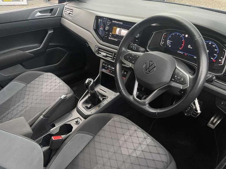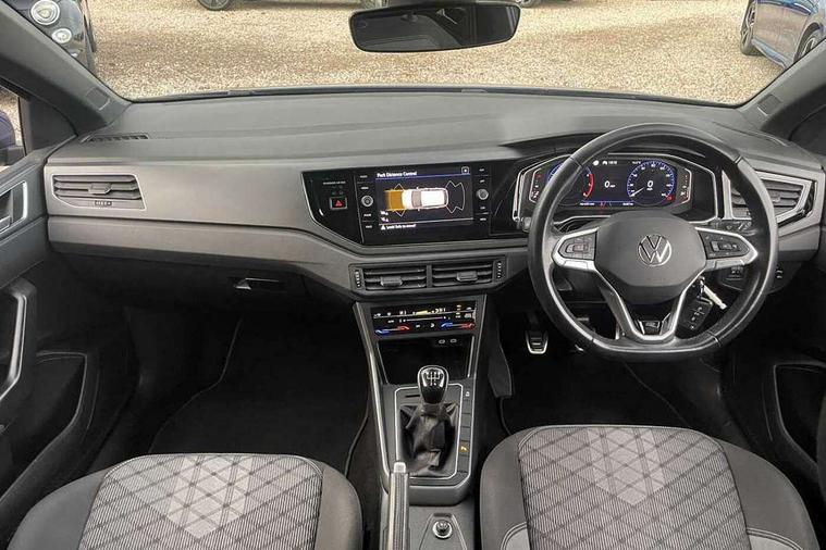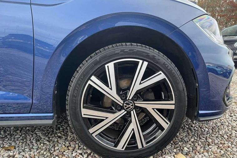 Adaptive cruise control without follow-to-stop and speed limiter, Bluetooth mobile phone interface, Digital Cockpit Pro with 10.25" Display, Driver alert system, Dynamic road sign display, Emergency call service, Power assisted speed sensitive steering, Preparation for We connect and We connect plus, Speedo and rev counter, electronic odometer, trip, service interval display and fuel gauge, Standard rear axle, Travel Assist - Lane keeping system and traffic jam assist, Travel assist including emergency assist, Trip computer, Warning signal and warning light for front and rear seatbelts not fastened, Washer fluid level indicator, Wireless app connect, Front wheel drive, Rear shock absorpion, Start-stop system with battery regeneration (recuperation - energy recovery during braking), DAB Digital radio, Diversity antenna for FM reception, Front and rear 6 speakers, Body colour bumpers, Body colour door handles, Body colour door mirrors, Electric front windows, Front scuff plates with R-Line logo, Heat insulating darkened glass in side and rear windows, Heat insulating glass windscreen, Power folding adjustable/heated exterior mirrors and front passenger exterior mirror lowering function, Rear electric windows, Rear fog light, Rear side wing doors, Rear tinted glass from B-pillar backwards approx 65% tinted, Rear windscreen washer and wiper with interval delay, Third brake light, 12V power socket in centre console, 2 USB-C ports in the front, 2 USB-C charging sockets on the center console in the rear, 3 rear head restraints, 60/40 split folding rear seat and rear seat bench not split, Air care climatronic air conditoning system with active combination filter and 2-zone temperature control, Black roof lining, Ceramique headliner, Chrome plated radiator grille inserts, air vent surrounds and light switch surrounds, Door and side trim panel, Driver and front passenger seat height adjustment, Driver/passenger sunvisors with illuminated vanity mirrors, Front + rear carpet mats, Front centre armrest, Front footwell illumination, Front seat backrest storage pockets, Front sports comfort seats, Handbrake lever handle in leather, Isofix child seat preparation easy-fit (for two outer rear seats, and front passenger seat) compatible with I-size, Karoso artvelours cloth upholstery, Leather trimmed gear knob, LED interior light with switch off delay and dimmer, 2 reading lights front and rear, Luggage compartment cover, Luggage compartment floor, Luggage compartment lighting, Lumbar adjustment for front seats, Multifunction steering wheel, Single front passenger seat, Stainless steel pedals, Standard pedal cluster, Light and sight pack - Polo R-Line/Black Edition, 3 point height adj front seatbelts + pretensioners, 3x3 point rear seatbelts, ABS, Driver and front passenger airbag with front passenger airbag deactivation, Drivers and front passengers safety optimised head restraints, ESC (Electronic stability control) + EDL (Electronic Differntial lock) and ASR (Traction control), Extended and predictive pedestrian/ cyclist protection, Front curtain and side airbags with center airbag, Hill hold control, Manual child lock in rear doors, Single tone horn, Tyre pressure loss indicator, Alarm with interior protection, Anti-theft alarm system with interior monitoring, backup horn, and towing protection, Anti-theft wheel bolts, Electronic engine immobiliser, Chrome applications on rotary light, mirror adjustment, window regulator switches, outlet with frame in black, Dark grey anodised matt decorative inserts in dash and front door panels, Low rolling resistance tyres,
