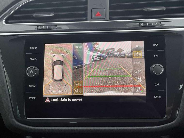 Adaptive cruise control ACC stop and go including speed limiter, App-Connect incl. App-Connect Wireless for Apple CarPlay and Android Auto, Bluetooth phone integration system, Distance control assist, Driver alert system, Driver profile selection, Dynamic road sign display, eCall emergency call system, Electromechanical speed sensitive power steering, Engine start/stop button, Lane keeping system Lane Assist, Lights on warning, Multifunction front facing camera, Outside temperature display, Premium multifunction display with multi colour display, Remote control boot opening, Rev counter, Revision / skills operating concept travel assistant, Service interval indicator, Speed limit display, Start/stop system with regenerative braking, Trip computer, Warning sound and light for doors and tailgate open, Battery regeneration during braking, Diesel particulate filter, Misfuel prevention device for diesel engine, Selective Catalytic Reduction, XDS electronic differential lock for improved traction and handling, 4 X 20 watt output, 8 Speakers, Diversity antenna for FM reception, Radio, SD card slot, Simultaneous pairing of 2 compatible mobile devices, SMS functionality - read, compose and send SMS messages using touch-screen display, Title and cover art display, USB C ports, Auto dimming interior rear view mirror, Automatic headlight control system, Body colour door handles, Chrome moldings on the side windows, Coming/leaving home lighting function, Dynamic headlight range control, Front and rear electric windows, Heated rear window, High level 3rd brake light, Laminated safety glass windshield, heat and sound insulating, LED headlamps with LED separate daytime running light and dynamic cornering light, LED rear combination lamps, LED rear number plate lights, License plate carrier in front and rear, Poor weather light and cornering light, R Line body kit, R Line side sills, Rain sensor windscreen wipers, Rear exhaust tailpipe, Rear fog lamp, Rear side wing doors, Rear spoiler in R style, Rear windscreen washer and wiper with interval delay, Side and rear windows in heat insulating glass, Trailer Stability Programme, Unique R Line badging, Windscreen wipers/ intermittent wipe + 4 position delay, 12V outlet in center console rear and in luggage compartment, 12V outlet in front and tray, 2 cup holders in front, 2 LED front reading lights, 2 LED rear reading lights, 3 bench rear seats in 2nd row, 3 rear headrests, 4 load lashing points, 40:20:40 split folding rear seats, Air Care Climatronic 3 zone automatic climate control with enhanced air filter and controls in the rear, Backrest release for left front seat, Black headlining, Brushed stainless steel pedals and footrest, Carpet mats in front and rear with decorative stitching in Gray, Climate control unit rear with touch function, Door and side trim panel in foam film, insert in leatherette, Front centre armrest, Front footwell illumination, Front seats head restraints (x-adjustment), Height adjustable front seats, Height/reach adjust steering wheel, Instrument lighting white adjustable panel illumination, Interior light with delay, Isofix Preparation 2 Rear child seats, Leather gear knob, Lockable cooled glovebox, Luggage compartment lighting, Luggage net, Rear bench seat asymetrically split folding, longitudinally movable and folding with load-through hatch and center armrest, Remote unlocking for rear seat backrest, Removable luggage cover, Removable rear headrests, Safety optimised front head restraints, Single front passenger seat, Sliding/reclining rear seats, Standard rear seat release, Storage compartment in driver's door, Storage compartment in passenger's door, Storage compartment in rear doors, Storage compartments in luggage area left and right, Storage tray on dashboard, Sun visors with illuminated vanity mirrors, Top front comfort seats, Variable boot floor, height adjustable and removable, Driver assistance pack plus - Tiguan DSG, 3 point seat belt for centre rear seats, 3 point seat belts with seat belt pretensioners for the outer rear seats, Active bonnet, Curtain airbags for front and rear passengers, Driver/Front Passenger airbags, Drivers knee airbag, Electronic parking brake with auto hold, Electronic Stability Control with driver steering recommendation, ABS, ASR, EDL, EDTC and trailer stabilization, Front assist with autonomous emergency braking (for Adaptive Cruise Control ACC up to 130 mph), Front disc brakes, Front passenger airbag deactivation, Front side airbags, Height adjustable front 3 point seatbelts + pretensioners, Hill hold control, Manual child proof rear door locks, Pedestrian monitoring system, Power assisted brakes, Proactive passenger protection system in combination with front assist, Rear disc brakes, Rigid safety cell with front and rear crumple zones, Two tone horn, Warning sound and light for front seat belts if unfastened, Anti theft alarm system with interior monitoring, backup horn and towing protection, Anti theft wheel bolts, Electronic engine immobiliser, Tool kit,