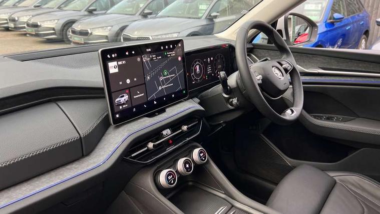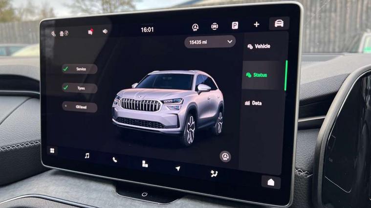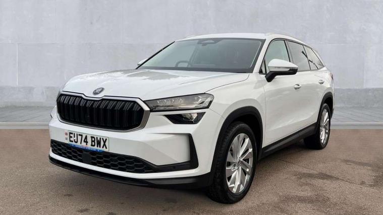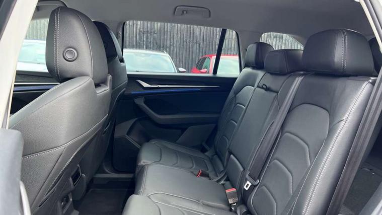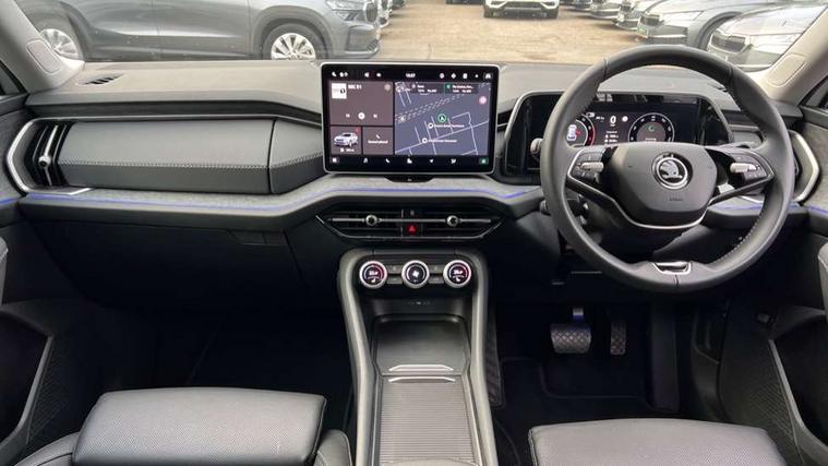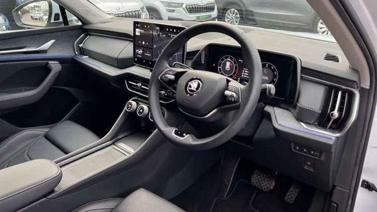 13" satellite navigation touchscreen display, Blind spot detection with door exit warning, Bluetooth system, ChatGPT functionality, Drive mode selector, Driver alert with fatigue sensor, Driver drowsiness alert system, Dry display cleaner, e call+, Front cross traffic assist, Lane assist, PAS, Rear traffic assist, Tailgate unlocking from outside, Traffic sign recognition, USB C Port x 2 in front centre console, Virtual Cockpit - 10.25" digital display, Voice control system, Wireless charging for two smartphones (15W) with cooling function, Wireless SmartLink for Apple CarPlay and Android Auto, Stop/start function, 2x USB-C in the rear, DAB Digital radio, Aero front windscreen wipers with intermittent function, Auto dimming rear view mirror, AWL (all weather lighting) and all weather light with cornering function, Black wheel arch surrounds, Body colour bumpers, Body colour door mirrors and handles, Cornering light and poor weather light, Electric folding /adjustable/separted heated/folding door mirrors, auto dimming with boarding sports and memory function, Electric front and rear windows, Exterior black decorative trims, Heat insulating glass in windshield, Heated rear window, Ice scraper in fuel tank cap, Invisible tailpipe, LED daytime running lights, LED rear fog light, LED third brake light in rear spoiler, Light assistant with automatic headlight control and coming home feature, Logo projection in door mirrors, Privacy glass, Rear side wing doors, Rear spoiler, Rear window wiper, Red decorative strip between rear LED lights, Safety reflectors on front and rear doors, Window control switches with black trim, Windscreen wipers with rain sensor, Without engine designation, 1.5l bottle holder points in all door, 12V socket in boot, 1x centre rear reading light, 2 seat bench in 3rd row, 3 configurable smart dials with 32mm coloured display, 3 seat bench in 2nd row, 4 foldable roof handles with rear coat hooks, Ambient interior lighting - Dashboard, front-door stowage compartments, front and rear door panels and footwell lighting, Automatic gear selector on steering wheel, Chrome interior door handles, Driver/front passenger reading lights, Fabric headlining, Fixed bench 40:60:40 split folding backrests, Front and rear floor mats, Front centre armrest with jumbo box storage compartment, cup holder and 12V socket, Front courtesy lights, Height adjustable front headrests, Isofix child seat fittings in outer middle row rear seats and front passenger with top tether, Manually adjustable steering column, Pollen filter, Rear centre armrest with cupholders, Rear seat boot backrest release, Retractable luggage compartment cover, Single front passenger seat, Sliding trunk cover, Small Bags on the inner sides of the front backrests, Storage pocket including mobile phone pockets on the backs of the front seats, Sunvisors with illuminated vanity mirrors, Three rear height adjustable headrests, Ticket holder on A Pillar, Tri zone climate control, Umbrella in door panel x1 made from sustainable materials, Upper and lower glovebox with card holder and coin compartment, USB C port by rear view mirror for charging only (15W), Exterior styling pack - Kodiaq, Auto door release and activation of warning lights in the event of an accident, Driver and front passenger airbag with knee airbag and front passenger airbag deactivation, Electric child locks, Electronic parking brake, ESC (incl. ABS+EMD+MSR+ASR+EDL+HBA+DSR+RBS+ESBS+MCB+TSA+XDS), Front assist with braking reaction to vehicles, pedestrians and cyclists, Front disc brakes, Fuel cut off safety device, Height adjustable front 3 point seatbelts + pretensioners, Hill hold control, Junction assist with automatic emergency braking, Rear disc brakes, Safety vest holder in door, Seat belt reminder for all seats, Three point rear seat belts, Two tone horn, Tyre pressure monitor, Anti-theft wheel bolts, Immobiliser, Remote central locking with 2 keys, Breakdown kit,