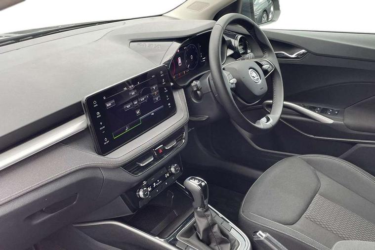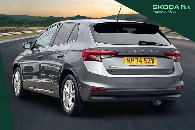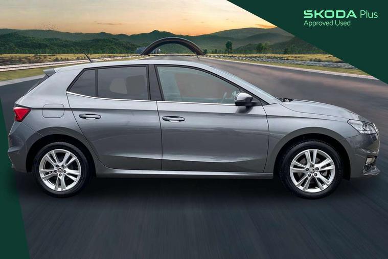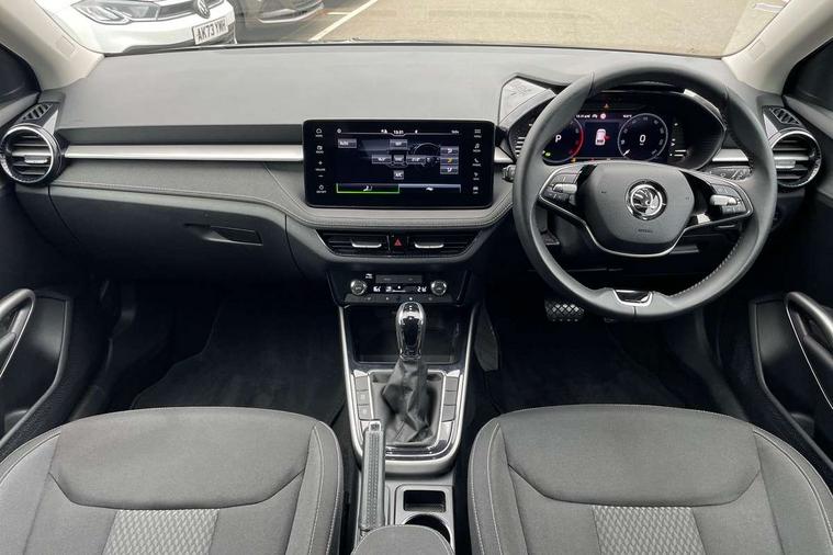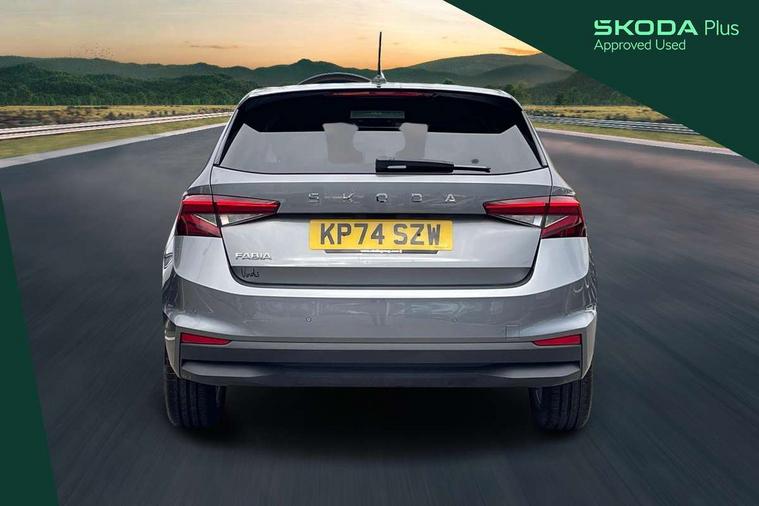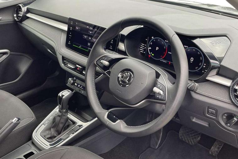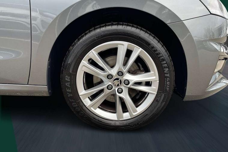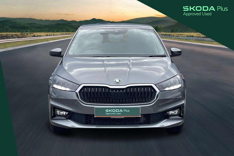 Advanced driver attention and drowsiness monitor, Bluetooth connection, Electromechanical power steering, Exterior temperature gauge, Service interval indicator, Traffic sign recognition, Virtual cockpit with 10.25" colour display, Wireless SmartLink for Apple CarPlay and Android Auto, 6 Speakers (4 in front and 2 in rear), 9.2" colour display skoda navigation system with voice control and web radio, Auxiliary socket for external MP3 player, DAB digital radio reception, Auto dimming rear view mirror, Body colour door mirrors, Body coloured bumpers, Chrome window surround, Door mirror integrated indicators, Front and rear electric windows, Front window wiper intermittent control, Headlight range control - Automatic, Ice scraper in fuel cap, LED daytime running lights with coming and leaving home feature, LED rear lights, Privacy glass, Rear LED fog light, Rear side wing doors, Rear window wiper with washing nozzles, Roof mounted spoiler, SKODA tailgate lettering in chrome, Third brake light, 2 reading lights in front and 2 reading lights in rear, 3 rear headrests, Backrest split and folding, Central console with removable cup holder and storage box, Chrome handbrake release button, Comfort seats, Door sills with fabia badging, Dual zone air conditioning with climatronic electronic control, Fabric upholstery, Front centre armrest, Gearshift knob/handle in leather, Hand brake lever handle in leather, Height adjustable front headrests, Height adjustable front seats, Height adjustable steering wheel, ISOFIX and TopTether anchorage points to the outer rear seats, ISOFIX and TopTether on the front passenger seat, Luggage compartment lighting, Manually adjustable lumbar support in front seats, Metallic grey interior door handles, Pollen filter, Rear seat bench unsplit, Single front passenger seat, Storm grey headlining, Sun visors with mirror and airbag label on passenger side, Textile floor mats, Ticket holder, Umbrella in drivers door, 3-point height adjustable front seats belts with pretensioner and force limiter, Automatic warning lights in case of crash, Driver and passengers airbag with switch off function, e-Call+, ESC including ABS, MSR, ASR, EDS, HBA and XDS, Front and rear seat belt warning, FRONT ASSIST (AEB City and AEB Inter Urban), Front side airbags, Head airbags, Hill hold control, One tone horn, Pedestrian protection, Three rear 3-points safety seat belts with pretensioner and force limiter including stop function for outer rear seat belts, Tyre pressure monitoring system, Anti-theft alarm system including immobiliser, interior monitoring, backup horn, and towing protection, Central locking with radio remote control, interior controls, SAFE function and 2 foldable keys, Chrome edged air vents, Metallic grey central console cover, Metallic grey upper decorative trim, Satin black door and side trim panel in front, Textile microsuede grey lower decorative trim with art grey stitching, Anti-theft wheel bolts protection, Super-low rolling resistance tyres,