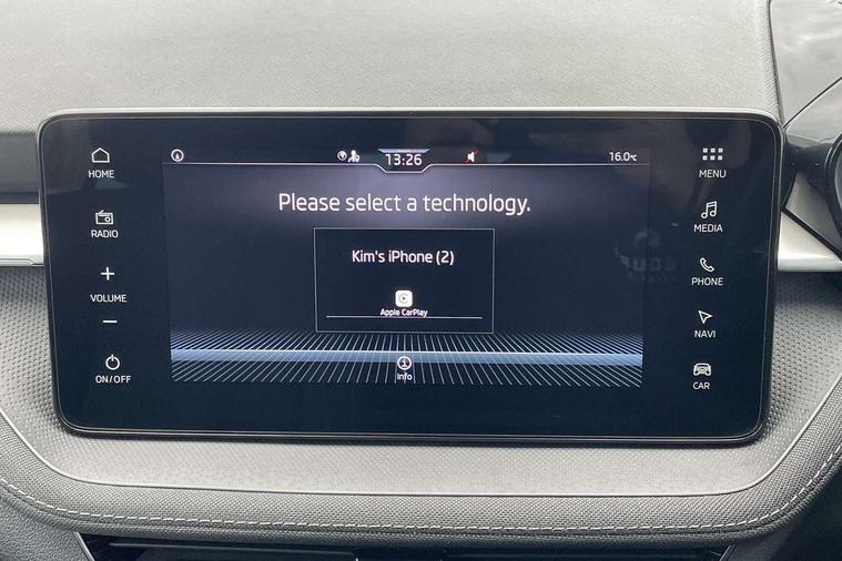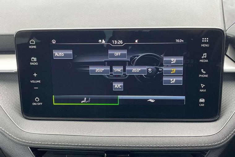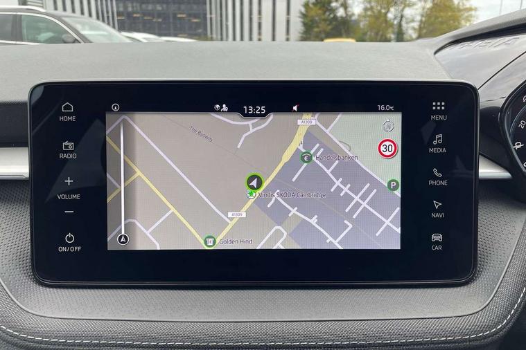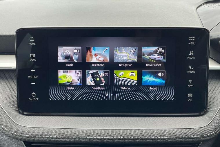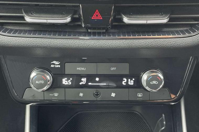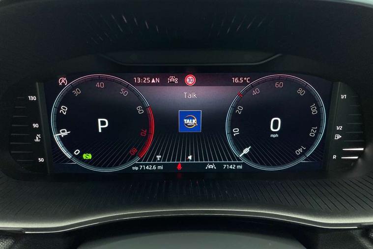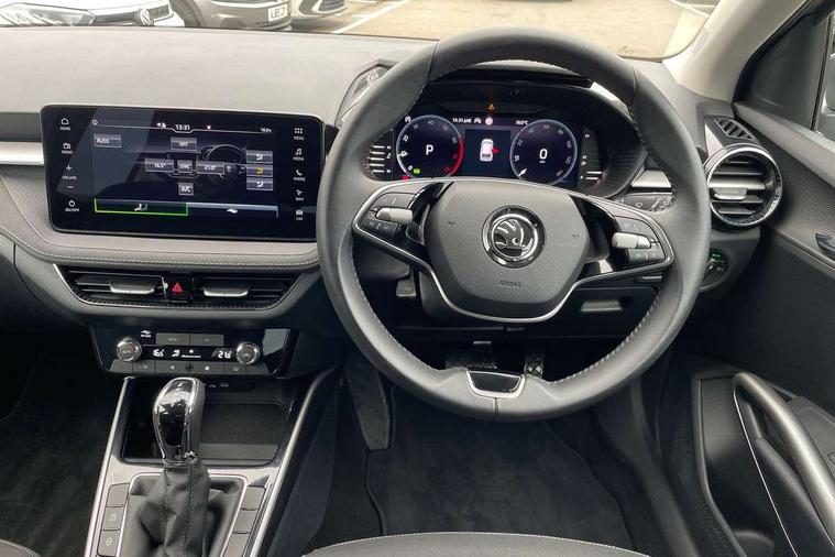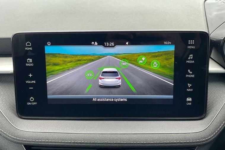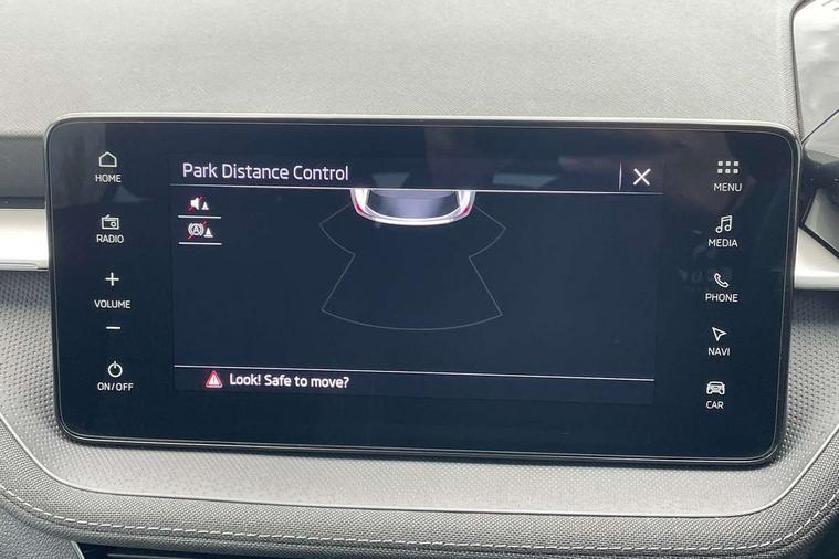 Advanced driver attention and drowsiness monitor, Bluetooth connection, Electromechanical power steering, Exterior temperature gauge, Service interval indicator, Traffic sign recognition, Virtual cockpit with 10.25" colour display, Wireless SmartLink for Apple CarPlay and Android Auto, 6 Speakers (4 in front and 2 in rear), 9.2" colour display skoda navigation system with voice control and web radio, Auxiliary socket for external MP3 player, DAB digital radio reception, Auto dimming rear view mirror, Body colour door mirrors, Body coloured bumpers, Chrome window surround, Door mirror integrated indicators, Front and rear electric windows, Front window wiper intermittent control, Headlight range control - Automatic, Ice scraper in fuel cap, LED daytime running lights with coming and leaving home feature, LED rear lights, Privacy glass, Rear LED fog light, Rear side wing doors, Rear window wiper with washing nozzles, Roof mounted spoiler, SKODA tailgate lettering in chrome, Third brake light, 2 reading lights in front and 2 reading lights in rear, 3 rear headrests, Backrest split and folding, Central console with removable cup holder and storage box, Chrome handbrake release button, Comfort seats, Door sills with fabia badging, Dual zone air conditioning with climatronic electronic control, Fabric upholstery, Front centre armrest, Gearshift knob/handle in leather, Hand brake lever handle in leather, Height adjustable front headrests, Height adjustable front seats, Height adjustable steering wheel, ISOFIX and TopTether anchorage points to the outer rear seats, ISOFIX and TopTether on the front passenger seat, Luggage compartment lighting, Manually adjustable lumbar support in front seats, Metallic grey interior door handles, Pollen filter, Rear seat bench unsplit, Single front passenger seat, Storm grey headlining, Sun visors with mirror and airbag label on passenger side, Textile floor mats, Ticket holder, Umbrella in drivers door, 3-point height adjustable front seats belts with pretensioner and force limiter, Automatic warning lights in case of crash, Driver and passengers airbag with switch off function, e-Call+, ESC including ABS, MSR, ASR, EDS, HBA and XDS, Front and rear seat belt warning, FRONT ASSIST (AEB City and AEB Inter Urban), Front side airbags, Head airbags, Hill hold control, One tone horn, Pedestrian protection, Three rear 3-points safety seat belts with pretensioner and force limiter including stop function for outer rear seat belts, Tyre pressure monitoring system, Anti-theft alarm system including immobiliser, interior monitoring, backup horn, and towing protection, Central locking with radio remote control, interior controls, SAFE function and 2 foldable keys, Chrome edged air vents, Metallic grey central console cover, Metallic grey upper decorative trim, Satin black door and side trim panel in front, Textile microsuede grey lower decorative trim with art grey stitching, Anti-theft wheel bolts protection, Super-low rolling resistance tyres,