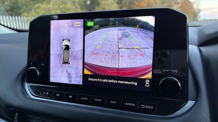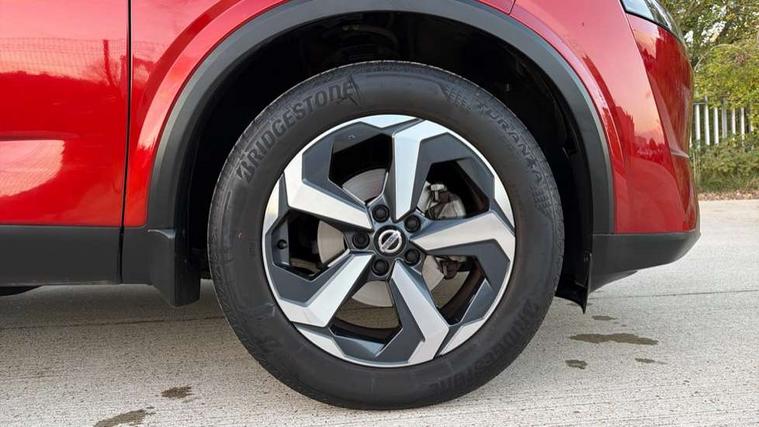 Android auto/Apple CarPlay (Wired), Blind spot warning, Drive modes (sport, normal, eco), Electric speed sensitive power steering, Emergency and breakdown call, Front and rear parking sensors, Full Digital 12.3" TFT Digital Combimeter, Google maps services - search, weather, 3D maps and Google street view, Idle stop/start system, Intelligent around view monitor, Intelligent Cruise control (ICC), Intelligent driver alert system, Intelligent forward collision warning, Intelligent lane intervention, Lane departure prevention, Lane departure warning system, Maximum speed limiter, Moving object detection, Nissan connect 12.3 inch touchscreen infotainment system, Nissan connect navigation, Push button starter, Rear cross traffic alert, Rear view camera, Remote control services - door locks, lights, horn and car locator, Telematics - notifications and connectivity services, TomTom live traffic services, Traffic sign recognition with legal speed adjustment, Trip computer, Virtual personal assistant and firmware over the air capability, Wireless apple carplay, 6 speakers, AM/FM audio system with DAB, Bluetooth audio streaming, Front USB connections (Type-A and Type-C), Rear USB charging only ports (Type-A and Type-C), Auto dimming rear view mirror, Auto rear wiper when reversing, Automatic hazard signal with emergency stop signal, Body colour mirror caps, Body coloured door handles, Bodyside mouldings, Chrome side window finisher, Door handle with button, Electric auto folding door mirrors, Electrically adjustable and heated door mirrors with LED turn indicator, Follow me home headlights, High beam assist, Intelligent auto headlights, LED daytime running lights, LED Headlights, LED rear lights, One touch front and rear electric windows with remote opening and closing, Partially body coloured bumpers, Privacy glass, Rear bumper with graphite insert, Rear reversing light (bulb lighting), Rear roof spoiler, Rear side wing doors, Rear styling plate, Shark fin antenna, Splash free rain sensing wipers, Super UV and infrared cut glass, Three blink turn signal, 12v power socket in dashboard and luggage, 2x Rear coat hooks, 3 bench rear seats in 2nd row, 3 rear headrests, 4 folding assist grip, 6 Luggage hooks - 4 on floor, 2 on side, 6-way manually adjustable driver's seat, 60/40 split folding rear seat bench, Ambient lighting around centre console, Centre console storage tray, Chrome interior door handles, Cloth monoform upholstery, Driver and front passenger sunvisors with illuminated vanity mirrors, Driver seat back pocket, Dual zone automatic climate control with pollen filter, Electrically adjustable lumbar support for driver, Front and rear door storage, Front centre console and armrest, Front cupholders x 2, Front door with bottle holders, Glovebox with light, Hard trunk cover, Height adjustable driver's seat, Height adjustable front headrests, Height adjustable passenger seat, Leather shift knob, Leather steering wheel, Luggage board system, Luggage space lighting, Manually adjustable passenger (slide recline + lifter), Multifunction steering wheel, Passenger seat back pocket, Rear armrest with 2 cupholders, Rear door bottle holders, Single front passenger seat, Soft PVC kneepad, Steering wheel switches, Sunglasses holder, Tilt/telescopic adjustable steering wheel, Two rear isofix child seat anchorage points with top tether, Welcome light and console tray ambient lighting, 3x3 point rear seatbelt pretensioners + load limiters, ABS with EBD and brake assist, Active brake limited slip, Auto hold function, Child locks on rear doors, Curtain and front side, far side airbags, Driver and passenger airbags, Driver, passenger and 2nd row rear seat belt reminder, Electronic parking brake, Front seatbelt pretensioners + load limiters, Height adjustable front seatbelts, Hill start assist, Intelligent blind spot intervention, Intelligent front emergency braking with pedestrian, cyclist recognition and junction assist, Intelligent rear automatic braking, Tyre pressure monitoring system, Vehicle dynamic control, Capless fuel filler, Engine immobiliser, Intelligent Key, Remote central door locking with deadlocking, Thatcham Cat.1 alarm, Interior instrumental panel B finisher, 18" Diamond cut alloy wheels, Tyre puncture repair kit,