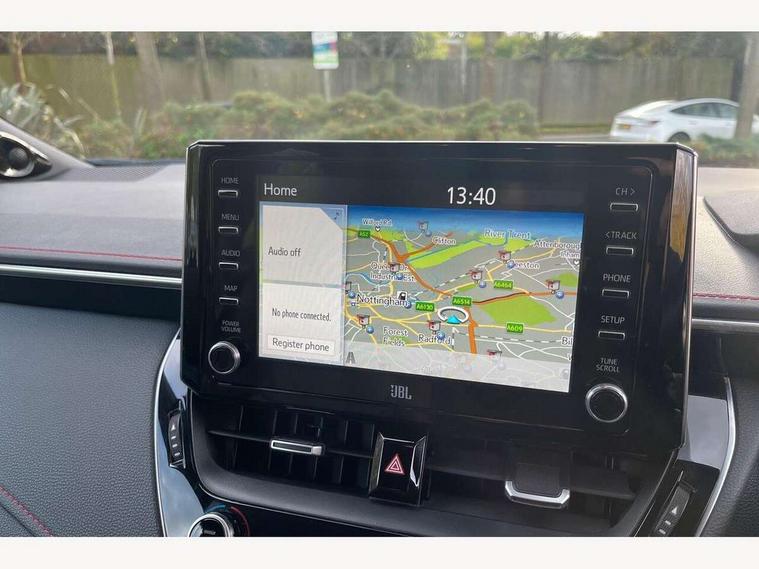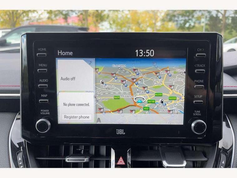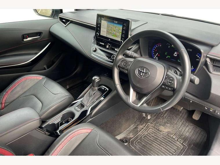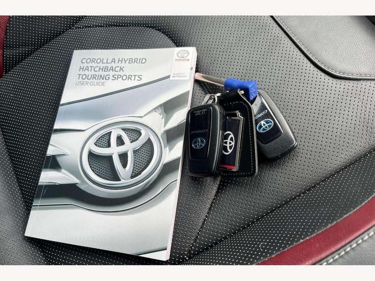 Bluetooth telephone connectivity, E-call, Electrically assisted power steering, Intelligent park assist, Push button start, Reversing camera, Smartphone integration with Apple CarPlay and Android auto, Speed limiter, Voice activation, Vehicle Stability Control (VSC), 2 ring combimeters with 7" colour TFT screen, 6 speakers, 8" multimedia and back monitor, AM/FM radio, DAB Digital radio, Toyota touch 2 with go navigation system, USB and Aux in connectors + 12V front outlet, Anti-jam protection on power windows, Auto dimming inside rear view mirror, Auto up and down function on all power windows, Automatic folding mirrors, Automatic headlights, Automatic wipers, Bi-LED headlights with LED lightguide, Body coloured bumpers, LED daytime running lights, LED front fog lights, LED rear combi lights with LED lightguide, Power adjustable heated door mirrors, Power front windows, Power rear windows, Privacy glass, Rain sensing wipers, Rear window wiper, Reverse tilting door mirrors, Shark fin antenna, 3 rear headrests, 3 spoke leather steering wheel + gear knob, Clean air filter, Dual zone automatic air conditioning with ECO mode switch, Front head restraints, Full leather upholstery, Heated seats, Interior illumination, ISOFIX seat fixing (2 fixings on rear outer seats), Pollen filter, Power lumbar support, Sports seats, Steering wheel switches, Tilt/telescopic steering column, Whiplash Injury Lessening (WIL) feature (active headrest) for seats, Parking pack - Corolla, Toyota safety sense 2 pack - Corolla, 3x3 point rear seatbelts, Adjustable front driver seat belt extender, Anti lock braking system + Electronic brake force distribution, Brake assist function, Electronic parking brake, Front passenger airbag on/off switch, Front seatbelt reminder, HAC-Hill-start Assist Control, Rear seat belt reminder, Seatbelt pretensioners and force limiters, Supplemental restraint system (SRS) 7 airbags - dual driver, dual side curtain, side impact and driver knee airbags, Traction control, Tyre pressure warning system, Alarm/immobiliser, Remote central locking + deadlocks, Smart entry, Tyre repair kit,