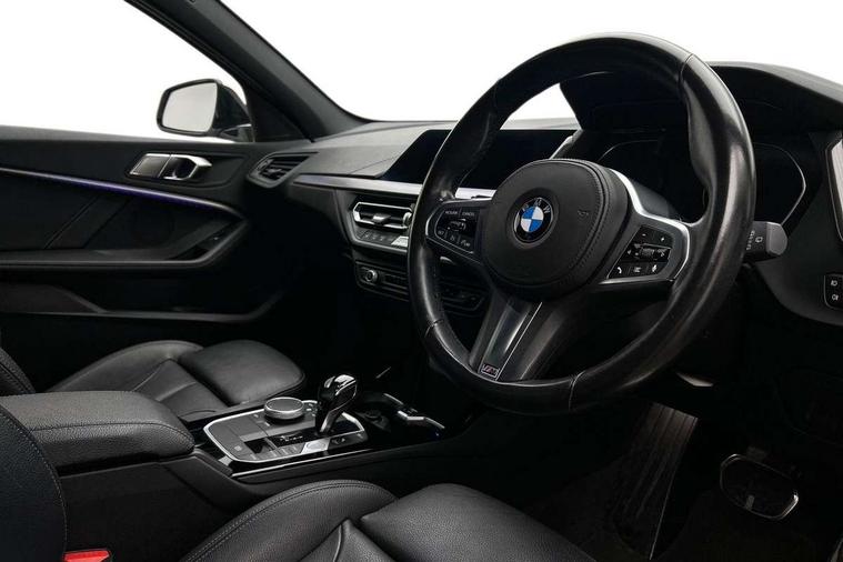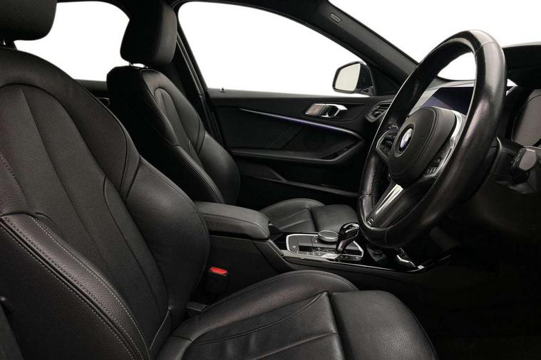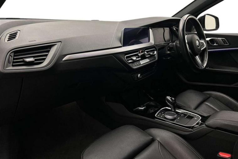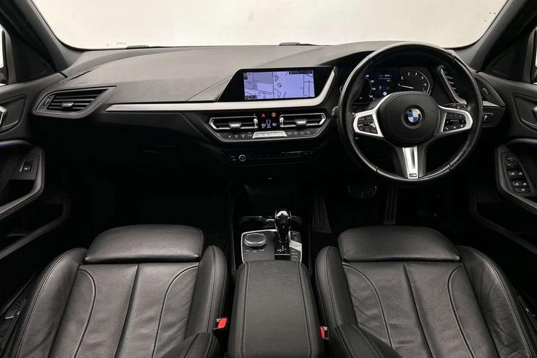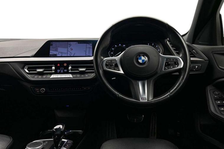 Active guard plus, Attentiveness assist, BMW Online services, BMW Teleservices, Check Control warning system for monitoring of lights and door/luggage compartment open warning, Connected eDrive Services, Eco pro mode, Integrated owners handbook, Oil sensor for level and grade, On board computer, Optimum shift indicator, Personal Profile, Pull away assistant, Speed limiter, Aluminium lightweight construction, Anti roll bar front and rear, Balancer shaft, Double VANOS, Drive Performance Control, Electronic differential lock, High precision injection, M sport suspension, Petrol Particulate Filter, VALVETRONIC engine management, Bluetooth audio streaming, DAB Digital radio, Auto dimming rear view mirror, Automatic headlight beam throw control, Automatic windscreen wipers and automatic headlight, Body colour door handles, Body colour mirror caps, Chrome 'M' logo side designation, Chrome exhaust tailpipe in single, round (Exhaust tailpipe, stainless steel - single, round), Chrome kidney grille frame with Satin Aluminium struts, Direction indicator side lights in exterior mirrors, Electric folding and anti dazzle exterior mirrors, Fading support, Follow me home headlights, Front and rear bumper system with replaceable deformation elements, Front and rear electric windows with open and close fingertip control, anti trap facility and comfort closing, Front door sill finishers in black plastic with M designation in metallic look, Green tinted heat protection glazing, Heated, electrically adjustable exterior mirror aspheric on driver side, convex on passenger side, High gloss shadowline window frame, Recess cover mirror frames and B/C pillar embelisher trim, High level third brake light, LED daytime running lights, LED eyebrow turn indicators, LED front fog lights, Lightweight engineering, Matt black air guide grilles, Model designation on right side of tailgate, Nearside reverse light in rear light cluster, Preparation for high beam assistant, Rain sensor including auto headlights activation, Rear fog lights, Rear window wiper, Shark fin antenna, Visible VIN plate, Welcome lighting, 12V power socket in centre console, 3 rear seat head restraints, 3 spoke M sports design leather steering wheel finished in nappa leather with specific M badge, Anthracite headlining, Anthracite Velour floor mats, Child seat ISOFIX attachment for two outer rear seats and front passenger seat with anchorage points, Conditioned based service, Dakota leather upholstery with perforation and contrast stitching, Driver and front passenger seat heating, Folding rear clothes hook, Four grab handles integrated in roof lining, Front and rear door pockets, Front and rear door pockets with bottle holders, Front and rear side armrest integrated into door trim, Front armrest foldable with integrated storage compartment, Front sports seats with electric side bolster adjustment, Glove compartment, Height adjustable front head restraints, Manual adjust steering wheel, Multi-function controls for steering wheel, Storage compartment in centre console, Sun visors with vanity mirrors and insert tab, Two zone automatic air conditioning, Additional interior lighting pack - 1 Series, Connected pack professional - 1 Series, Extended storage pack - 1 Series, Interior lights pack - 1 Series, Luggage compartment pack - 1 Series, M Sport exterior styling aerodynamics pack - 1 Series, 2 tone horn, 3 point seatbelts on all seats, front pyrotechnic belt tensioners, stopper and belt force limiters, rear coded belt buckles, Airbags - front driver/passenger, front & rear curtain, front side, Anti lock braking system (ABS) with brake assist, BMW emergency call, Brake drying, Braking readiness, Crash sensor activating central locking release, hazard warning lights, fuel cut off, interior lighting + activation of safety battery terminal clamp, Driver and front passenger seat belt security check, Dynamic stability control + (DSC+), Dynamic Traction Control - DTC, Electrically operated hand brake, Front and rear disc brakes, Front passenger manual airbag deactivation, Seatbelt warning, Side impact protection, Tyre pressure monitoring system, Warning triangle and first aid kit, Automatic drive away locking facility, Central locking switch for all doors, fuel filler cap and luggage compartment, Deadlocking function system to all doors, Locking wheel bolts, Remote control with integrated key with High-gloss Black inlay and M designation and 1 button for open/ close lock, window, open luggage compartment, Start/stop button with comfort go keyless engine start and auto start stop deactivation button, Thatcham Cat.1 alarm and immobiliser, Contrast stitching on instrument panel, Reduced rolling resistance tyres,