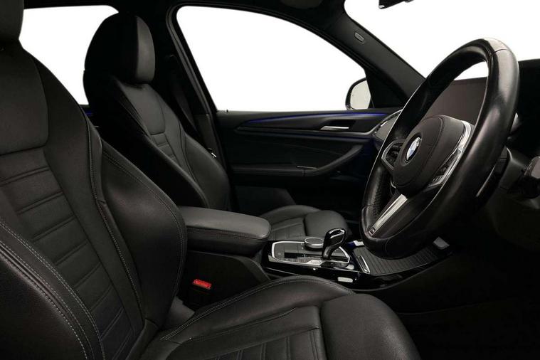 Active Guard, Attentiveness assist, BMW Live Cockpit Professional nav system including 12.3" instrument display + 12.3 high resolution control display, BMW Online services, BMW Teleservices, Brake pad wear indicator in front and rear, Check Control warning system for monitoring of lights and door/luggage compartment open warning, Condition based service - BMW service history, electronic service booklet, integrated owner's handbook, Connected drive services, Cruise control with brake function + speed limiter, Electric boot lid, Front/rear Parking distance control, iDrive Controller with 8 favourite buttons, Instrument cluster with speedometer with mph readout, tachometer, fuel gauge and oil temperature gauge, Lights on warning by audio warning signal when ignition is switched off, Oil sensor for level and grade, warning by check control system, On board computer - average speed+fuel consumption, service interval, clock/date, odometer/trip meter, outside temperature display and ice warning, Optimum shift indicator, Personal Profile - automatic lock when driving away selectable, Stop/start system, Variable sports power steering, Automatic transmission with gearshift paddles, Drive performance control with ECO PRO comfort + sport mode, Incorrect fuelling protection, M sport suspension, Multi-link rear suspension, Performance Control, BMW professional radio/CD/MP3, DAB tuner, Acoustic glazing, Automatic windscreen wipers and automatic headlight, Black finish on B pillars, Body colour door handles, Body colour electric adjust heated aspherical door mirrors, Body colour roof mouldings, Body coloured bumpers, Direction indicator, side repeaters, integrated in exterior mirrors, Dynamic brake lights, Exhaust tailpipes - dual, round, split left and right with chrome finisher, Fingertip control / anti-trap function on electric window, Folding wing mirrors with auto dimming, Follow me home headlights, Front and rear bumper system with replaceable deformation elements, Front and rear electric windows, Gloss chrome tailpipes finishers, Green tinted heat insulating glass, Heated windscreen washer jets, High beam assistant, High gloss black shadow line roof rails, High gloss shadowline exterior trim in decorative moulding side frame/recess cover/guide rail/B, C pillars/mirror frame and triangle with mirror base, High level 3rd brake light incorporating LED Technology, Interior rear view electrochromatic mirror with automatic anti dazzle function, LED tail lights, Lightweight engineering, M aerodynamic bodystyling, Model designation, Rear side wing doors, Rear wing door, Rear wiper, Shark fin antenna, Side exterior M designation badges, Visible VIN plate, Welcome lighting, Windscreen wipers with adjustable interval, 12V power socket in front centre console, 3 rear headrests, 3 zone automatic air conditioning, 4 lashing points to secure luggage, 40:20:40 split folding rear seat with loading system, 5 seats, Ambient lighting, Anthracite headlining, Automatic interior light when door is opened/ignition switched off or via remote key, Foldable storage floor with compartment, Four grab handles integrated in roof lining, Front and rear bottle holders integrated into door trim storage compartments, Front and rear side armrests integrated into door trim, Front centre armrest with storage compartment, Front footwell lights, Front head restraints, Front sports seats, Front/rear courtesy lights with soft on/off dimming, Front/rear reading lights, Heated front seats, Isofix rear child seat preparation, Leather gear knob, Luggage area underfloor compartment, Luggage compartment lighting, M sport leather steering wheel, Multifunction steering wheel, Parcel shelf removeable and storable under boot floor, Reach and rake adjustable steering column, Rear centre armrest with 2 cupholders, Removable / retractable luggage cover, Seat backrest width adjustment, Slope adjustable rear seats, Storage compartment in rear centre console and front/rear door trims, Sun visors with vanity mirrors and ticket pocket, Toolkit located in luggage compartment, Two front cupholders with removable oddments tray/lid, Vernasca leather upholstery, Connected pro pack - X3, Driving assistant pack - X3, ADB - Automatic Differential Brake, Anti-lock braking system (ABS) with brake assist, Automatic Stability Control (ASC), Battery safety cut-off, BMW emergency call, Brake drying, Brake energy regeneration, Braking pre-tensioning, Child locks on rear doors, Cornering brake control (CBC), Crash Sensor - activation of central locking release, hazard warning light and interior lighting, Deactivation of fuel pump in the event of a crash, Driver and front passenger front and side airbags with passenger deactivation and ITS front and rear head airbags, DSC+, Dynamic brake control, Dynamic Traction Control - DTC, Electromechanical parking brake, Hill descent control, Hill start assist, Seatbelt security check for front seats, Side impact protection, Three point seatbelts to all seats with front and outer rear pyrotechnic belt tensioners and seat belt force limiters, Two tone horn, Tyre pressure sensor, Ventilated front and rear disc brakes, Warning triangle and first aid kit, Central locking switch for all doors, fuel filler cap and luggage compartment, Electronic engine immobiliser, Locking wheel nuts, Remote control including two integrated key - one button for open/close all lockable content, windows and separate button for open luggage compartment, Remote control Thatcham category 1 alarm, Start/stop button with Comfort Go keyless engine start and auto Start/stop deactivation button, Low rolling resistance tyres,