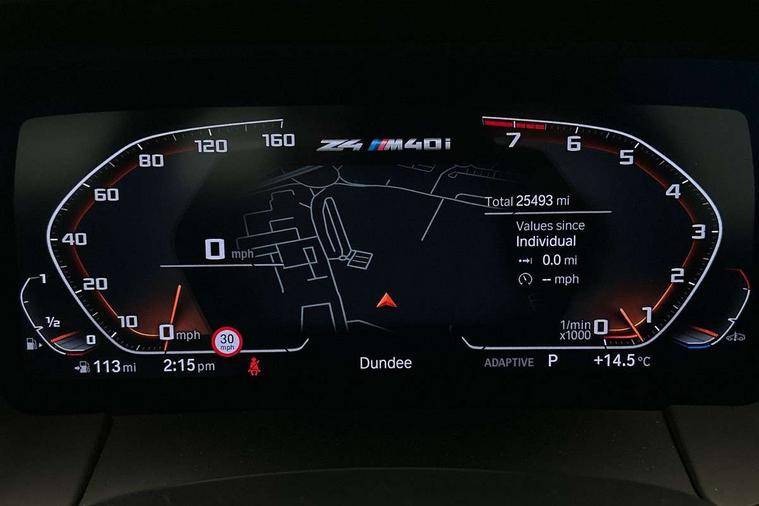 Active Guard, Auto start-stop, BMW ConnectedDrive online services, BMW Live Cockpit Professional with 10.25" high resolution instrument and control display, BMW Teleservices, Electric power steering, Fuel gauge, Instrument cluster, Oil sensor for level and grade, warning by check control system, Oil temperature gauge, Optimum shift indicator, Pull away assistant, Run flat indicator, Speedometer with mph readout, Tachometer, Variable sport steering, Adaptive M suspension, Double joint spring, Double VANOS, Drive performance control with ECO PRO comfort + sport mode, Eight speed steptronic sport transmission, with gearshift paddles, Fuel tank breather system, High precision injection, M Sport differential, Safety battery terminal clamp, BMW advanced loudspeaker system, USB connection, Automatic headlight beam throw control with load dependent regulating reaction, dynamic compensation of braking dive and acceleration squat, Cerium grey exterior mirror housing, Door sill finishers with M designation, Door sill strips, Dynamic braking lights comprising activated hazard warning flashers and third brake lights, Electric heated rear window, Exhaust tailpipe - split left and right, Exterior mirrors - electrically folding with anti-dazzle, Fingertip control / anti-trap function on electric window, Follow me home headlight function, Front and rear bumper system, Green tinted heat protection glazing, Heated windscreen washer jets, High gloss black window recess finisher, High gloss shadow line, Interior rear view electrochromatic mirror with automatic anti dazzle function, Kidney grille in mesh design, LED daytime driving lights, LED Indicators, LED rear lights, Lightweight engineering, Model logo, Preparation for high beam assistant, Tailgate release handle, Two stage brake force display, Visible VIN plate, Welcome lighting, Windscreen wipers with adjustable interval, 12V power socket in front storage compartment, Activation of interior lighting, Additional storage compartment - 4 lashing eyes, strap and storage net, Ambient lighting, Battery in luggage compartment, Child seat ISOFIX attachments for passenger seat, Cupholder, Driver + passenger electric lumbar support, Driver and front passenger heated seats, Electrically adjustable front driver and passenger seats with memory, Front and rear velour floor mats, Front headrests, Height adjustable mechanically and infinitely variable steering column, M leather steering wheel, M Sport seats for driver and passenger, Microfilter and active carbon filter, Sunvisors with vanity mirrors, Two zone automatic air conditioning, Vernasca leather upholstery, Connected package professional - Z4, 3 point front seat belts, Airbags - Front driver and passenger, front and side impact protection, Anti lock braking system (ABS) with brake assist, Automatic Stability Control (ASC), BMW emergency call, Brake energy regeneration, Braking readiness, Cornering brake control (CBC), Crash Sensor - activates hazard/interior lighting + unlocks doors, Deactivation of fuel pump in the event of a crash, Dry braking, Dynamic brake control, Dynamic stability control + (DSC+), Dynamic Traction Control - DTC, Electromechanical parking brake with automatic drive away release and auto hold function, Front and rear brake discs with interior ventilation, M Sport brakes, M sport seatbelt, Plastic fuel tank, Pyrotechnic seat belt tensioners, Roll over protection, Seat belt force limiter, Seat occupancy protection, Two tone horn, Tyre pressure monitoring with three level warning strategy, Centre lock switch, Closing system with central locking, Electronic vehicle immobiliser, Start/stop button with Comfort Go keyless engine start and auto Start/stop deactivation button, Thatcham cat 1 remote alarm, Sensatec instrument panel, 19" Double spoke M light alloy wheels in bicolour cerium grey - style 800M, BMW Mobility Kit, Reduced rolling resistance tyres,