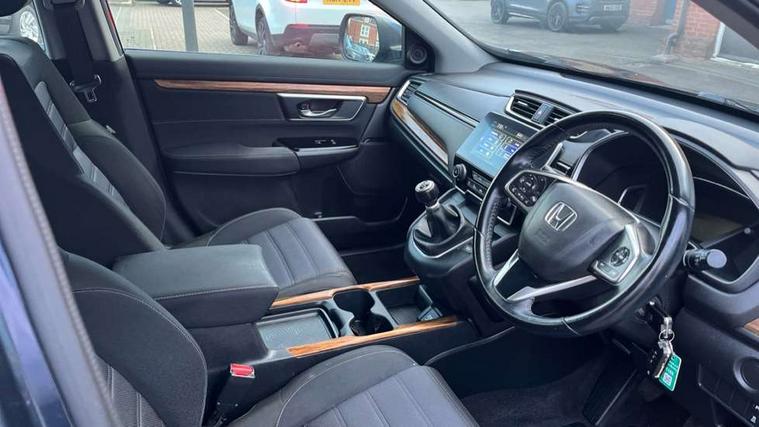 Adaptive cruise control, Agile handling assist, Bluetooth hands free telephone connection, Economy mode, Electric power steering, Emergency stop signalling system, Forward collision warning, Front and rear parking sensors, Honda CONNECT with GARMIN Navigation + 7" touchscreen, DAB radio, Apple CarPlay, Android Auto, Aha app integration and internet browsing, Idle stop, Intelligent multi info display, Lane departure warning system, Lane keep assist system, Rear view camera, Road departure mitigation, Speed limiter, Traffic sign recognition, Vehicle stability assist, 2 USB sockets in rear, 2x USB sockets in front, 8 Speakers, DAB Digital radio, Steering wheel mounted controls, Subwoofer, Aspheric door mirrors, Auto dimming rear view mirror, Automatic headlights with dusk sensor, Body colour bumpers, Body colour door handles, Door mirrors tilt when reversing, Electric front windows/one touch facility, Electric rear windows + one touch facility, Electrically adjustable and heated door mirrors, Electrically retractable door mirrors, Front fog lights, High beam assist, LED daytime running lights, LED Headlights, LED rear lights, Rain sensor, Rear wiper, Shark fin roof aerial, Trailer stability assist, Welcome home function, 60/40 split folding rear seat, Accessory sockets, Cargo hooks, Cloth upholstery, Courtesy lights, Driver's electric adjustable lumbar support, Driver/passenger front seatback pockets, Driver/passenger sunvisors with illuminated vanity mirrors, Dual zone automatic climate control, Front centre armrest, Front map lights, Gear shift indicator, Height adjustable driver's seat, Illuminated glovebox, Instrument panel with garnish wood film, Isofix child seat preparation, Leather gearknob, Leather steering wheel, Rear air vents, Rear centre armrest, Rear headrests, Rear reading lights, Rear seat conversation mirror, Silver interior door handles, Sunglasses holder with mirror, Tilt/telescopic adjustable steering wheel, Tonneau cover, Trunk light, 5 x 3 point seatbelts, ABS/EBD, Anti-whiplash front headrests, Brake assist function, Collision mitigation braking system, Deflation detection system, Driver airbag, Electronic parking brake with auto hold, Front and rear curtain airbags, Front side airbags, Hill start assist, Passenger airbag deactivate switch, Honda super locks, Immobiliser, Remote central locking with 2 remote folding keys, Security alarm, Ultrasonic sensor and tilt sensor, Temporary spare wheel,