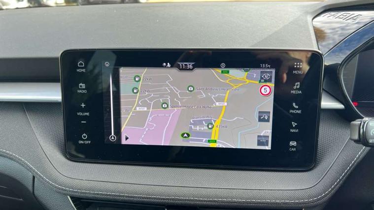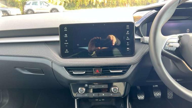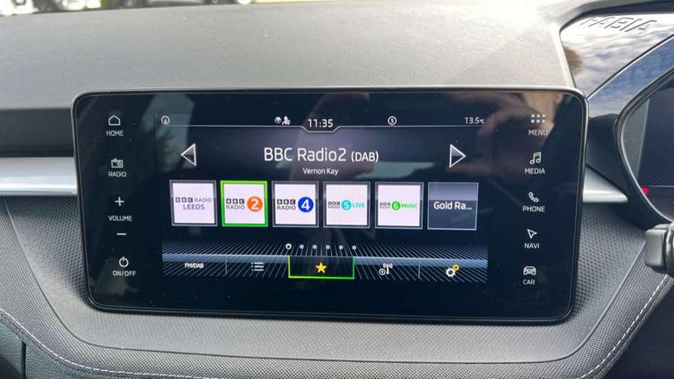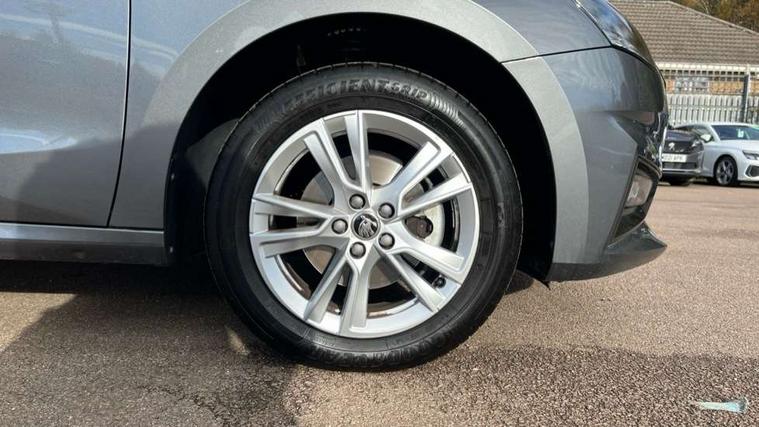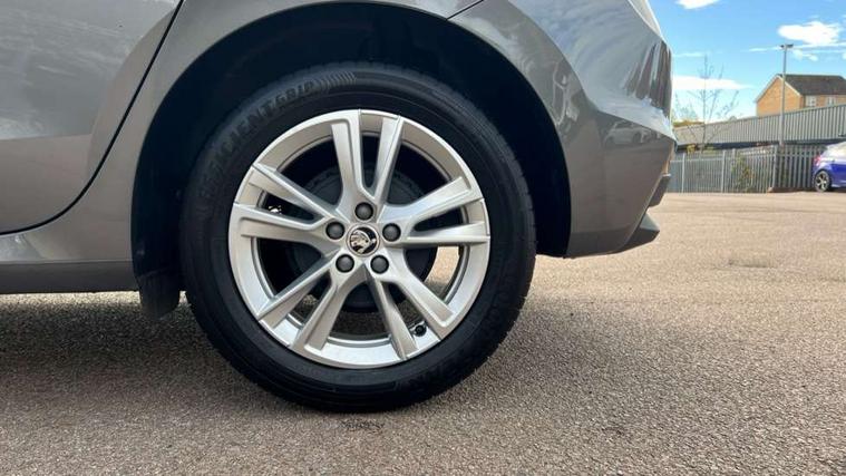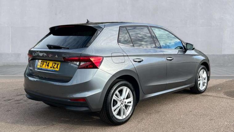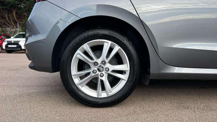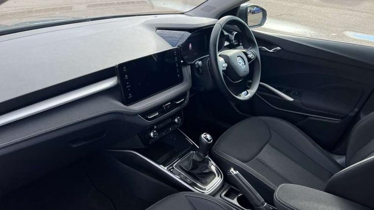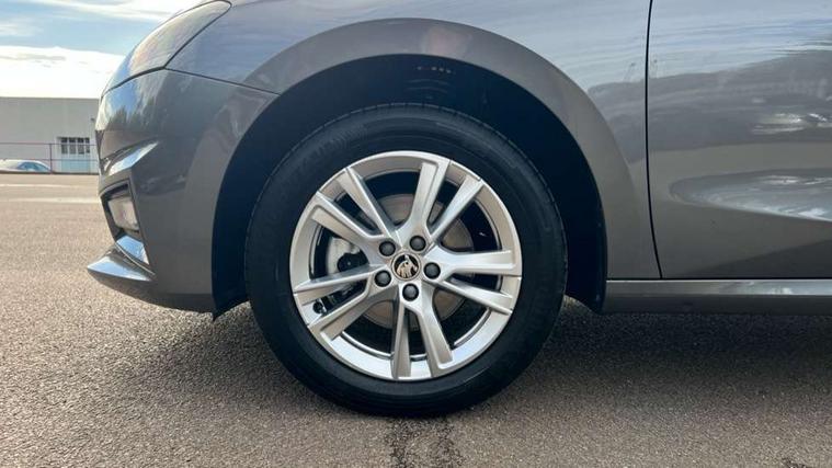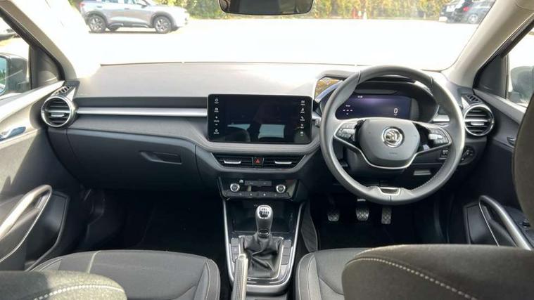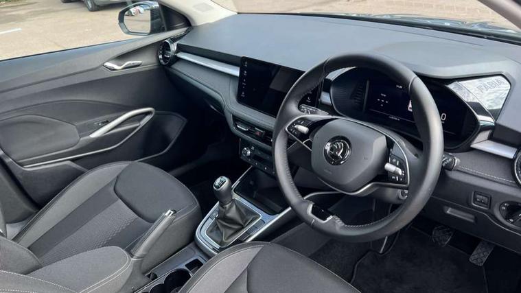 Advanced driver attention and drowsiness monitor, Bluetooth connection, Electromechanical power steering, Exterior temperature gauge, Service interval indicator, Traffic sign recognition, Virtual cockpit with 10.25" colour display, Wireless SmartLink for Apple CarPlay and Android Auto, 6 Speakers (4 in front and 2 in rear), 9.2" colour display skoda navigation system with voice control and web radio, Auxiliary socket for external MP3 player, DAB digital radio reception, Auto dimming rear view mirror, Body colour door mirrors, Body coloured bumpers, Chrome window surround, Door mirror integrated indicators, Front and rear electric windows, Front window wiper intermittent control, Headlight range control - Automatic, Ice scraper in fuel cap, LED 3rd brake light, LED daytime running lights with coming and leaving home feature, LED rear lights, Privacy glass, Rear LED fog light, Rear side wing doors, Rear window wiper with washing nozzles, Roof mounted spoiler, SKODA tailgate lettering in chrome, Unique dark chrome design logo on alloy wheels, 2 LED reading lights in front and rear, 3 rear headrests, Backrest split and folding, Central console with removable cup holder and storage box, Chrome handbrake release button, Comfort seats, Door sills with fabia badging, Dual zone air conditioning with climatronic electronic control, Fabric upholstery, Front centre armrest, Gearshift knob/handle in leather, Hand brake lever handle in leather, Height adjustable front headrests, Height adjustable front seats, Height adjustable steering wheel, ISOFIX and TopTether anchorage points to the outer rear seats, ISOFIX and TopTether on the front passenger seat, Luggage compartment lighting, Manually adjustable lumbar support in front seats, Metallic grey interior door handles, Pollen filter, Rear seat bench unsplit, Single front passenger seat, Skoda lettering on steering wheel, Storm grey headlining, Sun visors with mirror and airbag label on passenger side, Textile floor mats, Ticket holder, Umbrella in drivers door, 3-point height adjustable front seats belts with pretensioner and force limiter, Automatic warning lights in case of crash, Driver and passengers airbag with switch off function, e-Call+, ESC including ABS, MSR, ASR, EDS, HBA and XDS, Front and rear seat belt warning, FRONT ASSIST (AEB City and AEB Inter Urban), Front side airbags, Head airbags, One tone horn, Pedestrian protection, Three rear 3-points safety seat belts with pretensioner and force limiter including stop function for outer rear seat belts, Tyre pressure monitoring system, Anti-theft alarm system including immobiliser, interior monitoring, backup horn, and towing protection, Central locking with radio remote control, interior controls, SAFE function and 2 foldable keys, Black painted air vents, Metallic grey central console cover, Metallic grey upper decorative trim, Satin black door and side trim panel in front, Textile microsuede grey lower decorative trim with art grey stitching, Anti-theft wheel bolts protection, Super-low rolling resistance tyres,