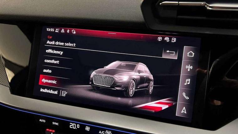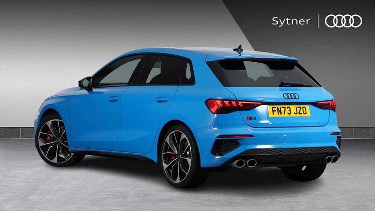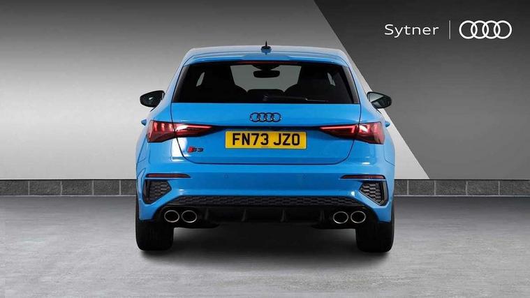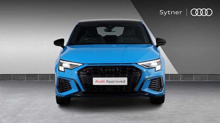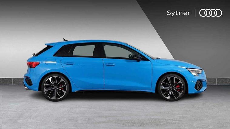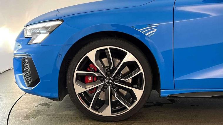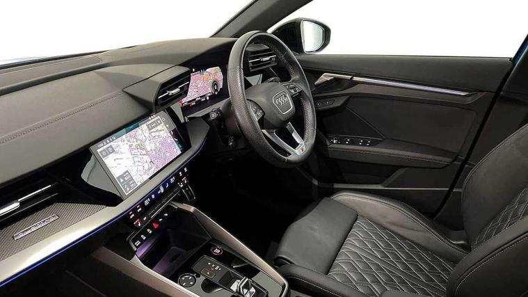 Adaptive cruise assist, Audi drive select (Auto, Comfort, Dynamic, Efficiency and Individual), Audi smartphone interface, Audi virtual cockpit plus - 12.3" full HD resolution dynamic digital instrument cluster, Automatic start/stop system with recuperation, Bluetooth interface, Collision avoidance assistant, e-Call (emergency call), Head up Display, Lane change assistant with exit warning system and rear cross traffic alert, Lane departure warning system, MMI Navigation Plus with high resolution 10.1" colour touch screen display, Power operated tailgate - Luggage compartment lid opens/closes electrically, Progressive steering, Service indicator, Trip computer, Voice control system with natural language interaction, Quattro permanent all wheel drive, S suspension with damper control, 2xUSB-C connection with data and charging functions, DAB Digital radio, 3rd brake light, Acoustic glass windscreen, Audi Beam uses LEDs to project Vorsprung onto the ground as you exit your S3, Auto dimming frameless rear view mirror, Carbon door mirror housings, Dual branch oval twin tailpipes in chrome plated finish, Electrically adj heated/folding + automatically dimming exterior mirrors with memory + automatic kerb side function for passenger side exterior mirror, Front electric windows, Headlight washers, Heat insulating glass windscreen, Illuminated door sills with aluminium inserts at the front with S logo, Integrated LED indicators in door mirrors, LED daytime running lights, Light and rain sensors, Privacy glass - dark tinted rear window, rear door and side windows, Rear electric windows, Rear side air outlets in grained matt black, Rear side wing doors, Rear wiper, 12V socket and storage compartment in front centre console, 3 seat bench in 2nd row, 3 spoke leather multifunction steering wheel with gear shift paddles, 4 way electrically adjustable lumbar support for driver and front passenger, 60/40 split folding rear seat bench, Black cloth headlining, Dual zone electronic climate control, Fine Nappa leather upholstery with front sports seats S embossed logo, Front and rear centre armrest in artificial leather, Front and rear headrests, Front/rear floor mats, Height and reach adjustable steering wheel, Interior lighting - glove compartment light and right hand side, Luggage compartment floor covering, Seat side bolsters, Single front passenger seat, Stainless steel pedals and front footrest in black, Aluminium interior elements pack - A3 Sportback, Black styling pack - A3 Sportback/S3, Body styling design pack - S3, Extended ambient lighting pack - A3 Sportback, Storage pack - A3 Sportback, Technology pack pro with 360 camera - A3 Sportback/Voursprung, 3x3 point rear seat belts, Driver and front passenger airbag with passenger airbag deactivation, Electronic Stabilisation Control (ESC) including ABS, ASR and EDL, First aid kit with warning triangle and 2 safety vests, Front side airbags with head airbags and interaction airbag, Pre-sense front with pedestrian and cyclist detection, Seatbelt monitoring, Tyre pressure loss indicator, Anti theft alarm, Anti-theft wheel bolts, Electronically operated child locks, Immobiliser, Remote control central locking, Carbon inlays, accent surfaces in the dashboard and centre console in platinum grey silk effect paint finish,