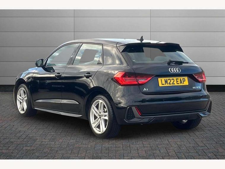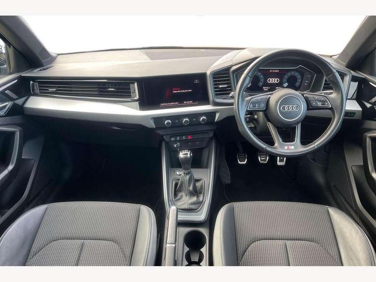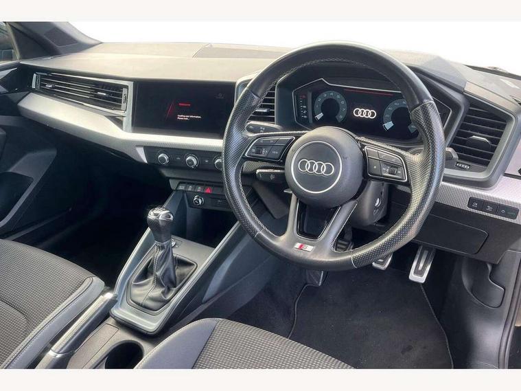 10.25" Digital instrument cluster display classis style instrument dials + speed, odometer, time, outside temperature, telephone menu + fuel level warning, Audi connect safety emergency and service including E-call, Audi drive select - power steering assistance + engine, Audi smartphone interface with connect compatible smartphone via USB directly MMI display + Nav, music, third party apps controlled via MMI controller, Automatic start/stop system, Bluetooth interface, Cruise control, Driver's information system, Electromechanical power steering, Emergency services call system, Lane departure warning system, Service interval indicator, Speed limiter, Voice control system, Washer fluid level indicator, Sports suspension, 1 x SDXC card reader, 2 x USB type C connection points, DAB Digital radio, MMI radio plus with 8.8" colour MMI display screen and MMI touch, Auto dimming rear view mirror, Body coloured door mirrors, Door sills with aluminium inlays and S Line logo, Electric front and rear windows, Electrically adjustable, heated, folding door mirrors with integrated LED side indicator, Front side air inlets in grained matt black and C frame in titanium black, Heat insulating glass windscreen and side windows, Heated rear windscreen, High level LED brake light, LED headlights with LED rear lights + dynamic rear indicators + headlight adjustment and high beam, turning light + LED daytime running lights, Radiator grille and rear diffuser in matt titanium black, Radiator protective grille frame in matt aluminium silver, Rain and light sensors, Rear fog lights, Rear side wing doors, Rear wing door, Rear wiper, S line badges on front wings, Side front spoiler lips in grained matt black, 12V socket in centre console with two cup holders, 3 rear seats with headrests, 3 seat bench in 2nd row, 40:60 Split folding rear seat or folded fully, Black cloth headlining, Driver and passenger seat with manual height adjust with forward and backwards adjustment, Front and rear black floor mats with contrast stitching in fine silver, Front head restraints, Front passenger seat, Height and reach adjustable steering wheel, ISOFIX child seat mounting for front passenger and outer rear seats including top tether attachment point of outer rear seats, Leather gear knob with aluminium trim, Luggage compartment light with front and rear reading lights, Manually adjustable lumbar support in front seats, Stainless steel pedals, LED interior lighting pack - A1, Luggage compartment pack - A1, S line exterior styling pack - A1 Sportback, 3x3 point rear seatbelts, Audi pre-sense front with pedestrain and cyclist recognition, Brake assist function, Driver and front passenger airbag with front side and head airbags, Electronic Stability Control including ABS, EBD, ASR and EDL, Front passenger airbag deactivation switch, Hill hold assist, Manual rear child locks, Seatbelt height adjustment for front seats, Seatbelt monitoring, Tyre pressure warning light, Warning triangle and first aid kit, Anti theft alarm, Anti theft wheel bolts and loose wheel warning, Immobiliser, Remote central locking with 2 foldaway keys, Aluminium trim for control switches, air vents and digital instrument cluster, Silver grey inlays polygon structure in diamond paint finish, Structured grey accent areas including air vents, door handle recesses and centre console in quartz paint finish,