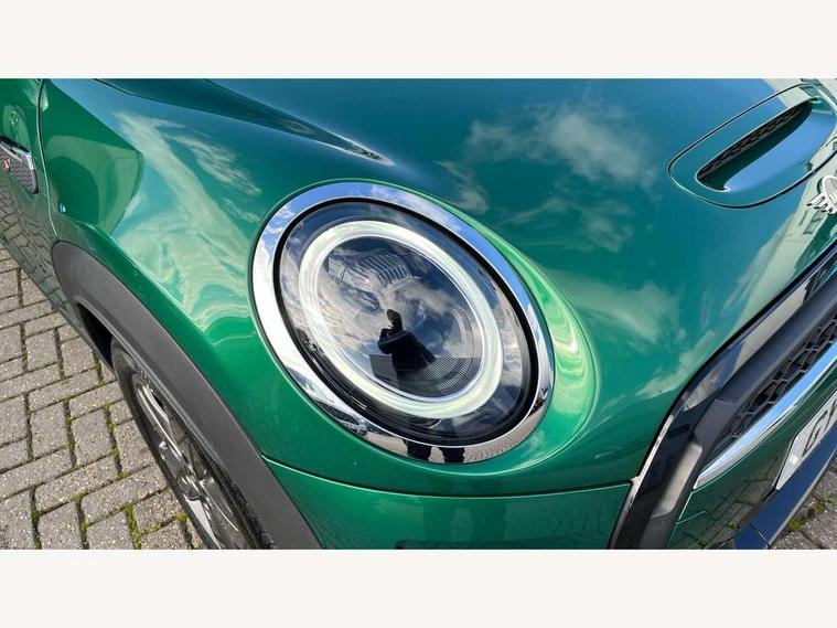 Automatic start/stop function with brake energy recuperation, Compatible mobile phone bluetooth with audio streaming, Cruise control with brake assist, Electro-mechanical speed dependant steering assistance, Flexible car sharing preparation, Instrument cluster, MINI Driving Modes - centre toggle switch to control driving setting (sport, mid and green), Mini E-call, MINI TeleServices, On board computer, Service interval indicator, 6 Speed manual transmission including gear change indicator display, Double Vanos system, Fully variable valve control, High precision injection, Performance Control, 4 speakers in front door trims and underneath front seats, 8.8" touchscreen with LED ring, FM tuner and DAB digital radio, Automatic headlight activation switch, Bonnet scoop, Chrome fuel filler cap, Dynamic brake lights, Electric front windows, Heated rear window, Heated windscreen washer jets, LED headlight with closed ring and daytime driving lights, Metal door sill strips with Cooper S, Model logo Cooper S on right of tailgate, Radiator grille chrome border with honeycomb structure including S Badge, Rain sensor window wipers, Rear fog lights, Rear LED lights with union jack design, Rear window wiper, Side scuttle panel with integrated indicator, Sun/heat protection glass, Two central exhaust tailpipes with chrome finisher, White indicator lenses, 12V Accessory socket in centre console, 4 lashing eyes in luggage compartment, 60/40 split folding rear seat, Carbon black colour line - Knee roll and door armrest, Chrome interior highlights, Cupholders, Front and rear head restraints, Front and rear isofix with front passenger airbag deactivation, Glove compartment, Height and length steering column adjustment, Interior lighting with 12 different colours across the dashboard, underneath door bezel with illuminated laser-engraved design on central display, Leatherette gearshift lever and handbrake gaiters, LED reading lights, vanity mirror lights, front foot well light and spotlight on front seats, Manual air conditioning, Mechanical seat adjustment - forward/back & backrest for front seats and driver seat height adjust, Multifunction steering wheel, Passenger seat height adjuster, Satellite grey headlining including grab handles and clothes hooks, Sport leather steering wheel with speed limiter and audio/communication controls, Storage compartments in doors, Storage pocket on back of front seats, Sunvisors with vanity mirrors, Velour floor mats, 3 point seatbelts on all four seats, 6 Airbags - front, side, head and seat belt tensioners, Anti-lock braking system (ABS), DSC - Dynamic Stability Control, Front and rear disc brakes, Two tone horn, Tyre pressure monitoring system, Alarm system with tilt sensor, monitoring doors, bonnet interior and tailgate, Electronic vehicle immobiliser, Start/stop toggle with keyless go, Piano black interior trim, Tool kit, Tyre repair kit,