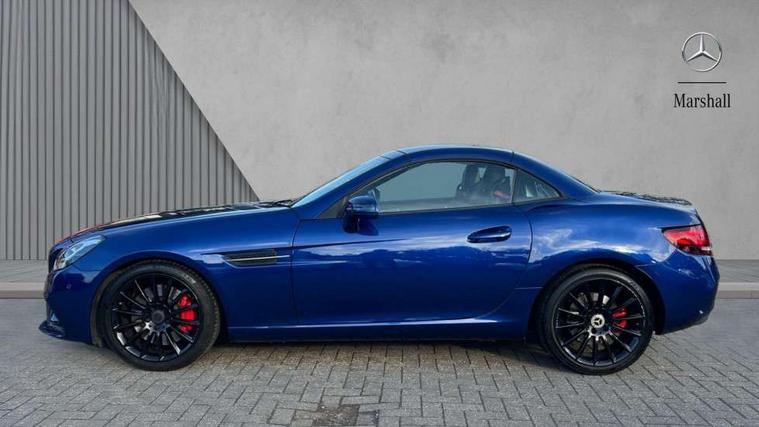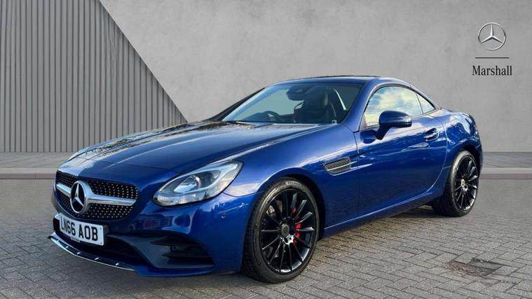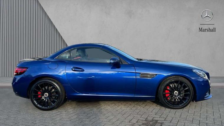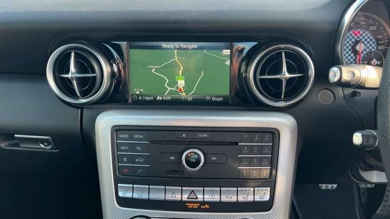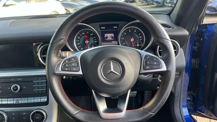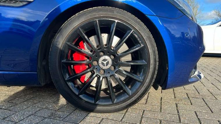 Attention assist, Bluetooth system, Chequered flag design instrument cluster, DYNAMIC SELECT with a choice of driving modes (ECO, Comfort, Sport, Sport+ and Individual), Outside temperature gauge, Power Steering, Remote boot release, Service indicator (ASSYST), Speedtronic cruise control, Trip computer, Sports suspension, 2 USB ports in centre console, DAB Digital radio, Media interface, Adaptive brake lights, AMG bodystyling, Automatic headlamp activation, Body colour bumpers, Electric front windows, Electrically adjustable and heated door mirrors, Electro hydraulic vario roof, LED daytime running lights, Wind deflector, 3 spoke flat bottom multi-function perforated leather steering wheel, Active head restraints, AMG floormats, Auto Mercedes-Benz child seat recognition sensor, Brushed stainless steel sports pedals with rubber studs, Driver/front passenger seat height adjustment, Front centre armrest, Lockable glovebox, Sports seats, ABS with Brake Assist, Adaptive brake system, Brake calipers with Mercedes-Benz lettering + perforated brake discs, Driver/front passenger head+thorax airbag, Dual stage driver/passenger airbags, Electronic parking brake, ESP with Acceleration skid control (ASR), Seatbelt pretensioners, Tyre pressure monitoring system, Warning triangle and first aid kit, Alarm system/interior protection/immobiliser, Remote central locking, Tyre sealant kit,