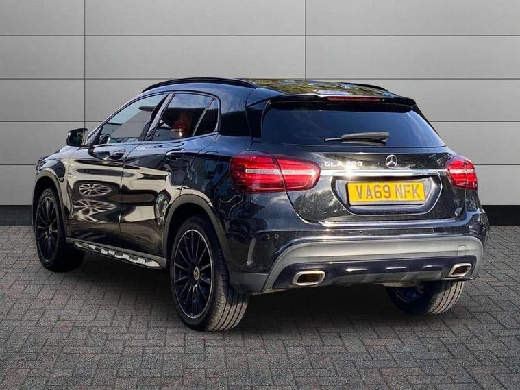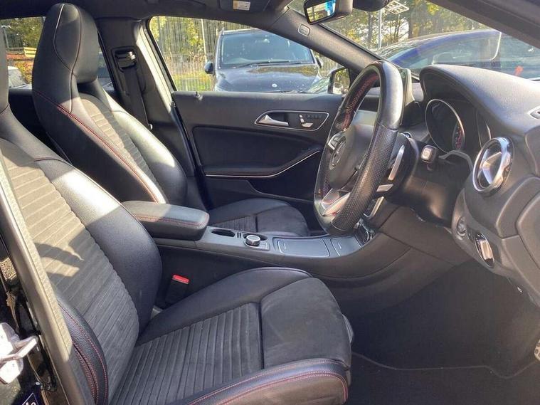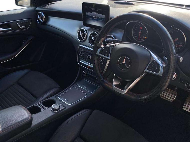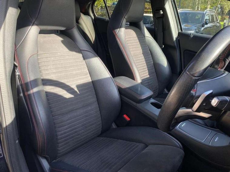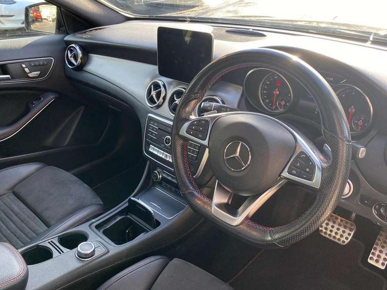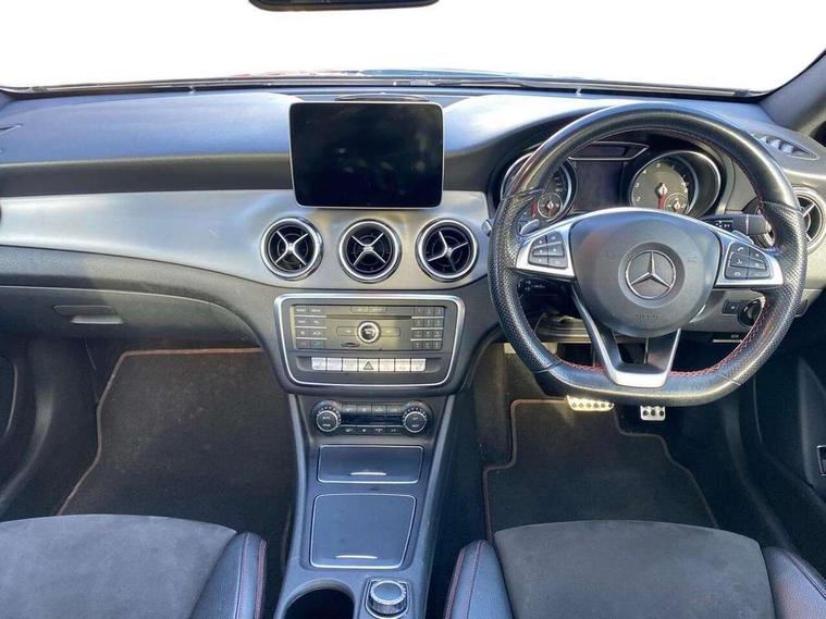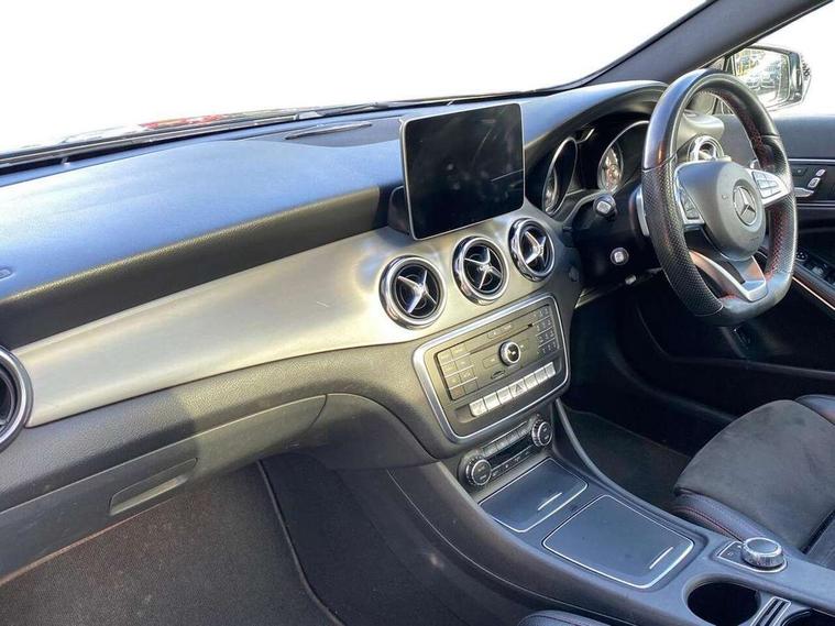 180 degree reversing camera with parking guidelines, 4 analogue dials and needles suspended in six o'clock position, Attention assist, DYNAMIC SELECT with a choice of driving modes (ECO, Comfort, Sport and Individual), Easy-pack tailgate - Powered opening/closing automatically, ECO start/stop function, Fluid level warning indicator for fuel, oil, coolant and washer fluid, Instrument cluster, Mercedes me connect including emergency call system, accident recovery, breakdown and maintenance management, Multi function trip computer, Outside temperature gauge, Parking pilot with front and rear parking sensor and steering assist, Service indicator (ASSYST), Smartphone integration with Apple CarPlay and Android auto, Sports speed sensitive direct steer system with servo assistance, Off road comfort suspension, 8" media display touchpad, Audio 20 radio/single CD/MP3, 6 speakers, telephone keypad, twin radio tuner, Bluetooth, 2 USB ports, SD card slot and Garmin Map pilot nav system, Media interface, Adaptive brake lights, Automatic headlamp activation, Body colour door handles with chrome inserts, Body coloured bumper with front and rear apron trim in matt titanium grey, Chrome beltline strips, Electric front windows, Electrically adjustable and heated door mirrors, Front door sills with Mercedes-Benz lettering, Front fog lights, Full LED tail lamps, Heat insulating dark tinted privacy glass from the B-pillar backwards, Heated glass rear windscreen + timer control, LED High performance headlamps with adaptive highbeam assist, LED third brake light, Panoramic sliding sunroof, Rain sensor windscreen wipers with two sensitivity stages, Rear windscreen intermittent wiper with automatic activation when reversing, Roof mounted radio aerial, Two pipe visible exhaust system with chrome tailpipe tips, 1/3 to 2/3 split folding rear seats, 12 colour Ambient lighting, 12V power socket in centre console, 12V socket in luggage compartment, 3 spoke and 12 button flattened bottom multifunction steering wheel trimmed in nappa leather with perforated leather grip area, Air conditioning - Two zone thermotronic luxury automatic climate control with display, Air vents with chrome surround and cruciform nozzles, Ambient lighting in front headrests, AMG brushed stainless steel sports pedals with rubber studs, AMG floor mats with AMG lettering and stiched edging, Artico man-made leather/Microfibre Dinamica upholstery with red contrast stitching, Auto Mercedes-Benz child seat recognition sensor, Black roof lining, Electrically adjustable front memory seats with four way lumbar support, Front centre armrest with stowage, Front footwell lights, Front seat cushion length adjustment, Gearshift paddles, Heated front seats, Illuminated door sills, Illuminated glove compartment stowage, Interior door handle illumination, Luggage compartment cover, Manually height and reach adjustable steering column, Rear footwell lights, Rear Reading Lamps, Sports seats with integrated head restraints, Stowage compartment beneath load compartment floor, Stowage compartment lighting, Sunvisors with illuminated vanity mirrors, Twin front cup holders, Two outer rear seat isofix and top tether child seat fixing points, White courtesy and red warning lights in front doors and boot lid, Comfort seat pack - GLA Class, Keyless go comfort pack - GLA Class, Mirror pack - GLA Class, 3 rear three point seatbelts, Active bonnet pedestrain safety measure which detects an impact and raises bonnet by 65mm, Active brake assist, Adaptive brake assist with hold function and hill start assist, Anti-lock braking system (ABS), Black seat belts, Childproof locks manually operated for rear doors and electrically operated for rear power windows, Crash responsive emergency lighting, Drivers knee airbag, Dual stage driver and front passenger airbags, Electronic parking brake, Electronic stability programme with acceleration skid control, Front and rear seatbelt reminder, Front passenger seat occupancy sensor, Front side airbags, Tyre pressure monitoring system, Warning triangle and first aid kit, Window airbags, Anti-theft alarm system/interior protection with tow-away protection and interior monitoring systems, Chrome surround in electric key, Remote central locking, Light aluminium with longitudinal grain interior trim, Run flat tyres,