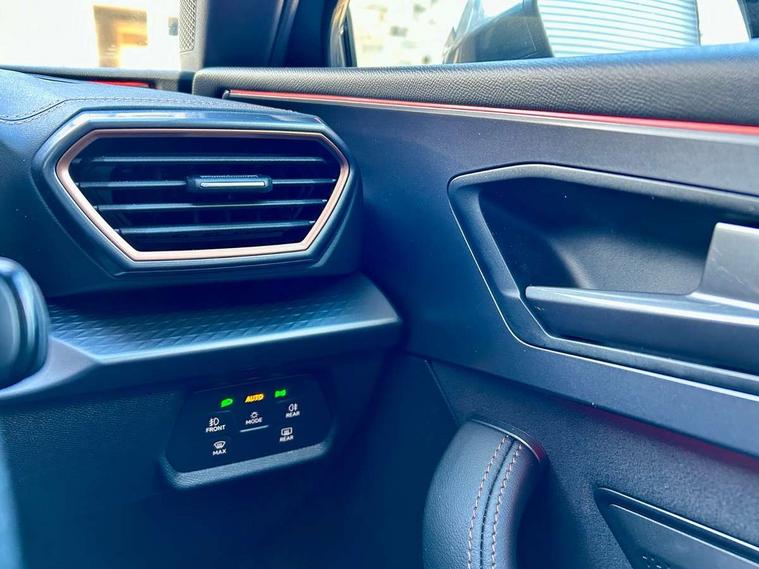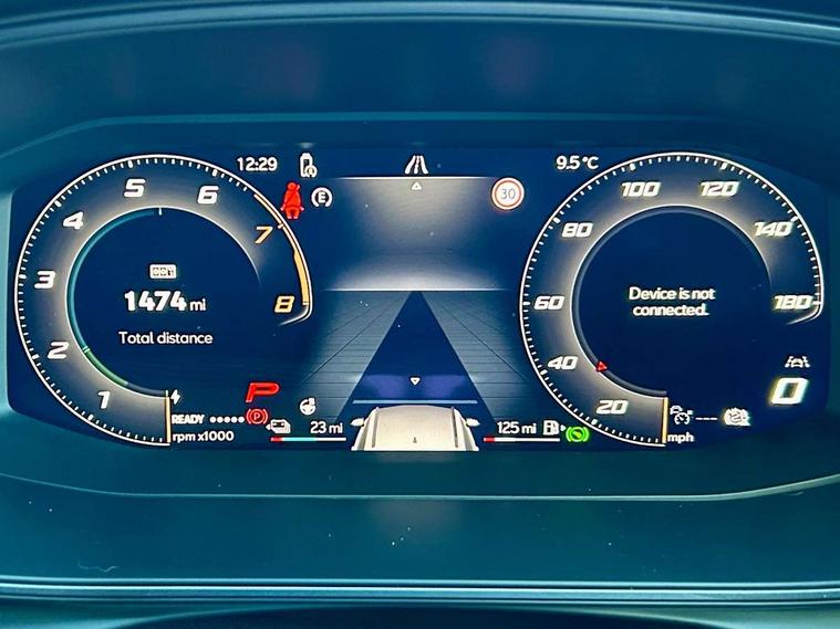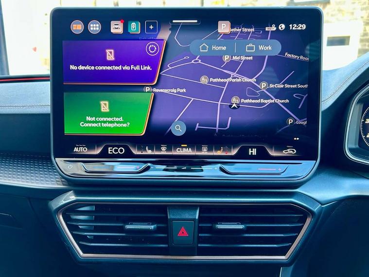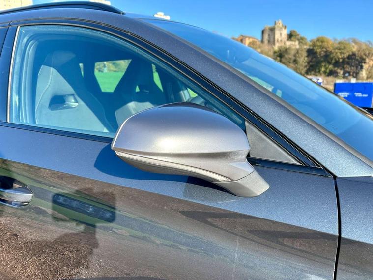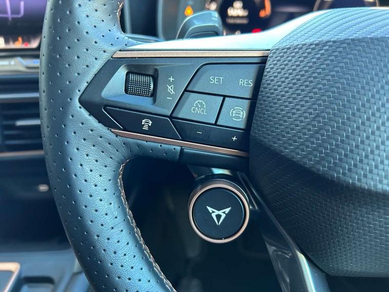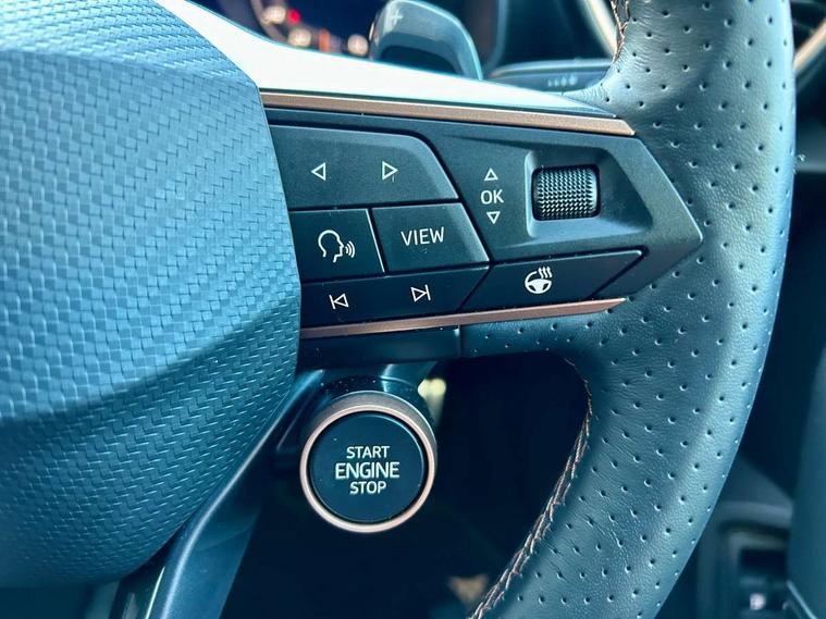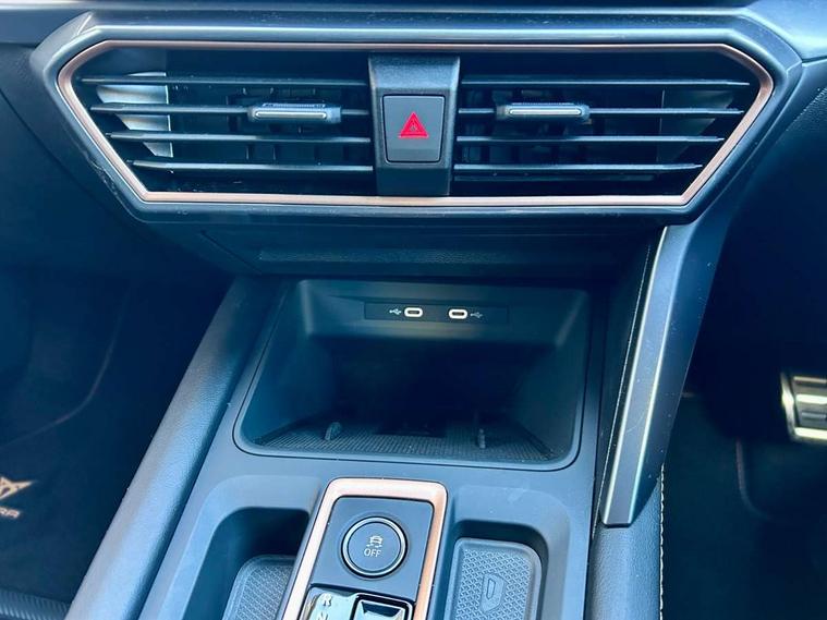 Adaptive cruise control with follow-to-stop and speed limiter, CUPRA drive profile selection with (Comfort/Sport/Individual), throttle response and gearshift mode, Digital cockpit, Dynamic road sign display, E-call, Four x USB Type C ports (2 in front and 2 in rear), Front and rear parking sensors, Front assist with forward collision warning braking reaction to vehicles, pedestrians and cyclists, Full link smartphone integration with Mirror Link, wireless Apple CarPlay and wired Google Android Auto, Lane assist, Lockable tailgate, Rear view camera, RPM, trip computer, outside temp gauge, instrument light brightness, low fuel warning light, lights on reminder, gearshift indicator, Service interval indicator, Start/stop system with regenerative braking, Virtual pedal with electric tailgate, Wireless phone charger, 10 amp mode 2 charging cable, 16 amp mode 3 charging cable, Auxiliary input socket, Auto dimming rear view mirror, Body colour door handles, Body coloured bumpers, Cupra sports bumpers, Dark tinted rear windows, Electric front/rear windows, Electrically adjustable, heated and folding door mirrors, Gloss black roof rails, High beam assist, LED front fog lamps with cornering function, LED headlights with dynamic turn signals, tail lights, rear fog lights with rear coast to coast lighting, LED rear fog lamp, Rain sensing wipers, Rear side wing doors, Rear wash/wipe, Separate daytime running light with automatic headlight control and coming home feature, Third brake light, Welcome light with logo projector in door mirrors, 12v power supply in centre console, 3 seat bench in 2nd row, 5 headrests, 60/40 split rear bench seat with armrest, Ambient lighting (glovebox, footwell, ambient lighting multicoloured), Black headlining, Cupra sports pedals, CUPRA Supersports, heated steering wheel with satellite buttons, Dinamica cloth upholstery, Electrically adjustable driver seat and lumbar support with memory function + manually adjustable passenger seat, Front and rear reading lights X 4, Front centre armrest, Heated front seats, Height/reach adjust steering wheel, Illuminated interior front door sills, Interior wraparound lighting, ISOFIX points in outer rear seats with top tether anchorage points, Single front passenger seat, Sliding boot cover, Storage pockets on rear of front seats, Sunvisors with illuminated mirror, Three zone climate control, Dynamic and comfort pack - Leon Cupra, Media system plus with 12.9" display + navigation pack - Leon Cupra, 3 point seatbelts on all rear seats, ABS, Brake control system - ESC and brake booster, Child proof door locks, Cupra black brake calipers, Driver and front passenger airbags with front passenger airbag de-activation, front side and curtain airbags, Electronic parking brake, Hill hold control, Rear disc brakes, Seat belt reminder for front and rear seats, Tiredness recognition system, Tyre pressure monitoring system, Anti theft alarm system with interior monitoring in cab, backup horn and towing protection, KESSY Advanced - Keyless start, keyless entry, Locking wheel bolts, Chrome and copper interior detailing, 19" Polar machined sport black and silver alloy wheel with 91Y tyres, Breakdown kit, Tool kit,