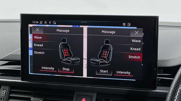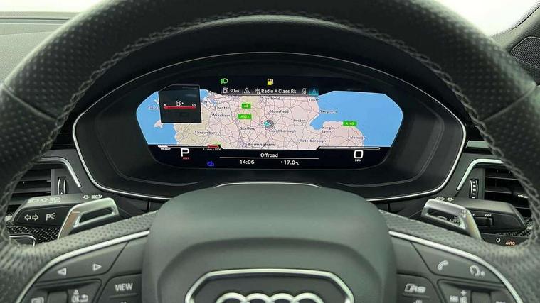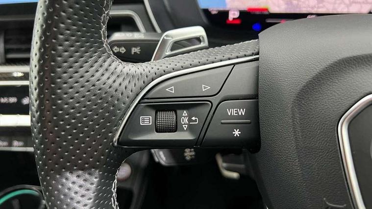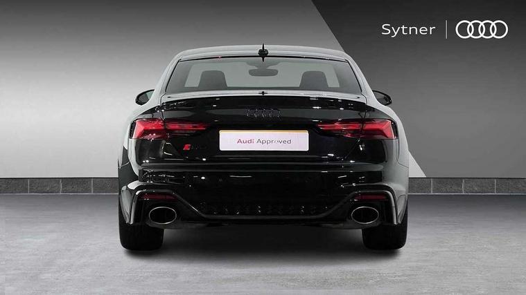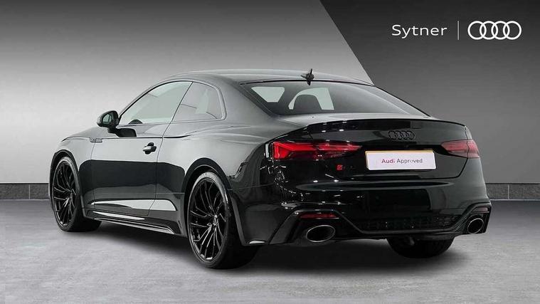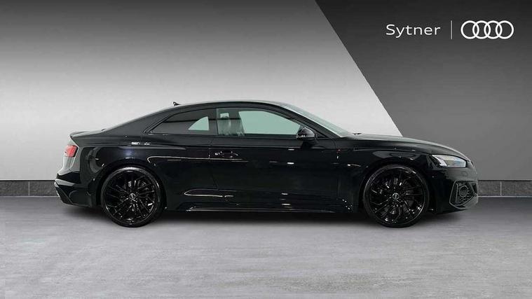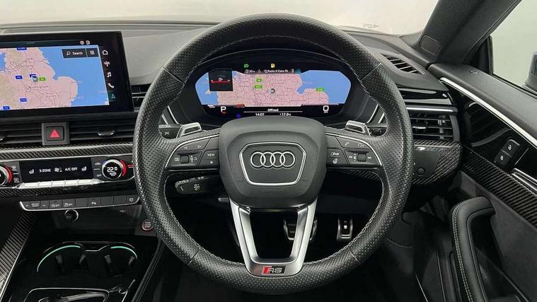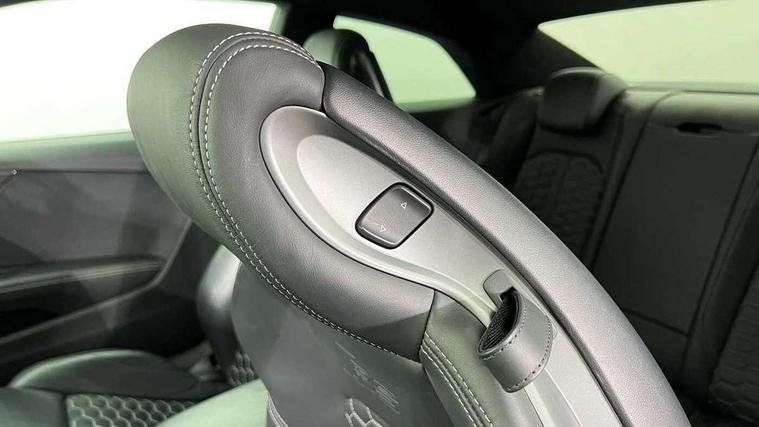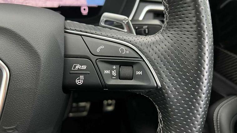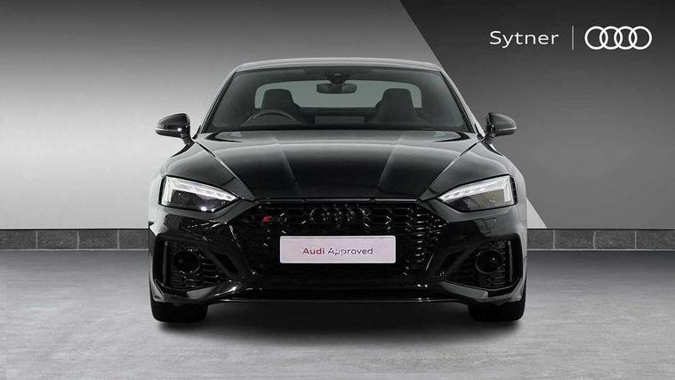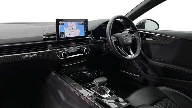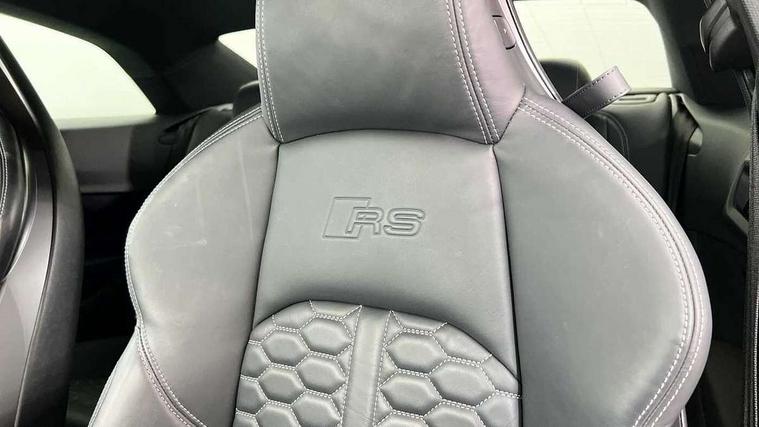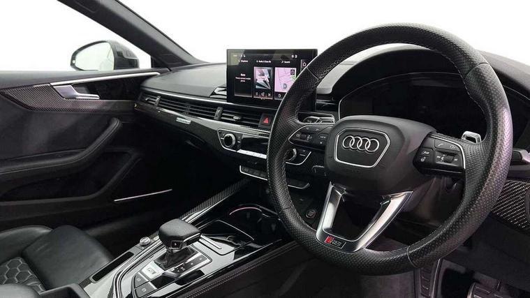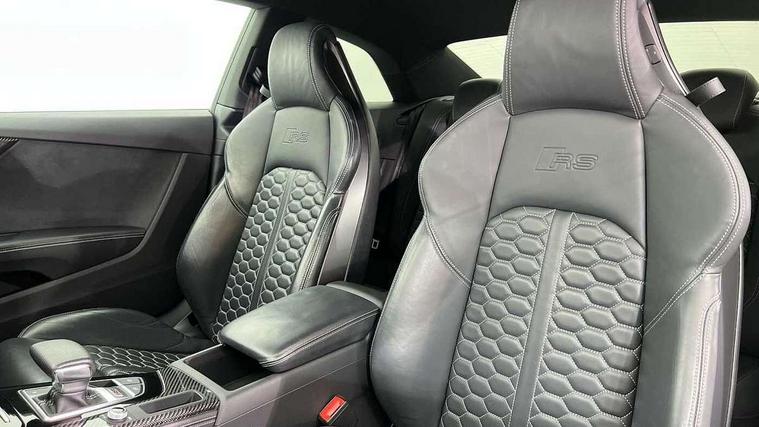Audi connect safety and service (e-call), Audi connect with Amazon Alexa Integration, Audi parking system plus with front and rear sensors, Audi side assist, Audi smartphone interface, Audi Virtual Cockpit with RS specific design and 12.3" display, Automatic start-stop system with coasting functionality and efficiency programme, Bluetooth interface, Electromechanical power steering, Email, calendar and text messages displayed via MMI, MMI Navigation plus with MMI touch includes 10.1" high resolution colour MMI display, 3D map, Rear view camera, RS Audi drive select, RS drive modes on steering wheel, Service interval indicator, Voice control system, Quattro sports differential, 2 x USB charging port with aux input socket, Audi sound system, DAB digital radio reception, Audi Beam uses LEDs to project the RS logo, Audi matrix LED headlights with LED rear lights + dynamic front and rear indicators, Audi rings and lettering glossy black, Auto dimming rear view mirror, Body colour door handles, Electric front windows, Electric rear windows, Electrically folding, adjustable and heated door mirrors with integrated LED side indicators and kerb view function for passenger side, Exterior mirror housing in high gloss black, High beam assistant, Larger singleframe grill, LED 3rd brake light, LED daytime running lights, Privacy glass with rear acoustic glazing, Rain and light sensors, Rear boot, RS bumper with quattro lettering, RS5 badges on grille, the front wing panels and rear, RS5 dual branch chrome tailpipes with left and right oval pipes, Windscreen with acoustic glazing, 3 spoke leather heated multi-function plus steering wheel with RS badging, 40:20:40 split folding 2 seater rear seat bench with rear centre armrest, Aluminium shift paddles, Black cloth headlining, Deluxe 3 zone electronic climate control, Electrically adjustable front seats, Fine Nappa leather upholstery, Front centre armrest, Front head restraints, Front/rear floor mats, Heated front seats, Illuminated door sill trims with RS5 logo, ISOFIX child seat mounting and top tether, Leather door armrests and knee pad, Perforated leather gear lever knob with contrast stitching, Pneumatic massage function, Rear head restraints, RS Super Sports seats with contrast honeycomb stitching, Single front passenger seat, Stainless steel pedals, Carbon black styling pack - RS5, LED Interior light pack - RS5, 2 x 3-point rear seatbelts, 6 airbags - Driver, front passenger, curtain and side airbags, Electromechanical parking brake, Electronic Stabilisation Control (ESC) including ABS, ASR and EDL, Front passenger airbag deactivation, Height adjustable front seatbelts, Hill hold assist, Multi collision brake assist, Pop-up bonnet for pedestrian protection, Pre sense city, RS Model enhanced braking system, Seatbelt monitoring, Tyre pressure warning, Warning triangle and first aid kit, Anti theft alarm system, Anti theft wheel bolts, Immobiliser, Keyless Go, Remote control key with RS emblem, Carbon twill inlays, 20" 5 Segment spoke Evo style design audi sport alloy wheels in glossy black, Tool kit, Tyre repair kit,