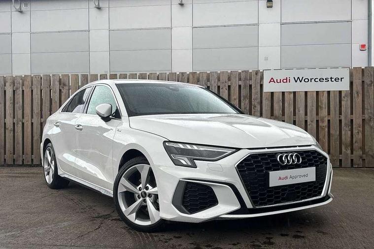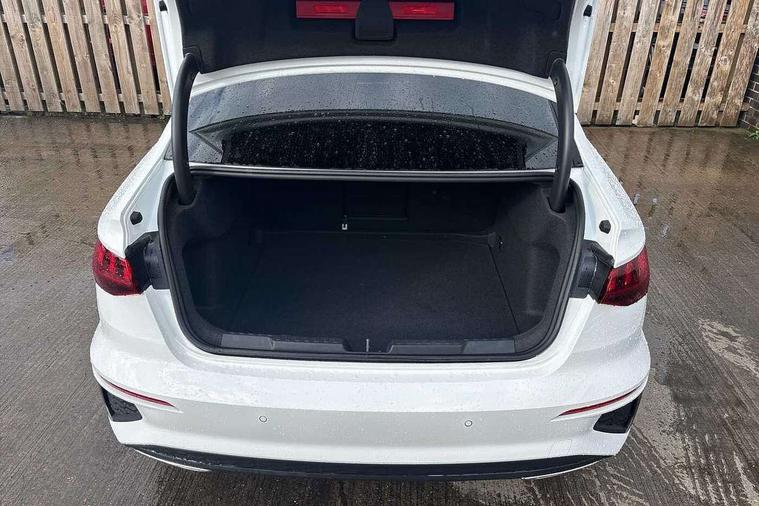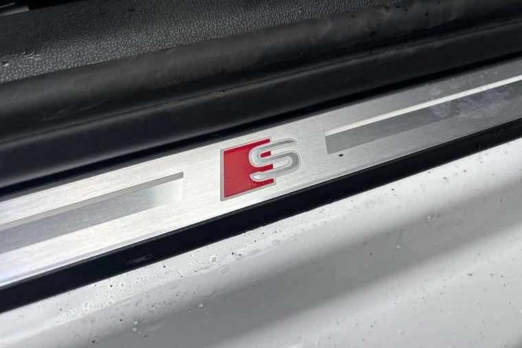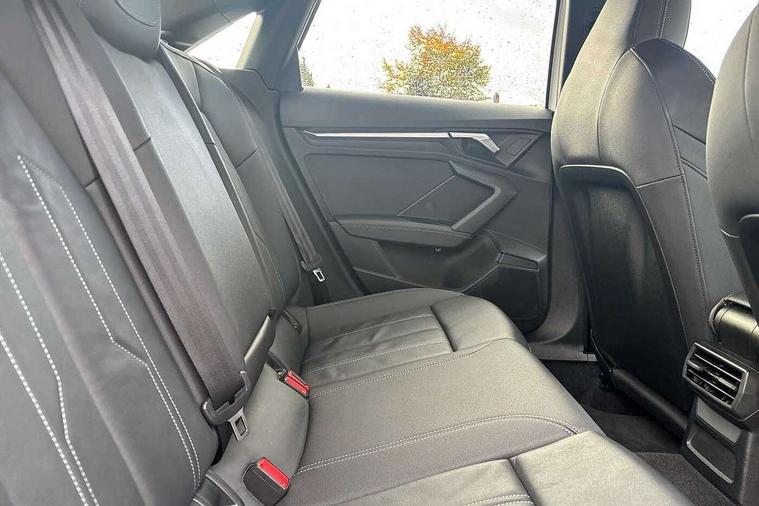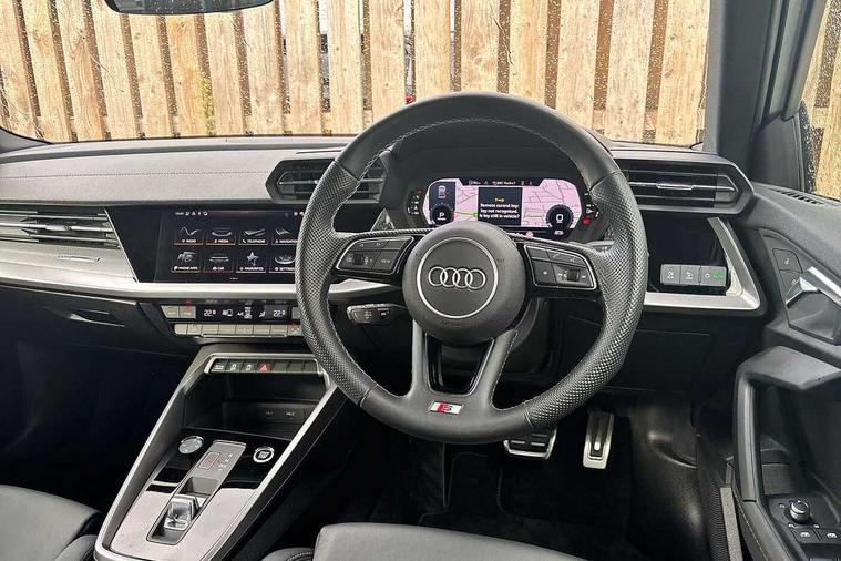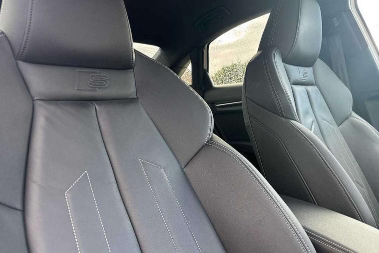 Audi drive select (Auto, Comfort, Dynamic and Individual), Audi smartphone interface, Audi Virtual Cockpit - 10.25" digital and colour instrument cluster, Automatic start/stop system with recuperation, Bluetooth interface, Camera based traffic sign recognition, Collision avoidance assistant, e-Call (emergency call), Electromechanical power speed sensitive steering, Lane departure warning system, MMI Navigation Plus with high resolution 10.1" colour touch screen display, Service indicator, Trip computer, Voice control system with natural language interaction, Sports suspension, 2xUSB-C connection with data and charging functions, 6 passive loudspeakers, CD player, DAB Digital radio, 3rd brake light, Acoustic glass windscreen, Aluminium window trim, Auto dimming frameless rear view mirror, Body colour exterior mirrors, Electrically adjustable/heated/folding/auto dimming door mirrors with integrated LED indications + kerb view function for passenger side, Front electric windows, Illuminated door sills with aluminium inserts at the front with S logo, LED daytime running lights, LED headlights with LED rear lights and dynamic rear indicators, Light and rain sensors, Model and engine designation badges at rear, Privacy glass - dark tinted rear window, rear door and side windows, Rear boot, Rear electric windows, Rear side wing doors, S line bumpers, S roof spoiler, 12V socket and storage compartment in front centre console, 3 seat bench in 2nd row, 3 spoke leather multifunction steering wheel with gear shift paddles, 4 way electrically adjustable lumbar support for driver and front passenger, 60/40 split folding rear seat bench, Black cloth headlining, Dual zone electronic climate control, Front and rear centre armrest in artificial leather, Front and rear headrests, Front/rear floor mats, Height and reach adjustable steering wheel, Interior lighting - glove compartment light and right hand side, Luggage compartment floor covering, Manual boot compartment lid, Manually adjustable front seats, Seat side bolsters, Single front passenger seat, Stainless steel pedals and front footrest in black, Twin leather upholstery with front sports seats S embossed logo, Aluminium interior elements pack - A3, LED interior lighting pack - A3 Saloon, S line styling pack - A3 Saloon, 3x3 point rear seat belts, Driver and front passenger airbag with passenger airbag deactivation, Electronic Stabilisation Control (ESC) including ABS, ASR and EDL, First aid kit with warning triangle and 2 safety vests, Front side airbags with head airbags and interaction airbag, Pre-sense front with pedestrian and cyclist detection, Seatbelt monitoring, Tyre pressure loss indicator, Anti theft alarm, Anti-theft wheel bolts, Electronically operated child locks, Immobiliser, Remote control central locking, Aluminium air vent surrounds, Dark spectrum aluminium inlays, accent surfaces in the dashboard and centre console in platinum grey silk effect paint finish,