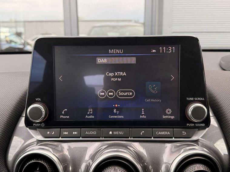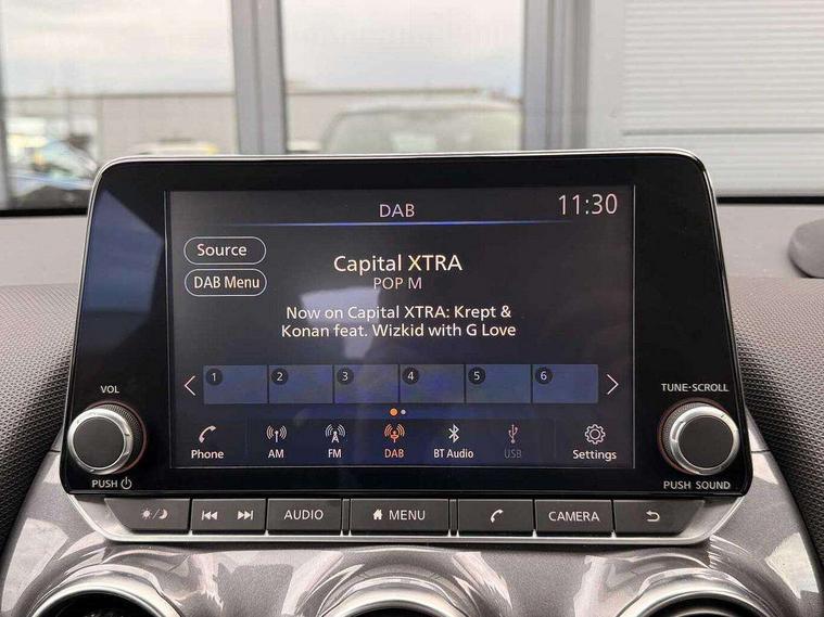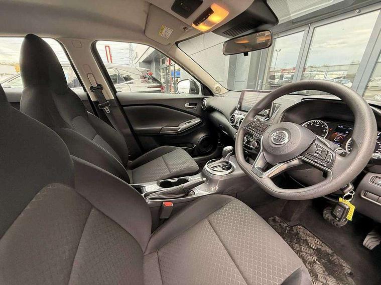 4.2" full colour TFT screen combimeter, 8" infotainment colour display with touch screen, Apple CarPlay and Google Android auto, Cruise control + speed limiter, Emergency and breakdown call, Idle start/stop system, Intelligent lane intervention, Lane departure warning system, Nissan connect services and Wifi connection, Outside temperature sensor, Power Steering, Rear view camera, Traffic sign recognition, Trip computer, Gasoline particulate filter, 4 speakers, Bluetooth system, USB, Aux-in and 12V socket, DAB Digital radio, Automatic hazard signal with emergency stop signal, Body colour bumpers, Body colour door handles, Electrically adjustable door mirrors with integrated indicators, Follow me home headlights, Front and rear electric window with one touch driver window, High beam assist, LED daytime running lights, LED headlamps, LED rear fog lamp, LED rear lamps, Manual dimming interior rear view mirror, Pearl black door mirrors, Rear wiper, Three blink turn signal, 3 height adjustable rear headrests, 60/40 split folding rear seat, Cloth upholstery, Driver and passenger sliding and reclining seats, Driver/passenger sunvisors and vanity mirrors, Front and rear cabin lights, Front door pockets with bottle holders, Front head restraints, Height adjustable driver's seat, Internal chrome door handles, Luggage space lighting, Monoform sporty seats, Multifunction steering wheel, Rear door bottle holders, Steering wheel mounted gearshift paddles, Telescopic steering wheel adjustment, Two cupholders in front centre console, Two rear isofix child seat anchorage points with top tether, Voice recognition switch on steering wheel, Welcome light and console tray ambient lighting, ABS with EBD and brake assist, Active ride control, Active Trace Control, Driver and passenger airbags, Driver and passenger side airbags, Electronic Stability Programme (ESP), Front and rear curtain airbags, Height adjustable seatbelts, Hill start assist, Intelligent emergency braking with pedestrian and cyclist recognition, Rear drum brakes, Seatbelt reminder for driver/front passenger and rear seats, Single tone horn, Three 3 point rear seatbelts, Traction control, Tyre pressure monitoring system, VDC Dynamic Vehicle Control, Alarm, Immobiliser, Remote central locking, 17" Sakura Flex wheels,
