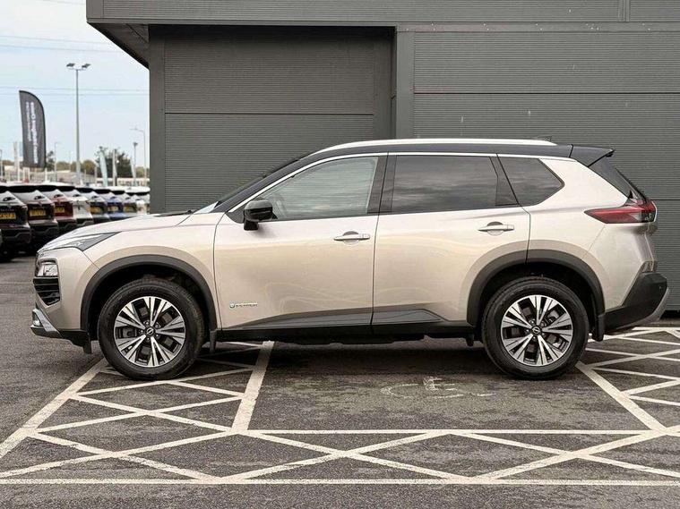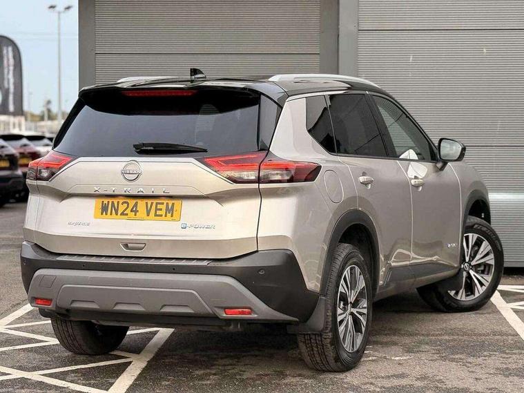 Android auto/Apple CarPlay (Wired), Blind spot warning, Drive modes (sport, normal, eco, snow, off-road), e-Pedal step, Electric speed sensitive power steering, Emergency and breakdown call, Front and rear parking sensors, Full Digital 12.3" TFT Digital Combimeter, Google maps services - search, weather, 3D maps and Google street view, Idle stop/start system, Intelligent around view monitor, Intelligent Cruise control (ICC), Intelligent driver alert system, Intelligent forward collision warning, Intelligent lane departure warning, Intelligent lane intervention, Intelligent lane keep assist, Maximum speed limiter, Moving object detection, Nissan connect 12.3 inch touchscreen infotainment system, Nissan connect nav with TomTom traffic, Push button starter, Rear cross traffic alert, Rear view camera, Remote control services - door locks, lights, horn and car locator, Telematics - notifications and connectivity services, TomTom live traffic services, Traffic sign recognition with legal speed adjustment, Trip computer, Virtual personal assistant and firmware over the air capability, Wireless apple carplay, 6 speakers, AM/FM audio system with DAB, Bluetooth audio streaming, Front USB connections (Type-A and Type-C), Rear USB charging only ports (Type-A and Type-C), 3rd brake light, Auto dimming rear view mirror, Auto rear wiper when reversing, Body colour mirror caps, Body coloured door handles, Bodyside mouldings, Chrome side window finisher, e-4ORCE badging, e-POWER badging, Electric auto folding door mirrors, Electrically adjustable and heated door mirrors, Follow me home headlights, Headlights auto levelling system, High beam assist, Intelligent auto headlights, LED daytime running lights, LED Headlights, LED rear lights, One touch front and rear electric windows with remote opening and closing, Partially body coloured bumpers, Rain sensing wipers, Rear privacy glass, Rear reversing light (bulb lighting), Rear roof spoiler, Rear side wing doors, Rear styling plate, Shark fin antenna, Splash free wipers, Super UV and infrared cut glass, Three blink turn signal, 12v power socket in dashboard and luggage, 3 bench rear seats in 2nd row, 3 rear headrests, 60/40 split folding rear seat bench, Butteryfly console, Chrome interior door handles, Cloth monoform upholstery, Driver and front passenger sunvisors with illuminated vanity mirrors, Driver seat back pocket, Dual zone automatic climate control with pollen filter, Front centre console and armrest, Front cupholders, Front door with bottle holders, Height adjustable driver's seat, Height adjustable front headrests, Height adjustable passenger seat, Leather shift knob, Leather steering wheel, Luggage board system, Luggage space lighting, Multifunction steering wheel, Passenger seat back pocket, Rear armrest with 2 cupholders, Rear door bottle holders, Single front passenger seat, Tilt/telescopic adjustable steering wheel, Two rear isofix child seat anchorage points with top tether, 3x3 point rear seatbelt pretensioners + load limiters, ABS with EBD and brake assist, Active brake limited slip, Auto hold function, Child locks on rear doors, Curtain and front side, far side airbags, Driver and passenger airbags, Driver, passenger and 2nd row rear seat belt reminder, Electronic parking brake, Front seatbelt pretensioners + load limiters, Height adjustable front seatbelts, Hill start assist, Intelligent blind spot intervention, Intelligent front emergency braking with pedestrian, cyclist recognition and junction assist, Intelligent rear automatic braking, Tyre pressure monitoring system, Vehicle dynamic control, Engine immobiliser, Intelligent Key, Remote central door locking with deadlocking, Thatcham Cat.1 alarm, 18" Diamond cut alloy wheels, Tyre puncture repair kit,