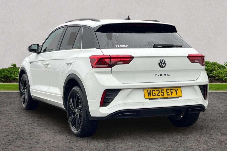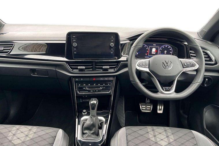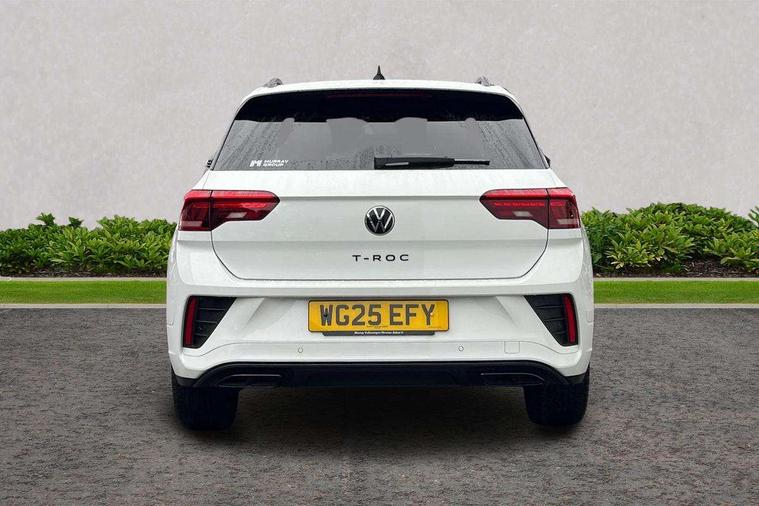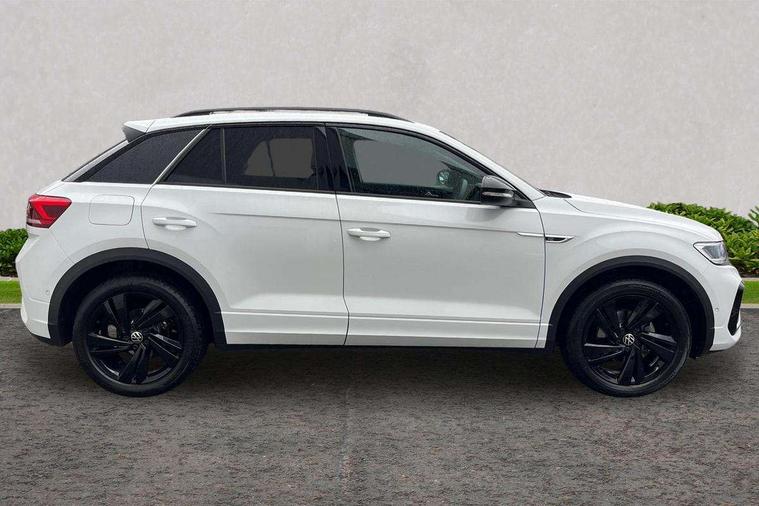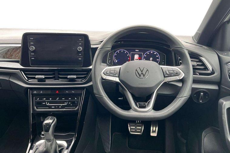 10.25" Digital cockpit pro, Advanced driver attention and drowsiness monitor, Emergency call service, Lane keeping system Lane Assist, Mobile phone interface, Modified key software - reduce switch off time for key status change to Long no motion, Online services, Park assist including front and rear parking sensors, Service interval indicator, Tailgate/trunk lid release from outside, Think blue trainer driver tips and journey analysis, Warning sound and light for front seatbelts unfastened, Wireless app connect, Battery regeneration during braking, Start/stop function with battery regeneration, DAB Digital radio, Diversity antenna for FM reception, Front and rear 6 speakers, Music playback - MP3, WMA and AAC files, Premium USB cable in choice of either Apple or Android smartphone compatibility, SD card slot, Simultaneous pairing of 2 compatible mobile devices, Title and cover art display, We Connect and We Connect Plus functionality, Auto dimming interior rear view mirror, Automatic hazard lights activation under emergency braking, Automatic headlight control with LED separate daytime running lights with coming/leaving home function, Body coloured exterior mirror housings and door handles, Electrically adjustable and heated door mirrors, Extended roof spoiler, Exterior mirrors aspherical on driver side, convex on front passenger side, External USB type C socket and charging sockets, Front windscreen wiper with intermittent wipe and 4 position delay, Heated rear window, LED 3rd brake light, LED rear combination lamps, LED rear number plate lights, Power windows with comfort operation and circuit breaker, Privacy glass for rear side windows and rear window, R-Line design body coloured bumpers, Rain sensor, Rear exhaust tailpipe, Rear fog light on one side and reversing lights on both sides, Rear side wing doors, Rear wash/wipe with intermittent wipe setting, Remote electrically foldable door mirrors, puddle lights and reverse activated passenger's door mirror, 12V power socket in centre console, 3 rear head restraints, 3 seat bench in 2nd row, 4 load lashing points in luggage compartment, Air care climatronic air conditoning system with active combination filter and 2-zone temperature control, Black roof lining, Chrome plated decorative trims, Chrome plated radiator grille inserts, air vent surrounds and light switch surrounds, Door and side trim panel with leatherette insert, Front + rear carpet mats, Front centre armrest, Front cupholders x 2, Front footwell illumination, Front reading light, Front scuff plates with R Line logo, Front seat back storage pockets, Glove compartment door with light, Instrument lighting, white adjustable panel illumination, Interior ambient lighting and surround lighting, Interior light delay, Isofix child seat preparation, Leather gearshift handle, Load-through provision with cup holder when folded down ('Unsplit rear seat bench, split folding backrest, with centre armrest), Luggage compartment lighting, Single front passenger seat, Stainless steel pedals, Storage compartment in left and right luggage area, Storage compartment in rear doors, Storage compartments in driver and front passenger doors, Sunvisors with illuminated vanity mirrors, Variable boot floor, height adjustable and removable, Driver assistance pack without proactive passenger protection - T-Roc, 3 point height adj front seatbelts + pretensioners, 3 point seatbelts in outer rear with ECE label, ABS, Child locks on rear doors, City emergency braking and pedestrian monitoring, Driver and front passenger airbag with front passenger airbag deactivation, Driver and front passenger safety-optimised head restraints, Drivers seatbelt reminder, Electronic parking brake, Electronic Stability Control (ESC) inc EDL (Electronic Differential Lock) and ASR (Traction Control), Front and rear passengers curtain airbag system including front side airbags, Hill start assist, Predictive pedestrian protection, Rear disc brakes, Two tone horn, Tyre pressure loss indicator, Volkswagen roadside assistance, Piano black decorative inserts in dashboard and front door trim panels, Trims for alloy wheels,