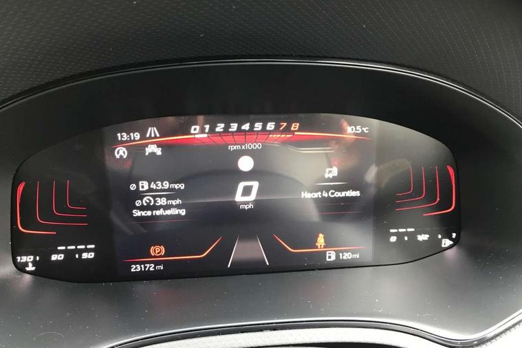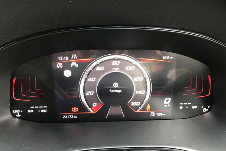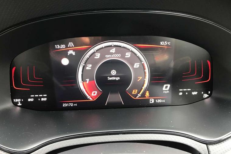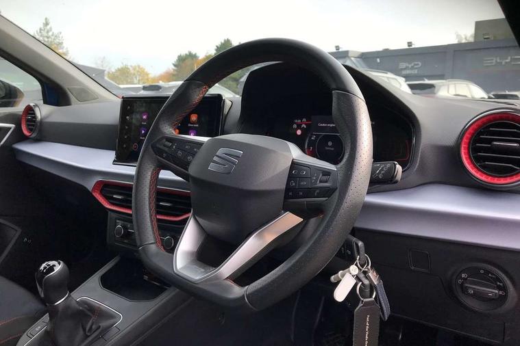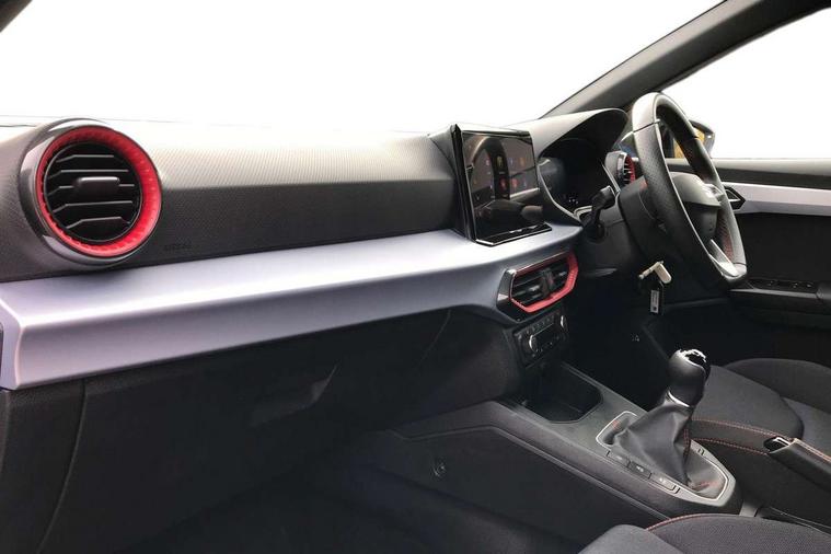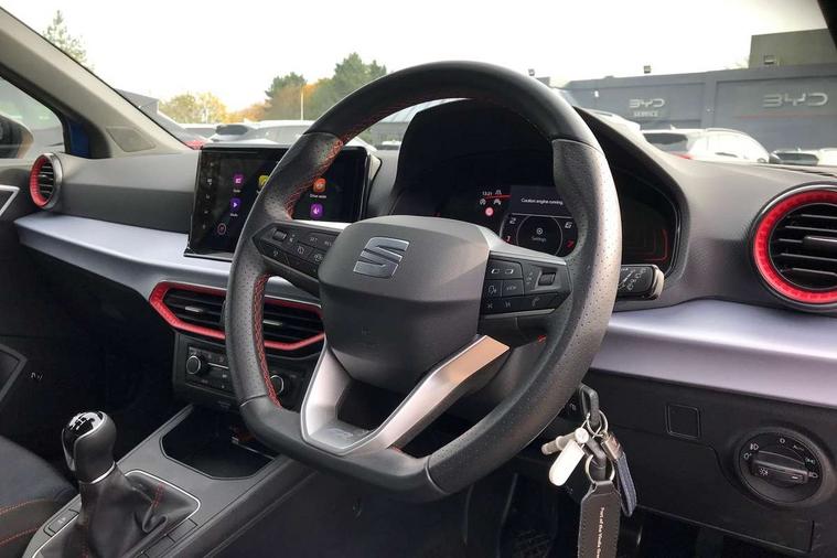 'Lights On' Reminder warning buzzer, 8" Digital cockpit, 9.2" touchscreen navigation system with type C USB socket, Voice control and DAB/AM/FM radio, Auto start and stop system, Bluetooth audio streaming with handsfree system, Digital clock, E-call, Full link smartphone integration with mirror link, wireless apple carplay, Google android auto + USB Type C cable for apple and android devices, Lane assist, Low fuel warning light, Outside temperature gauge, Power Steering, Seat connect with safety, service, remote and online, SEAT drive profiles and ECO function, SEAT logo boot release, Speed limiter, Trip computer, Sports suspension, Auxiliary input socket, Radio/MP3 player, SD card slot, Steering wheel mounted controls, Anti theft roof antenna, Auto dimming rear view mirror, Automatic rain sensing wipers, Black door mirrors, Body colour bumpers, Body colour door handles, Brilliant black window surrounds, Dark tinted rear windows, Electric adjustable/heated/folding door mirrors, Electric front windows, Electric headlight adjustment, Electric rear windows, Front/rear fog lights, FULL LED automatic headlights with dynamic headlight range control, coming and leaving home, LED daytime running lights, LED tail lights, Rear roof spoiler with FR twin exhausts, Rear side wing doors, Rear wiper, Third brake light, 3 seat bench in 2nd row, 60/40 split folding rear seat, Ambient interior lighting, Chrome detailing and black headlining, Cloth upholstery, Dual zone climate control with combination filter, Front courtesy lights, Front cupholders x 2, Front reading lights, Gear shift indicator, Glovebox, Height adjustable front and rear headrests (five), Height adjustable front seats, Height/reach adjust steering wheel, Illuminated air vent surrounds, Illuminated boot, Instrument lighting with brightness control, Isofix, Leather multifunction flat bottomed sports steering wheel, Passenger sunvisor, Single front passenger seat, Sports seats, Sunvisors with mirror and driver side card holder, 3 point seatbelts on all 3 rear seats, ABS, Active front headrests, Child locks on rear doors, Electronic stability control, Energy recovery system, Front assist forward collision warning and autonomous emergency braking, Front driver and passenger side airbags with curtain airbag and front passenger airbag deactivation, Hill hold control, Multi-Collision braking, Seat belt reminder for front and rear seats, Tiredness recognition system, Tyre pressure monitoring system, Electronic engine immobiliser, Locking wheel bolts, Perimeter alarm and interior monitoring with backup horn and tow away protection, Remote central locking + deadlocks, 17" Alloy wheels in Brilliant silver,